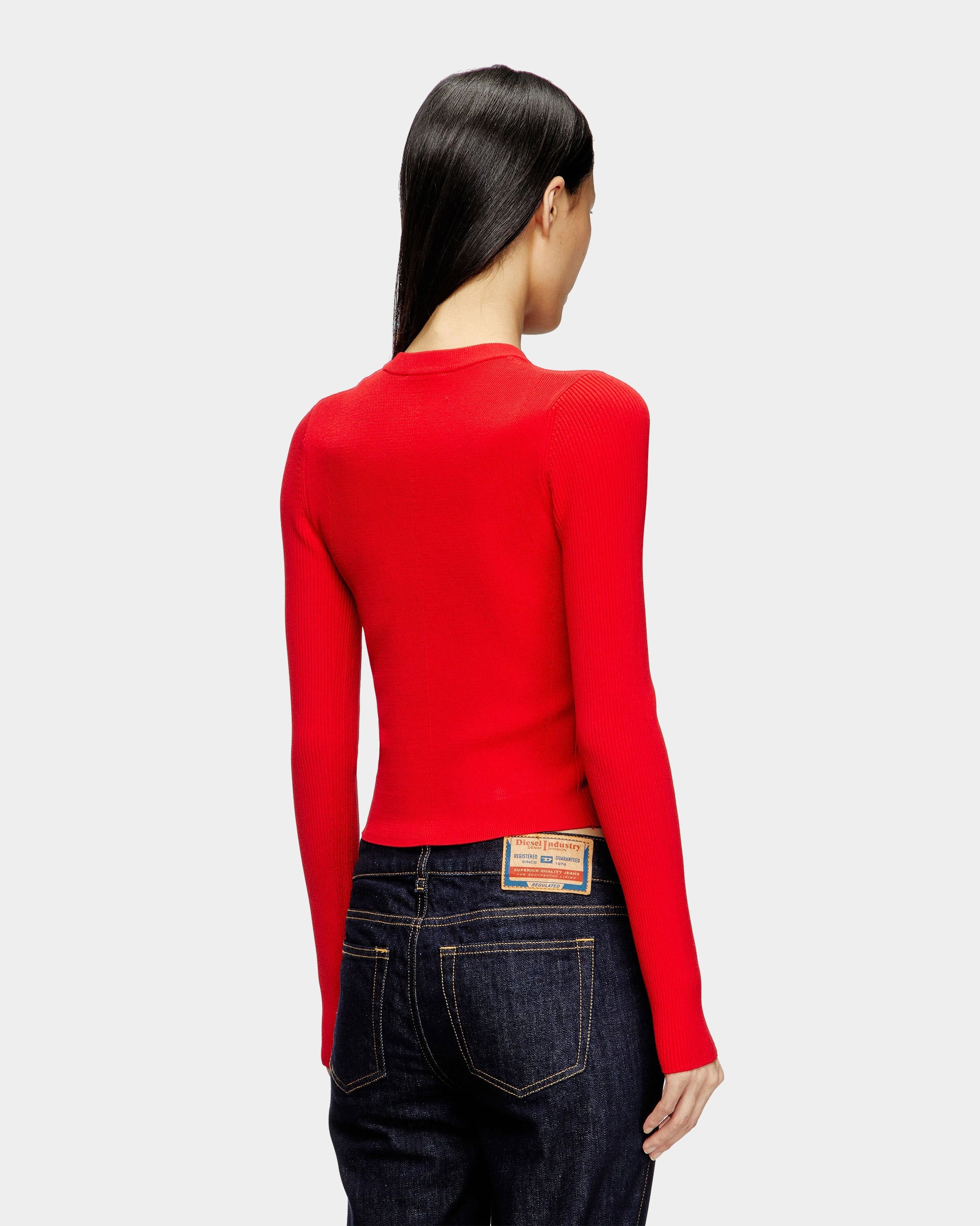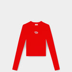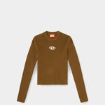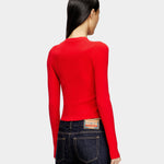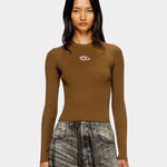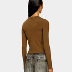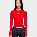 採用柔軟的羅紋針織面料,提供舒適的穿著感受。設計上採用修身剪裁,圓領與長袖設計,展現簡約而不失細節的風格。胸前的金屬圓形「D」字母標誌,嵌入於胸前的切割處,為整體造型增添一抹亮點。