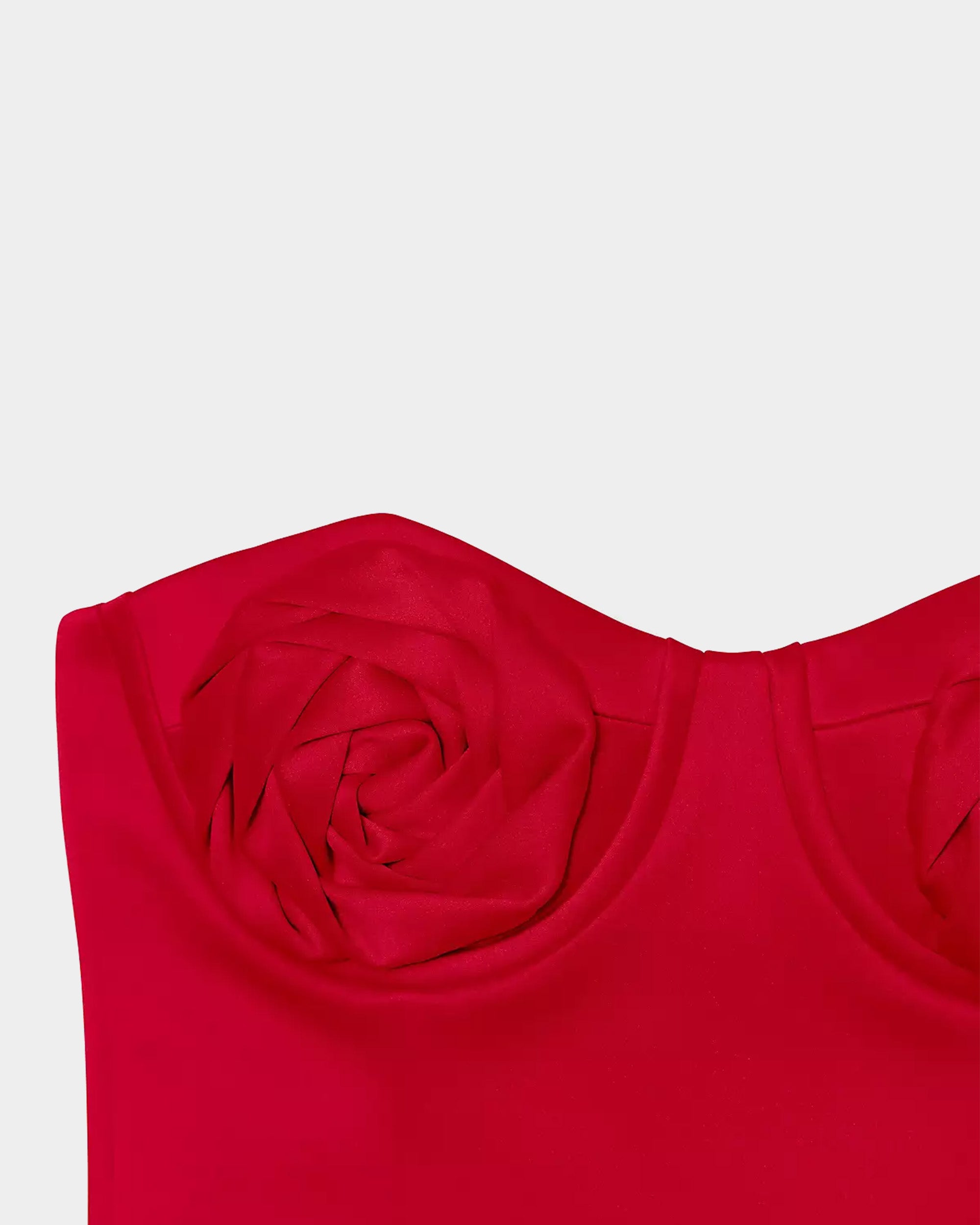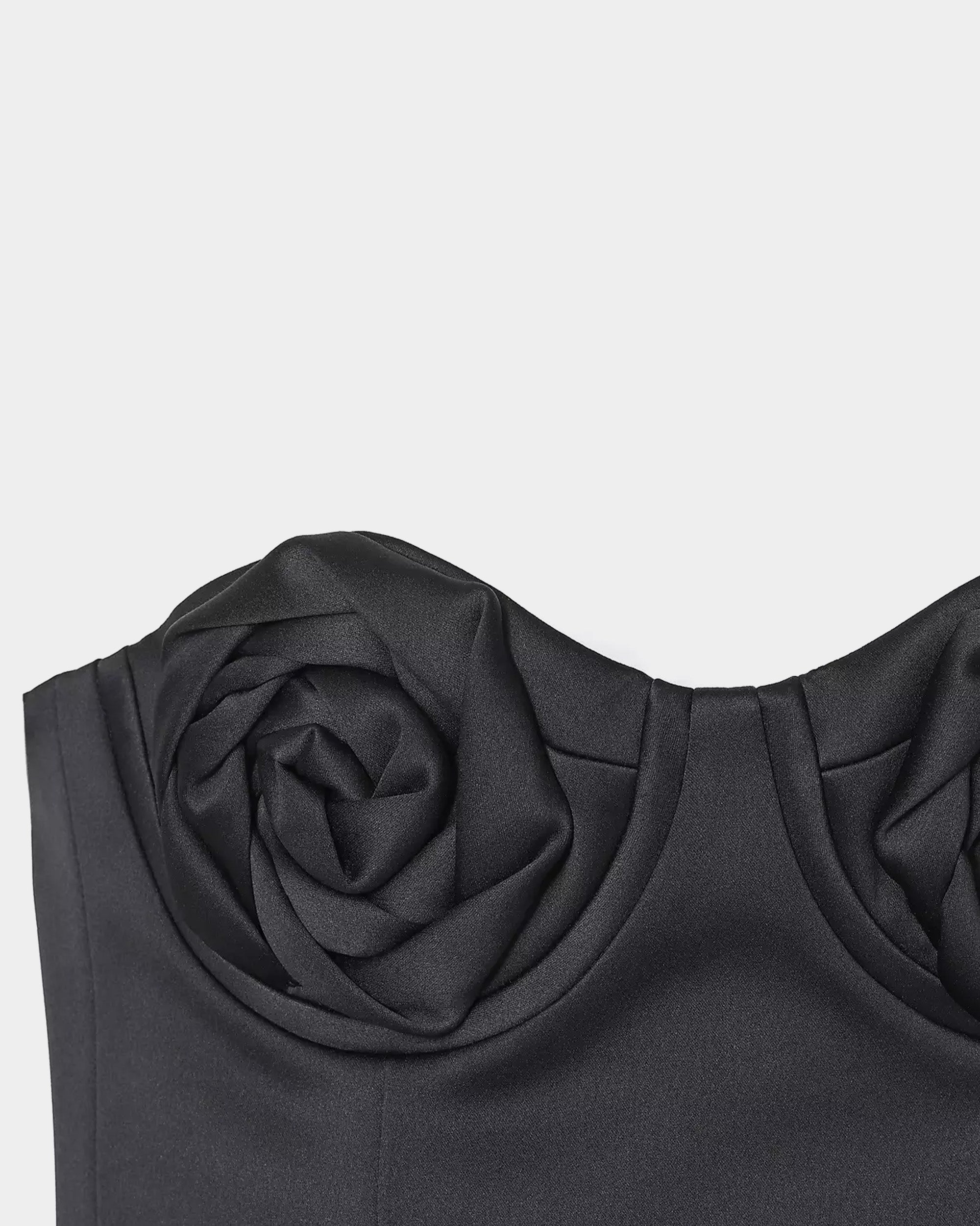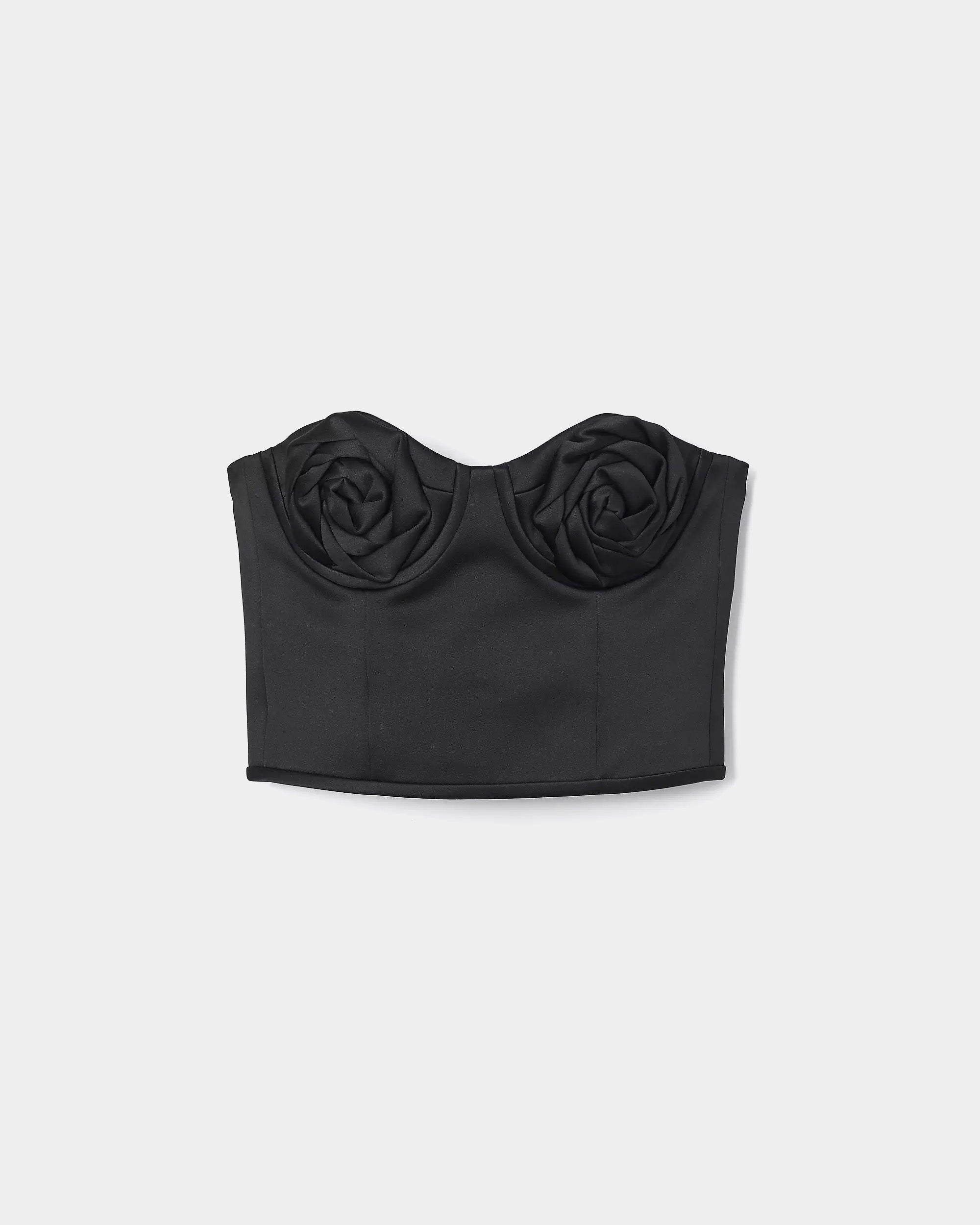以玫瑰裝飾細節設計,散發浪漫與女性化氣息。修身剪裁勾勒身形曲線,適合搭配裙裝或褲裝。