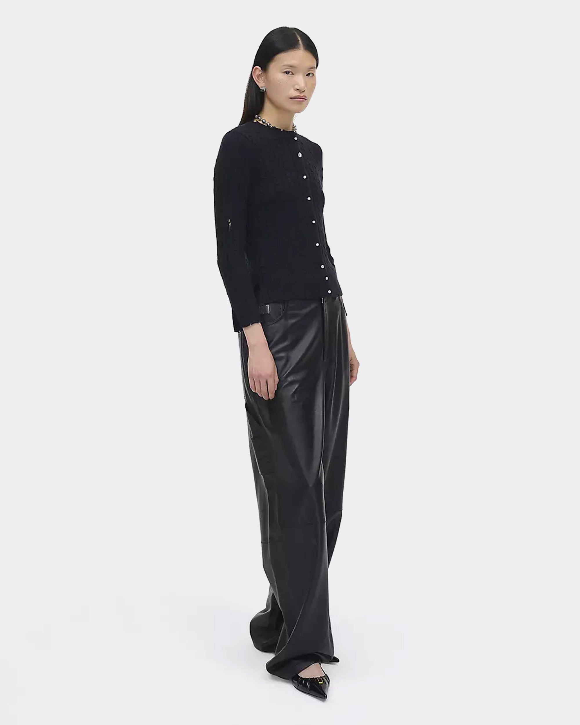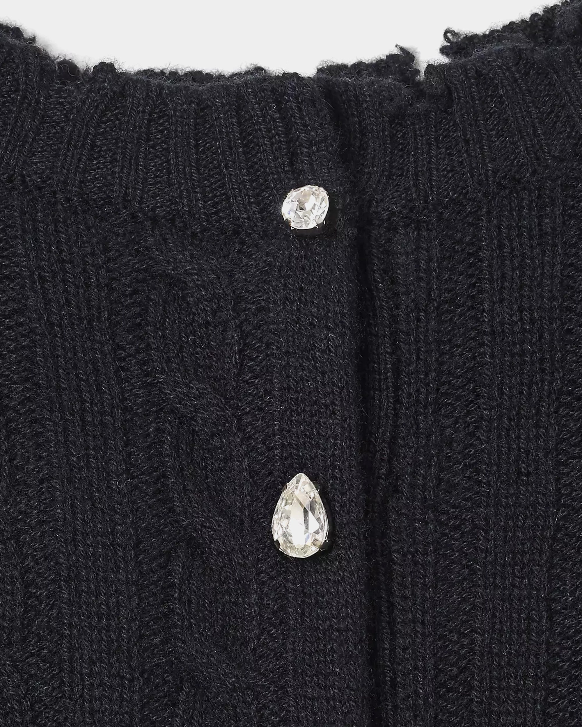 以柔軟羊絨製成,這款縮短版開襟衫搭配經典麻花織紋,展現舒適與優雅並存的氣質。修身剪裁凸顯現代感,適合疊穿造型。