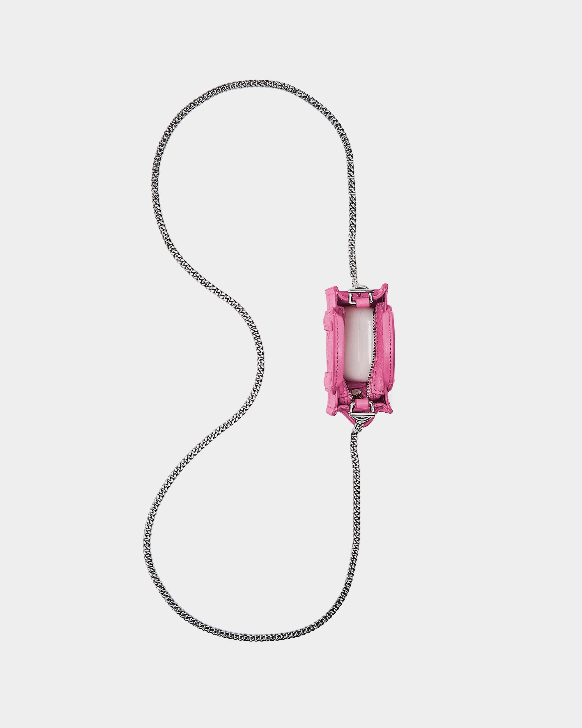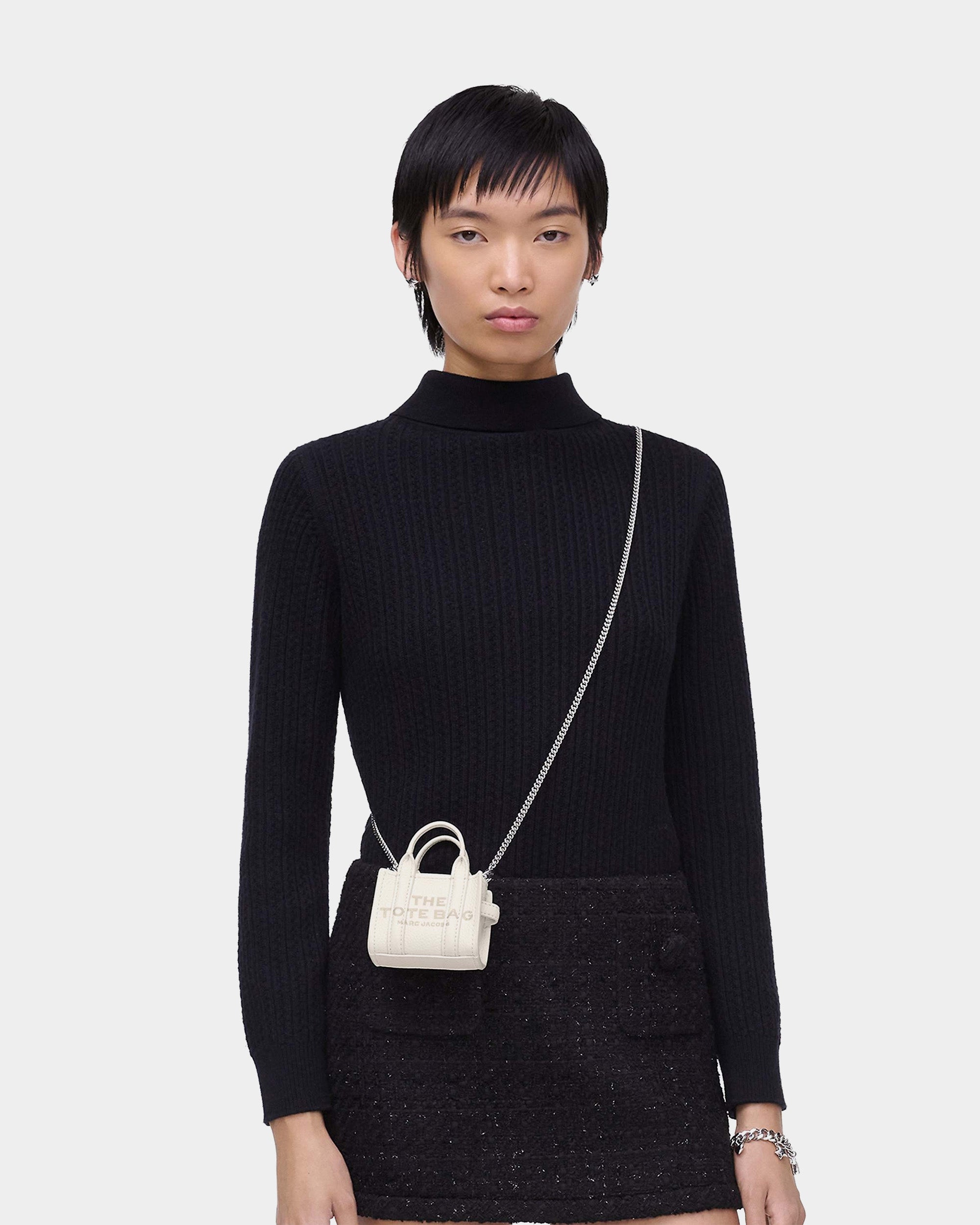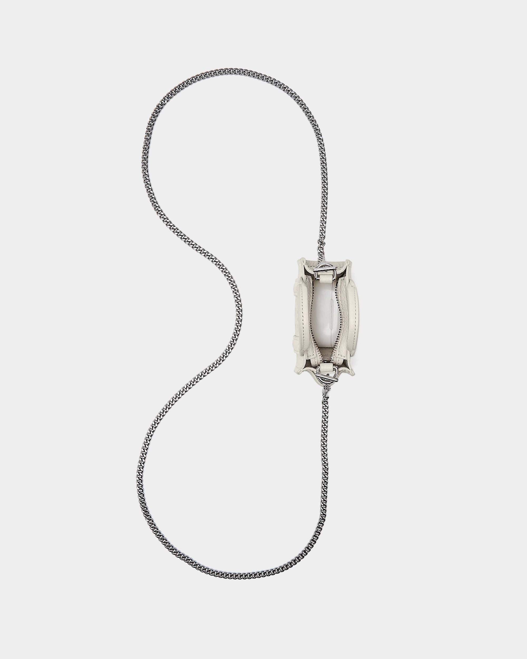 此款採用頂級全粒面牛皮製作,具拉鍊頂部開合與可拆鏈條肩背帶設計,重新詮釋經典托特包輪廓但以迷你尺寸呈現,適合收納卡片、耳機、小鑰匙等日常必備。