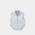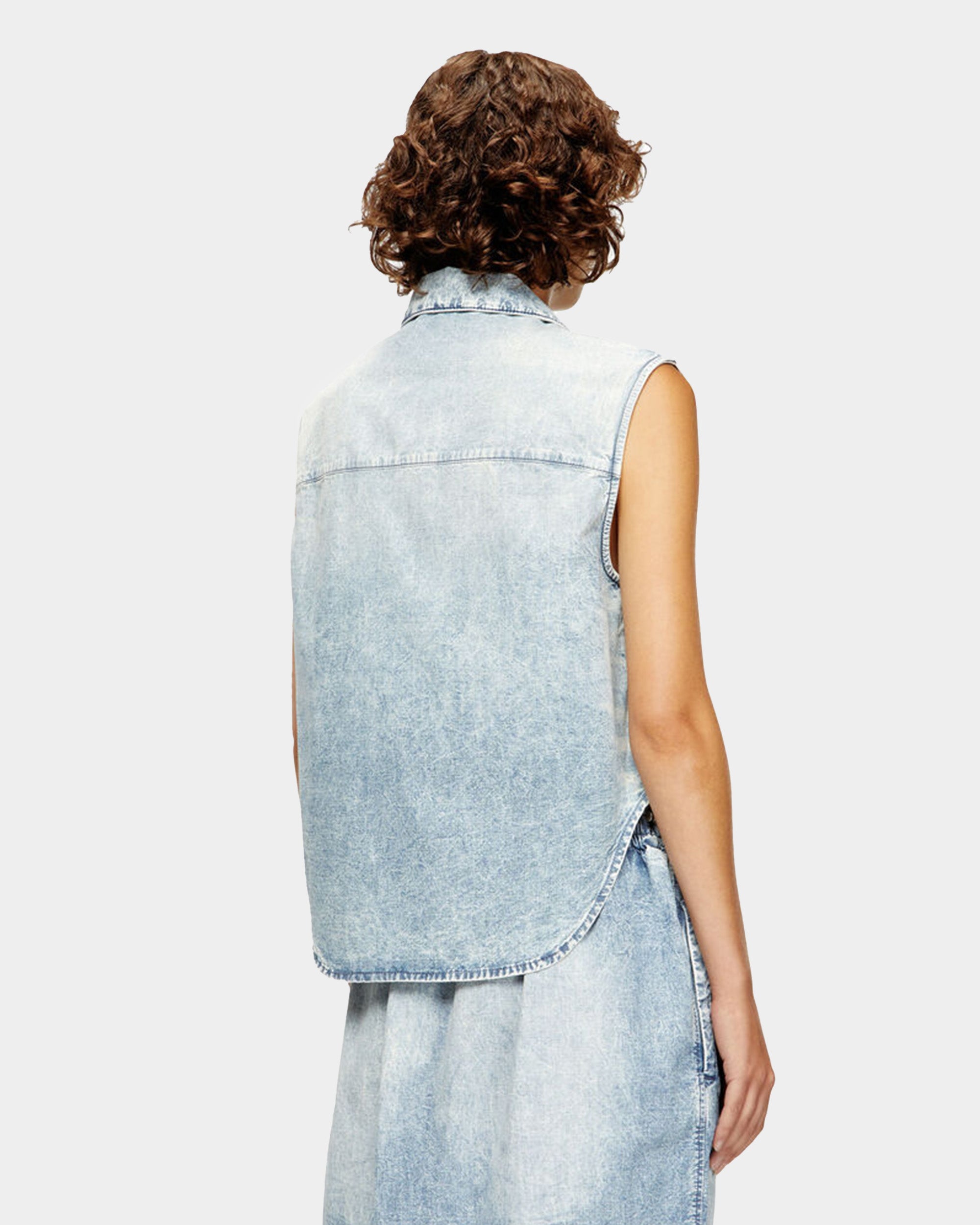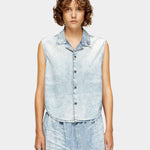 此款襯衫採用 100% 有機棉質牛仔布,經特殊雷射技術處理,呈現精緻的磨損效果。設計上融合復古網球風格,配有隱藏式鈕扣、圓角下擺和背部車縫線,展現俐落線條。輕盈的材質搭配石洗處理,營造出獨特的 80 年代風格大理石紋理。