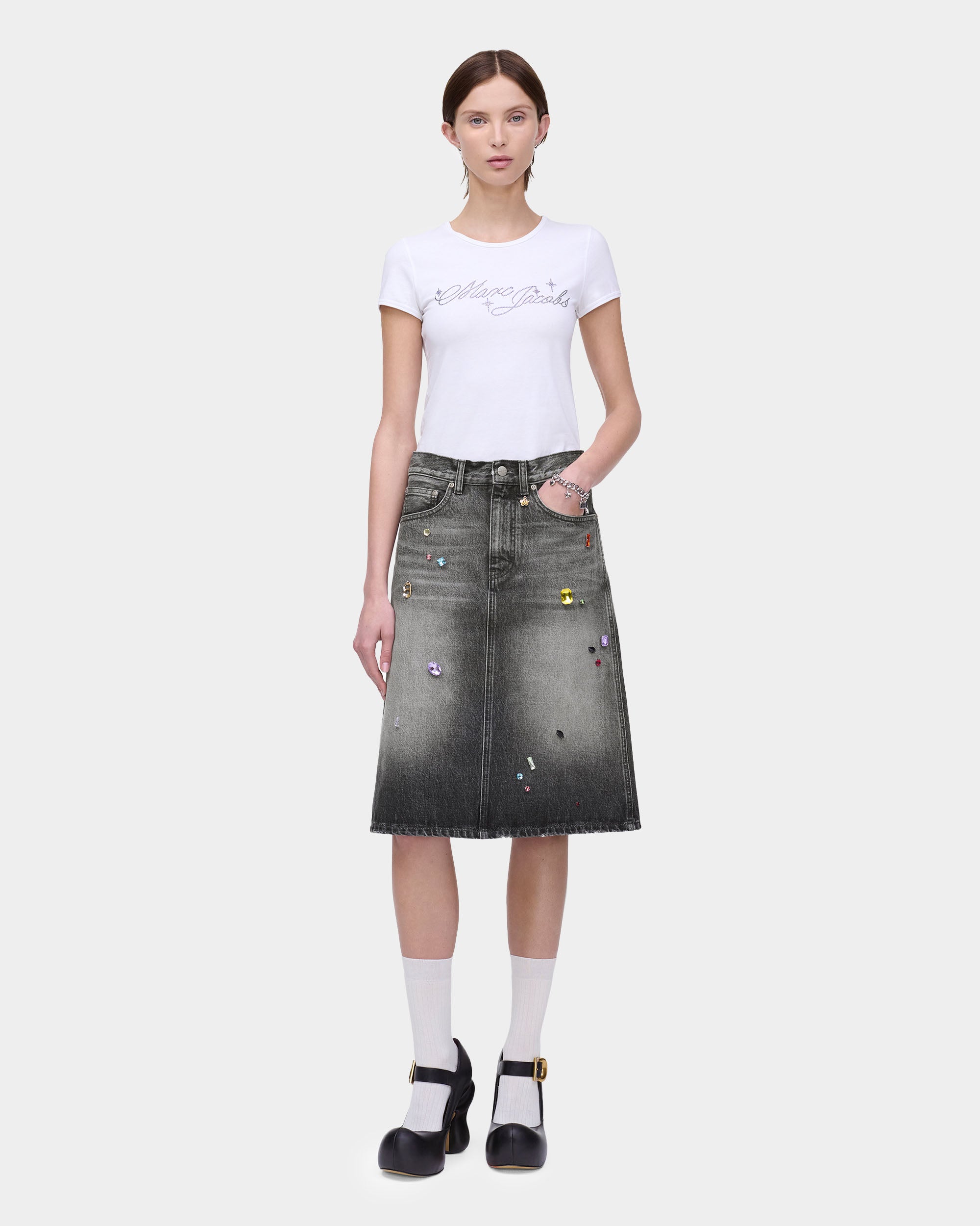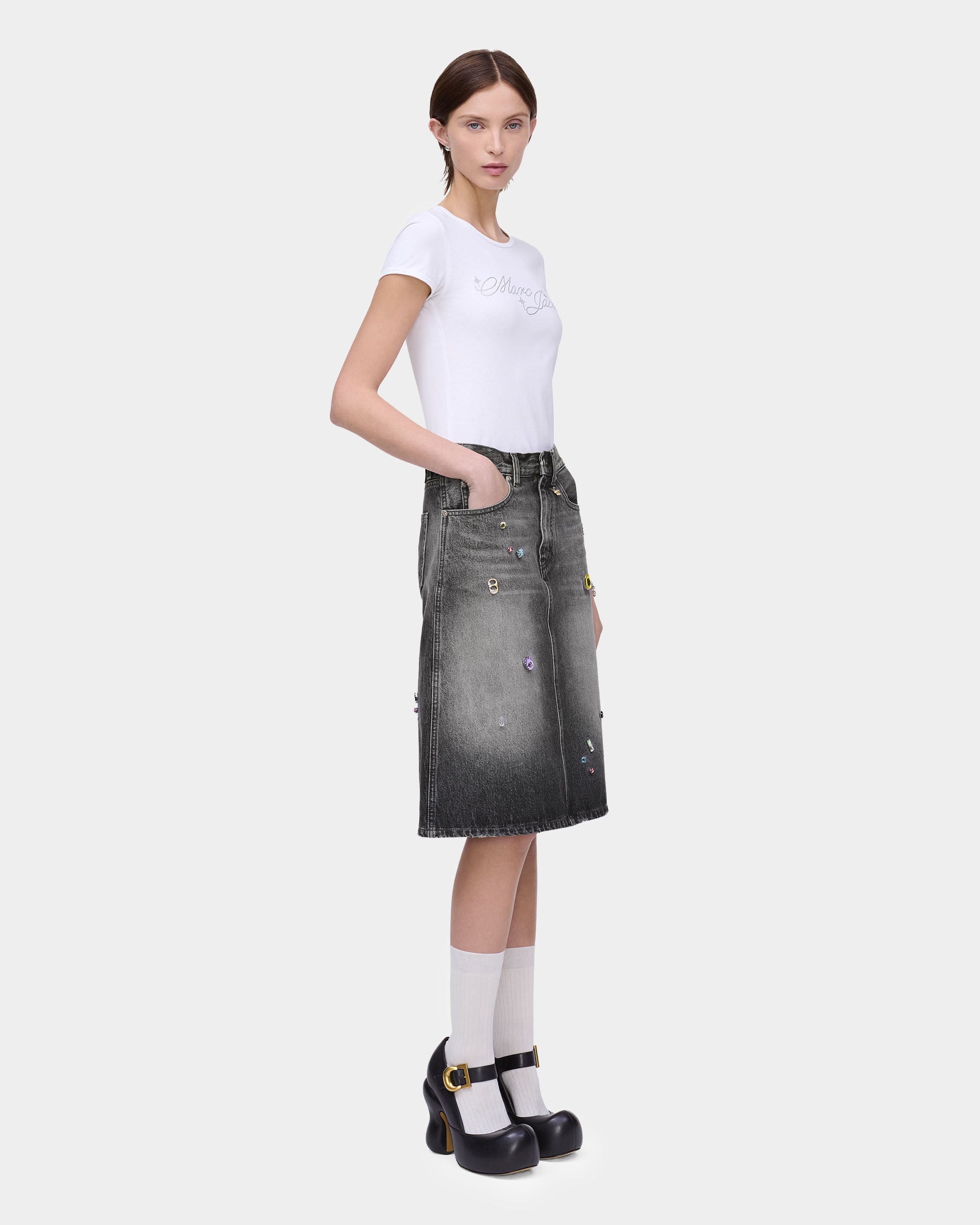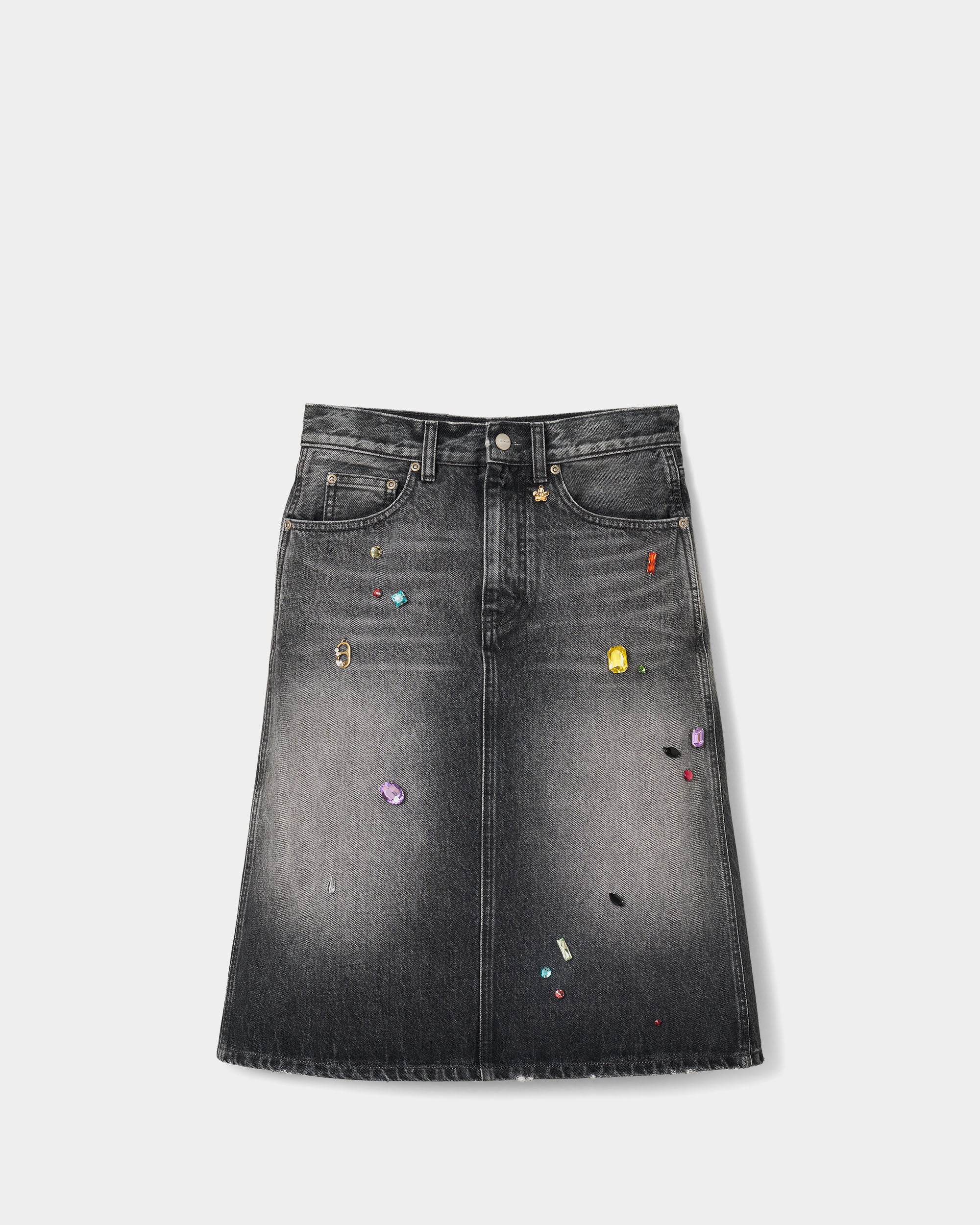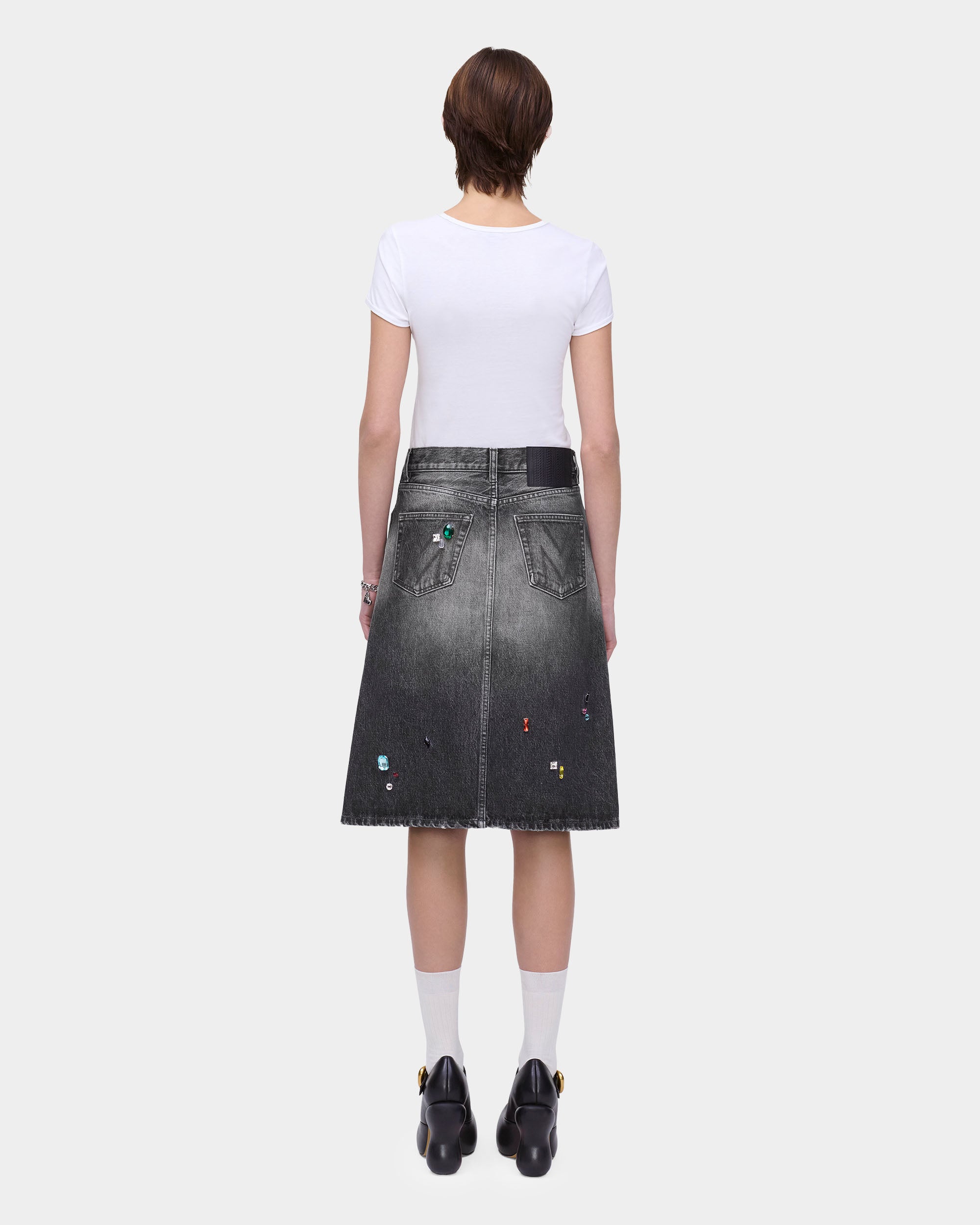 簡約 A 字裙搭配吊飾裝飾,甜美中帶點酷感,讓穿搭更有亮點。