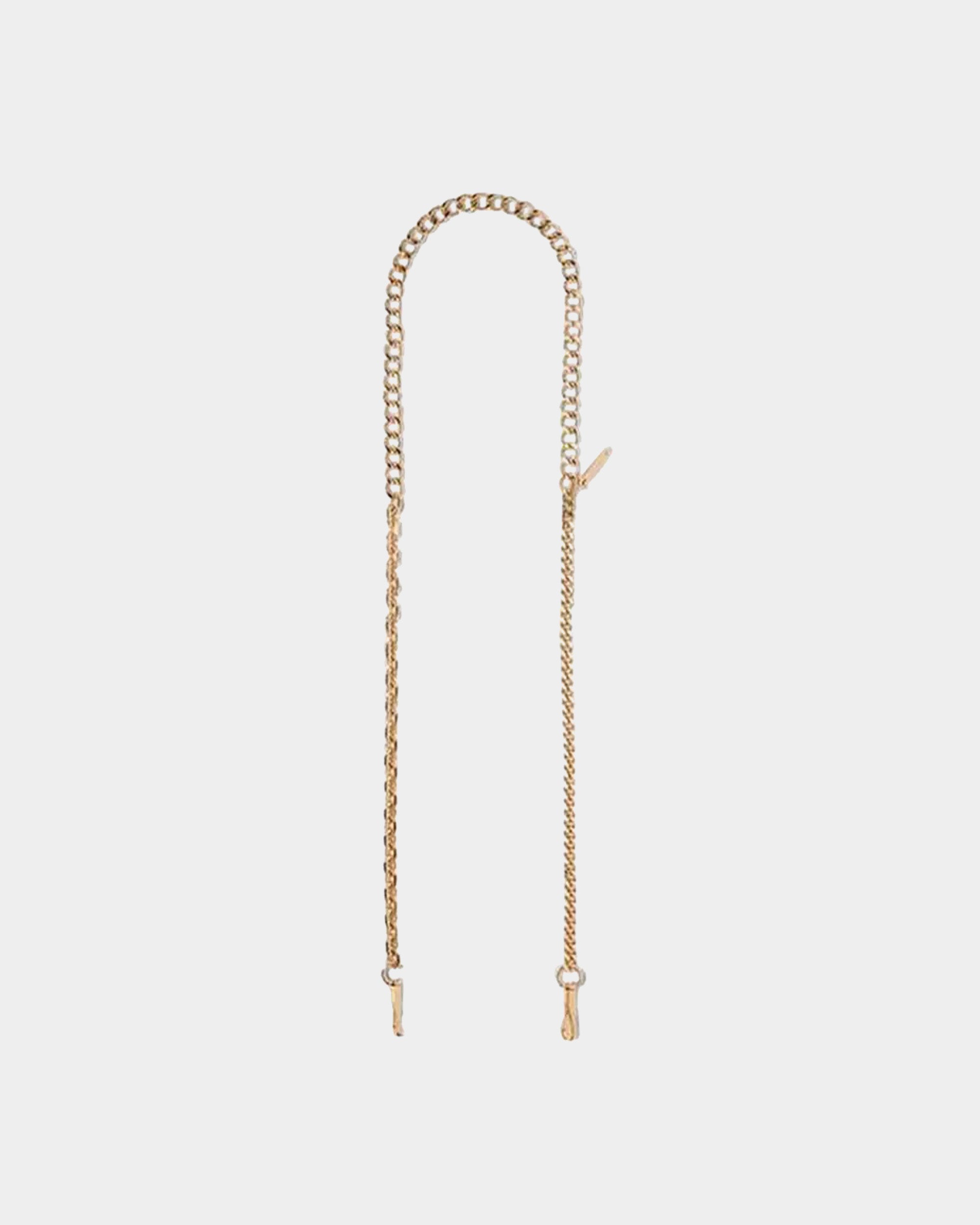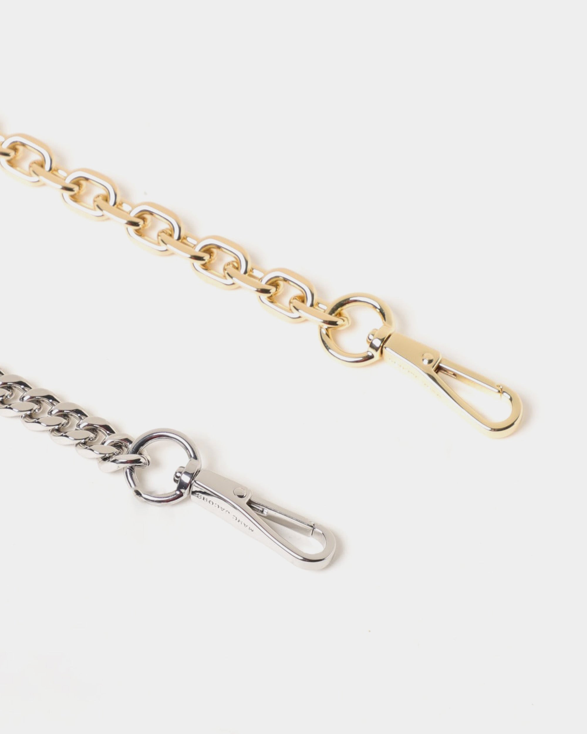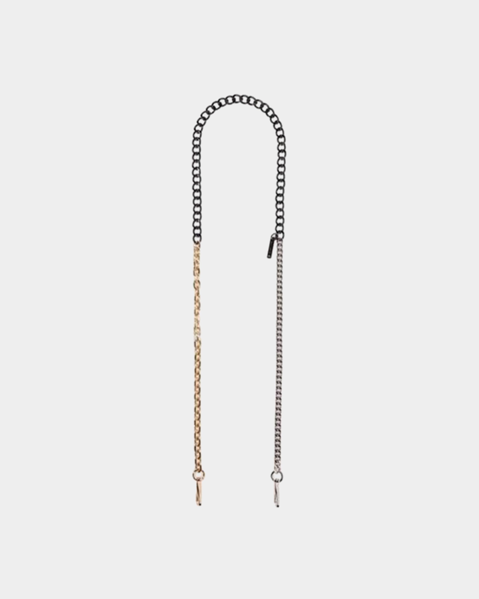 這款肩背帶採用鐵與鋅金屬材質打造,配備雙金色鉤扣設計,可替換搭配多款包款,為日常配件帶來金屬光澤與造型變化。