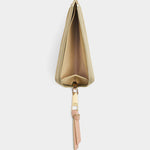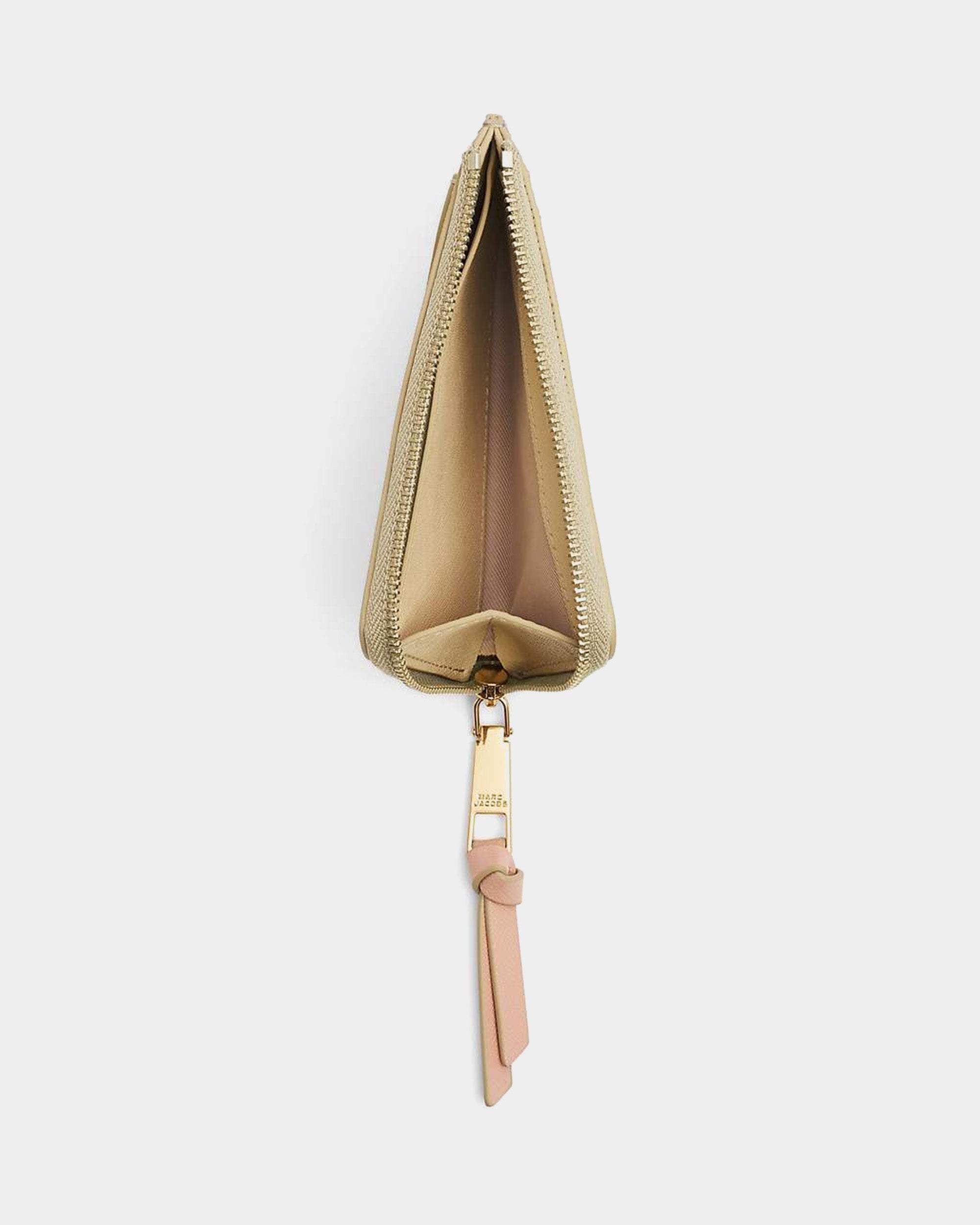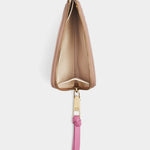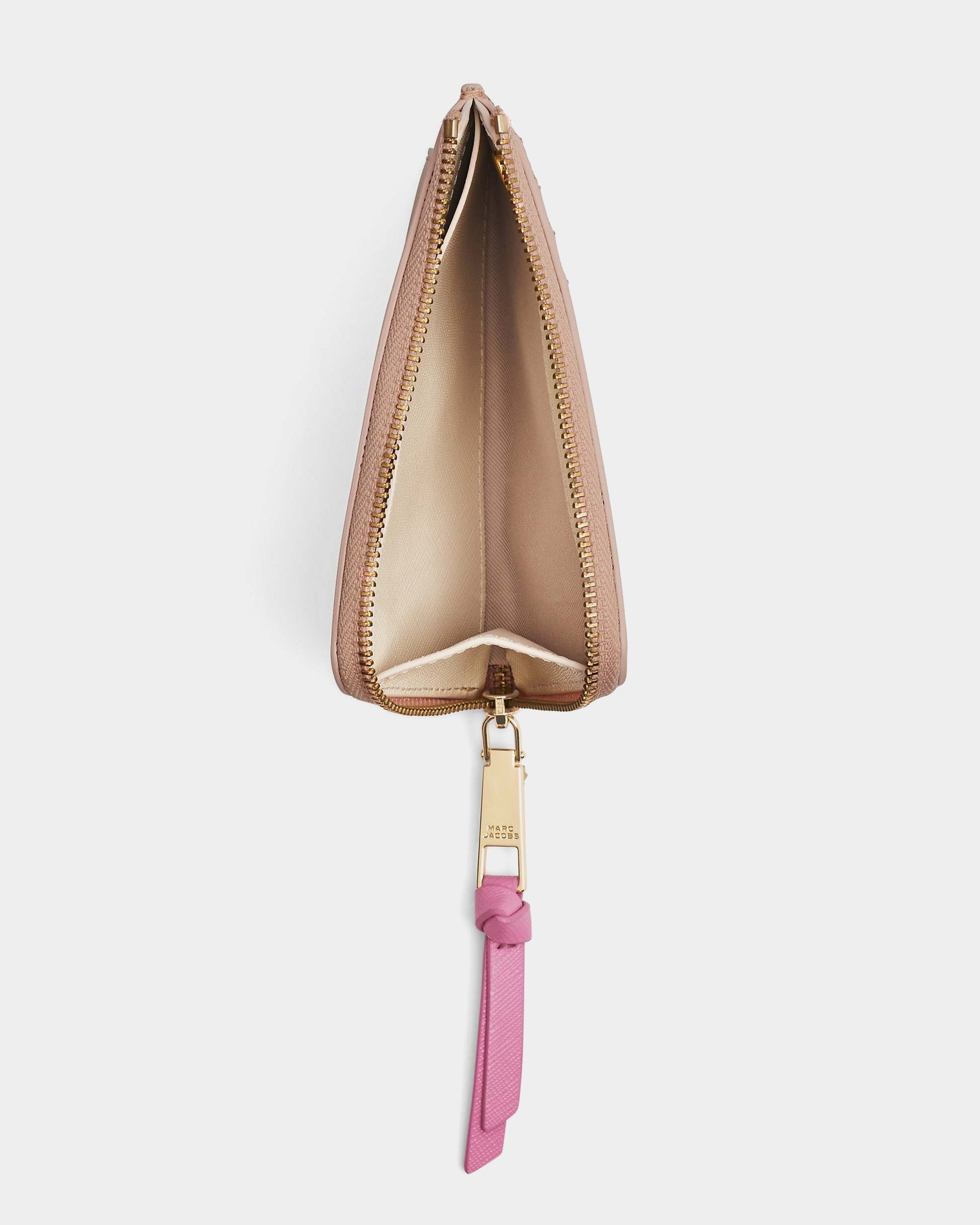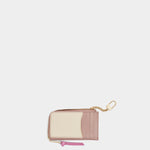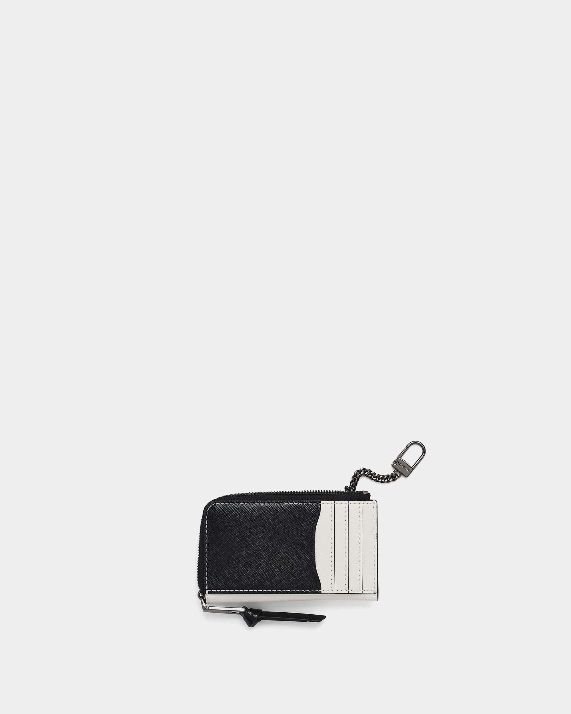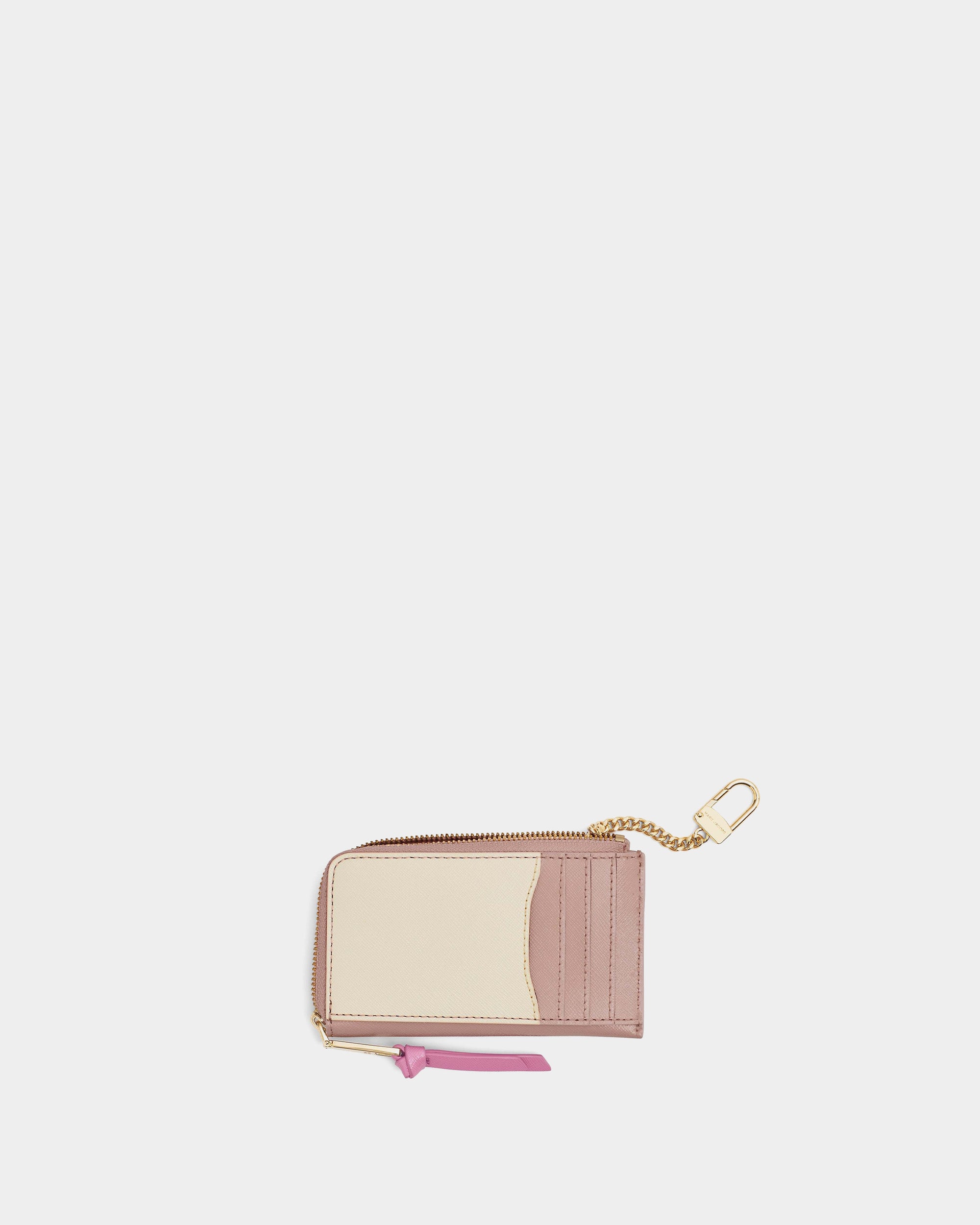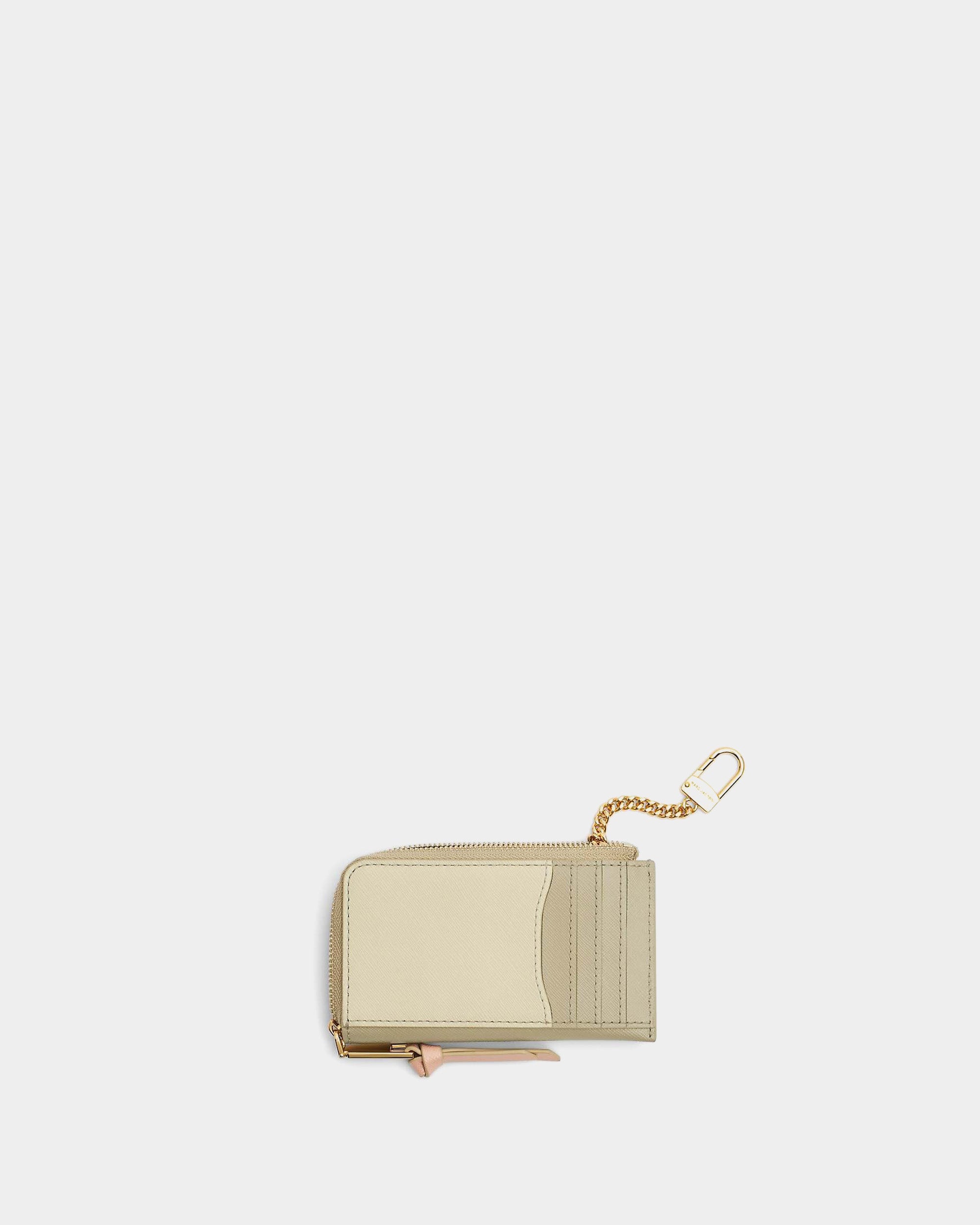 採用耐刮 Saffiano 十字紋皮革製成,設有頂部拉鍊開合與前方滑袋,內含 4 格卡槽、2 個內滑袋及可拆式扣鏈環,兼具時尚與功能。