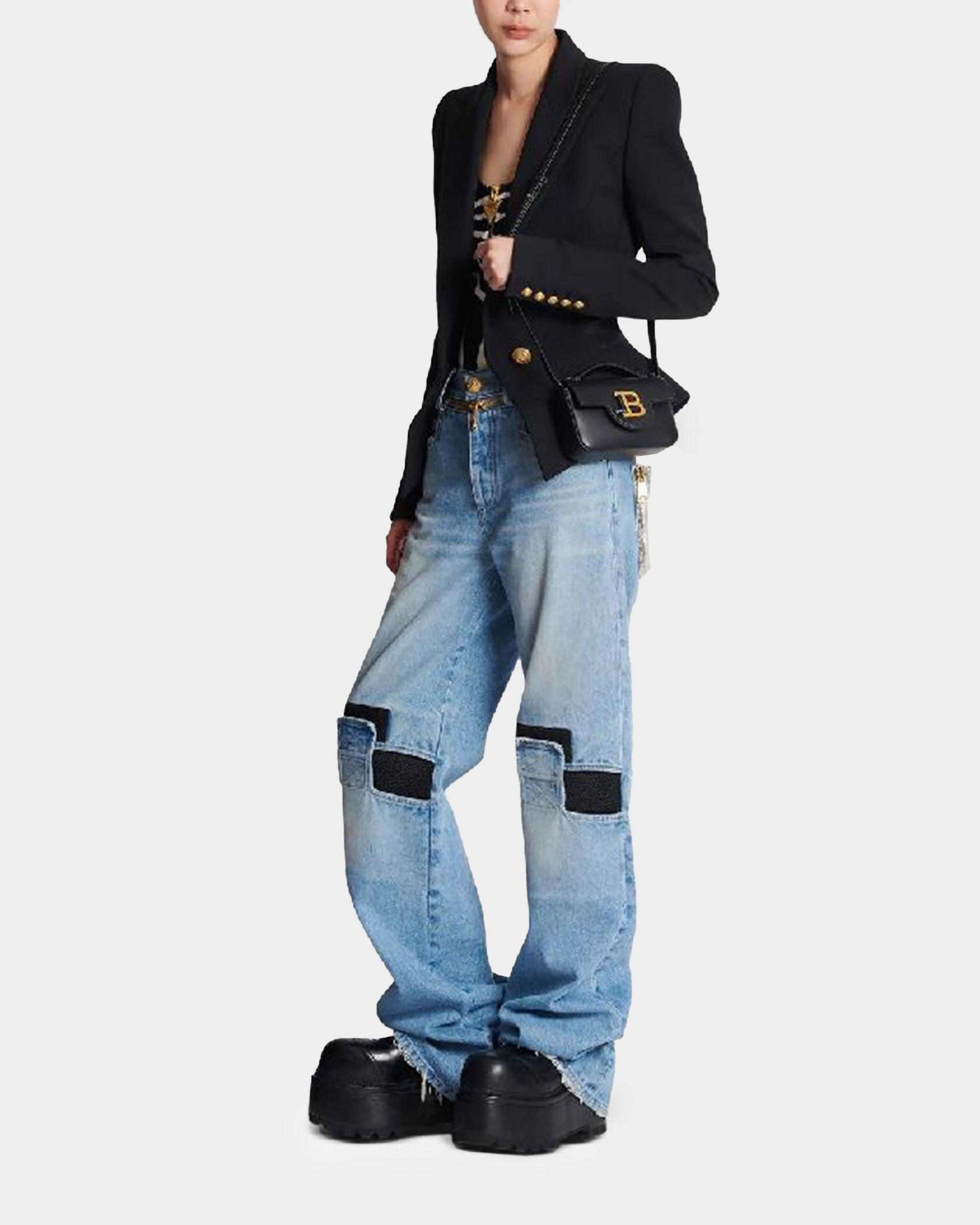 以俐落方正線條結合金色 B 字母扣環,B-BUZZ 迷你包展現 Balmain 標誌性的摩登氣場。