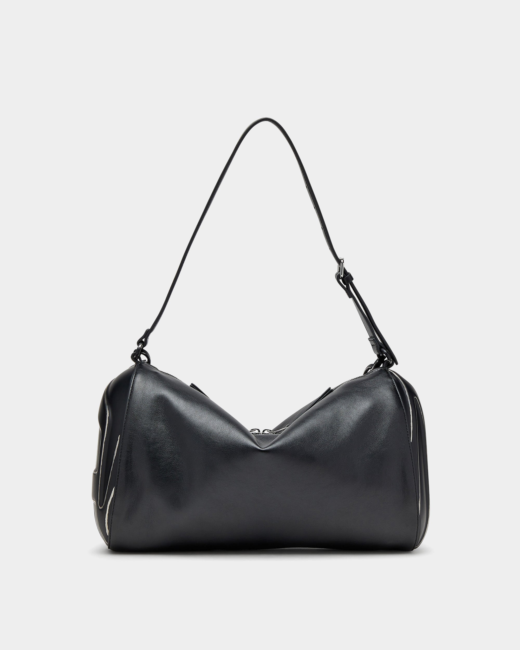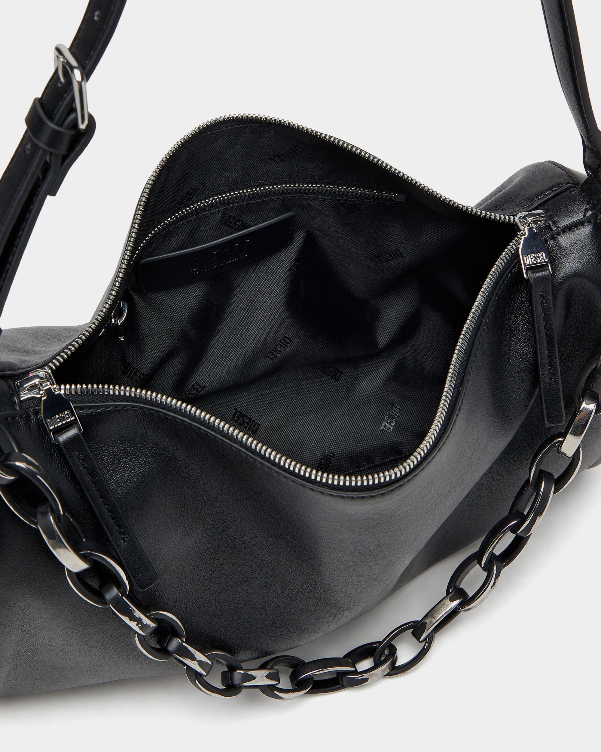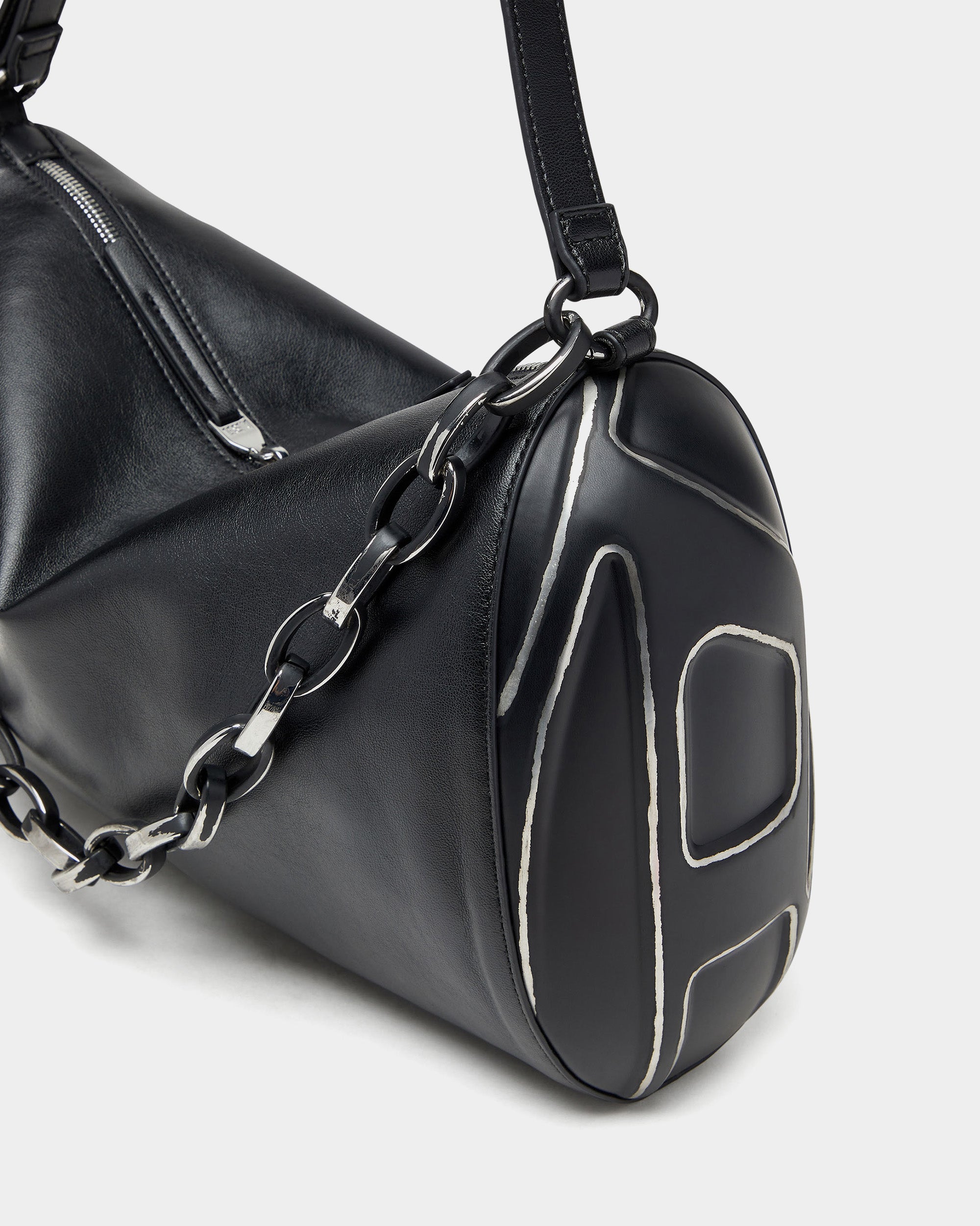 於 2025 秋冬時裝秀中首次亮相,這款肩背包是一款多功能的中性配件。包款以亮面再生聚氨酯材質製成,呈現微微柔軟的長方形輪廓,兩側 Oval D 面板經刷色處理,帶有做舊質感,隱約透出的金屬銀色細節突顯標誌性 logo。可搭配厚實金屬鏈條背帶,切換不同造型風格。