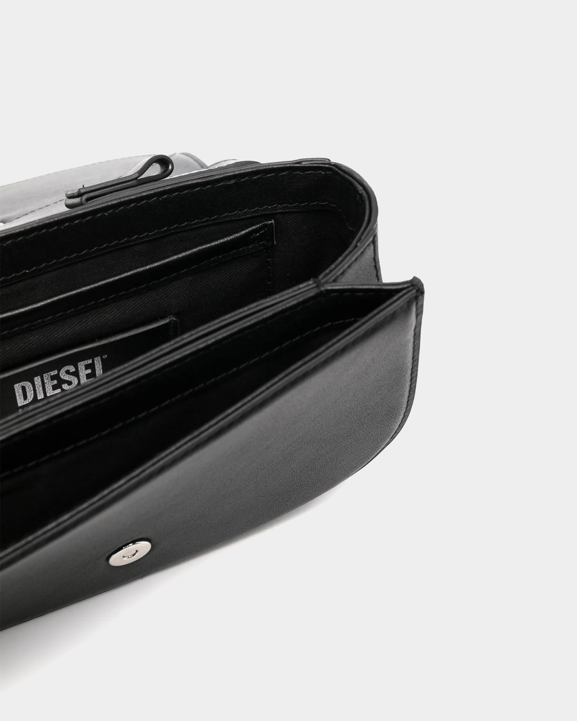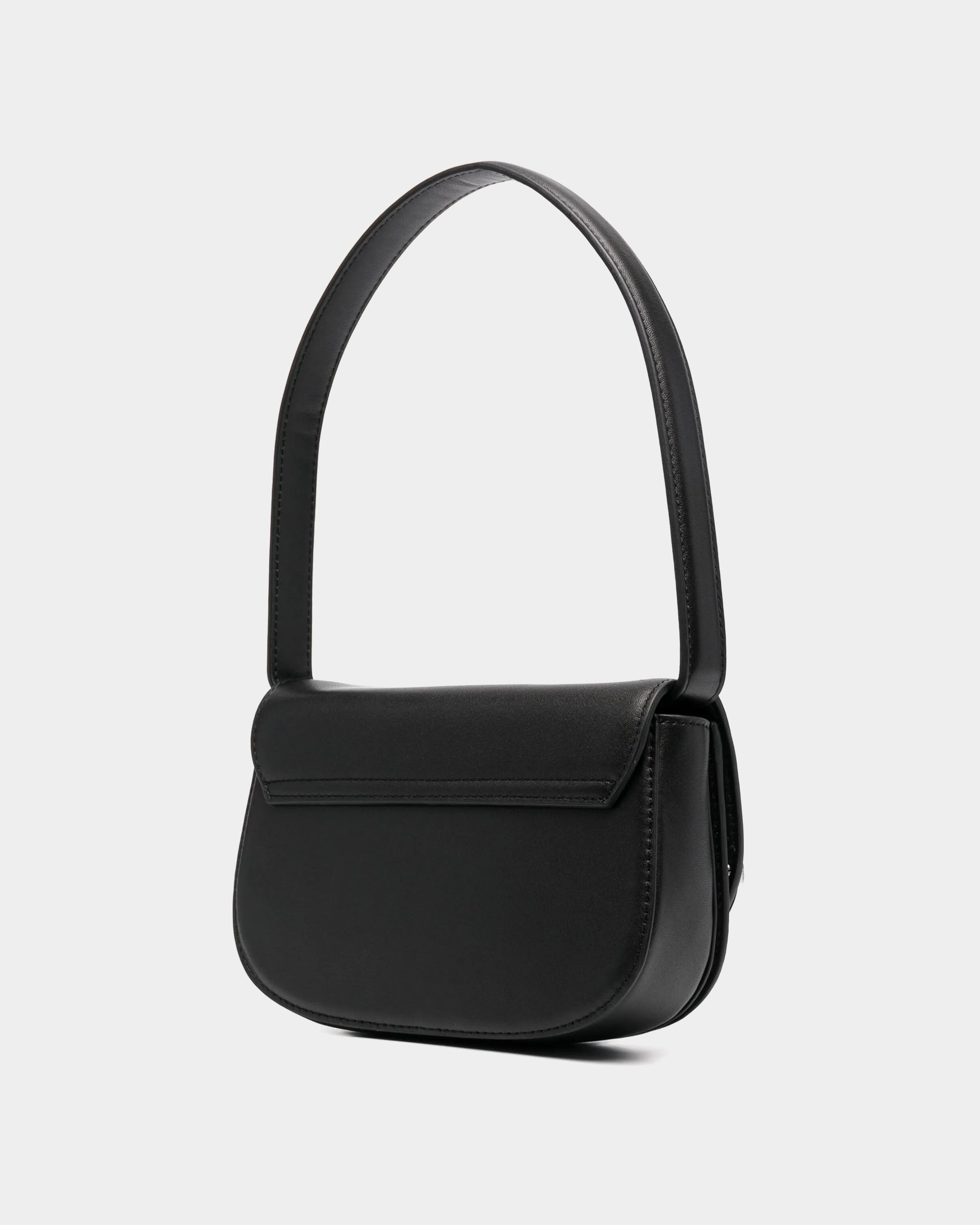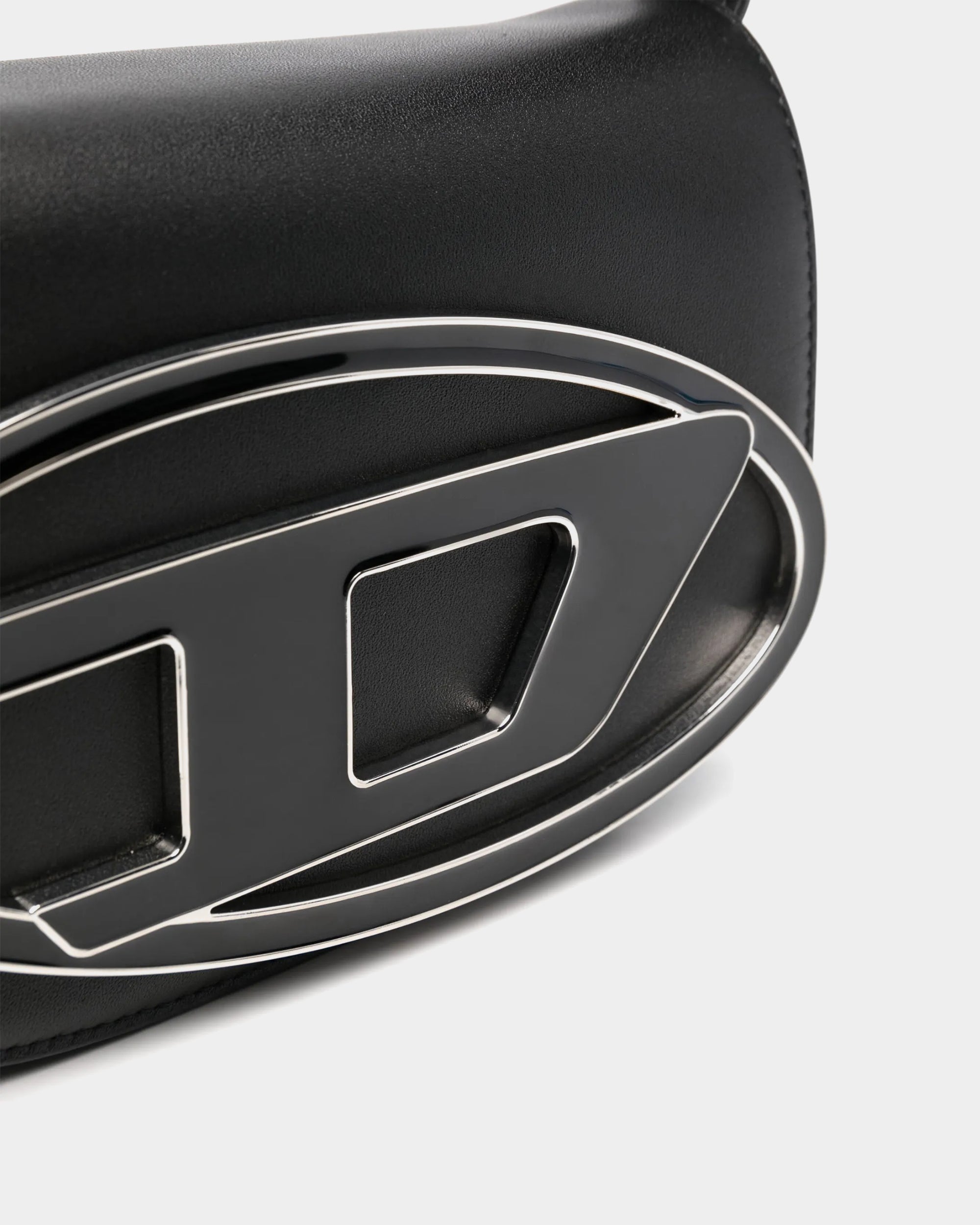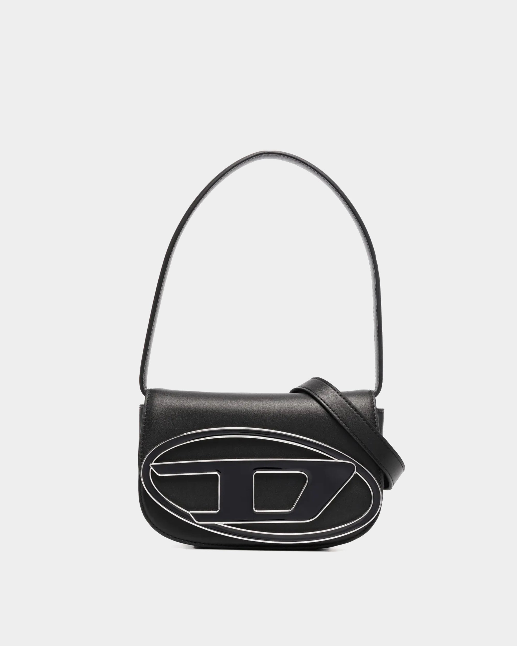 DIESEL D Logo Magnetic Closure Leather Shoulder Bag - Black