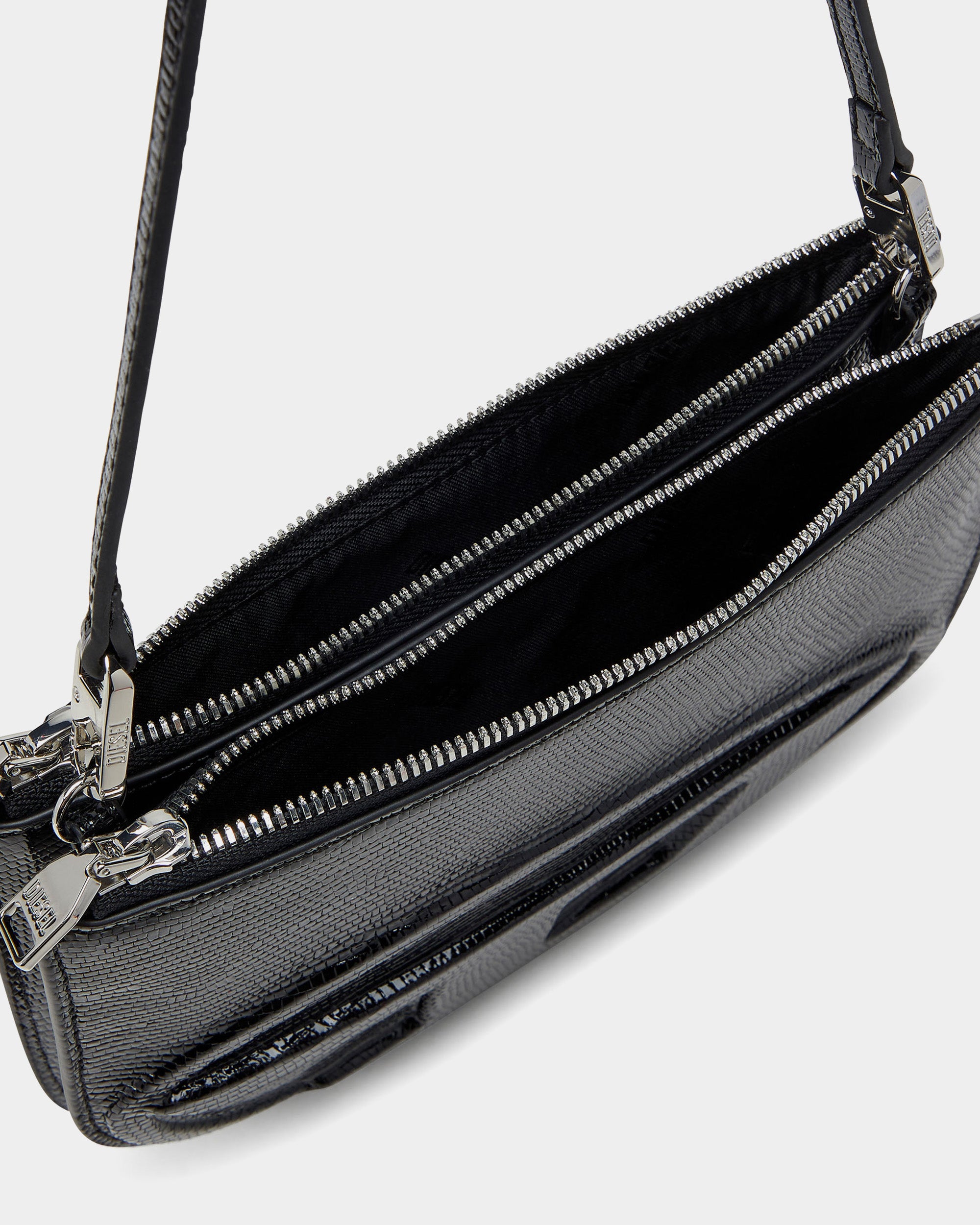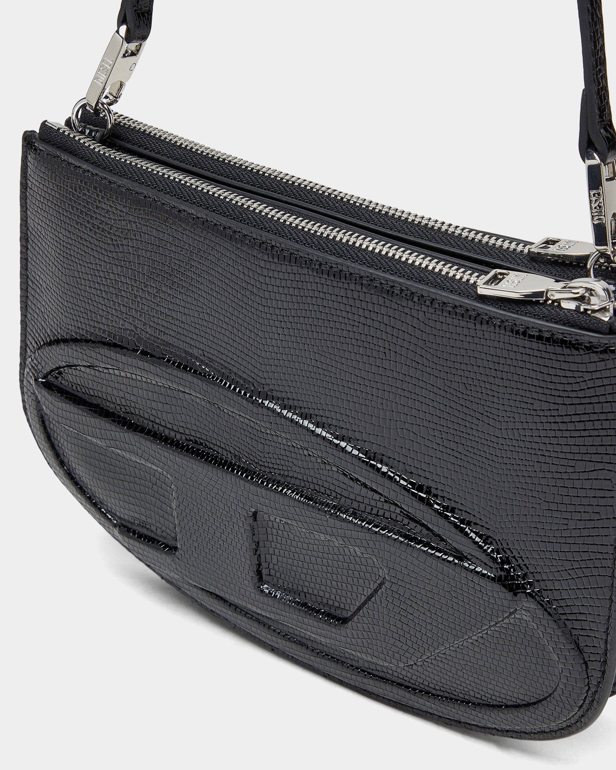 於 2025 秋冬時裝秀獨家亮相的女用肩背包,經典 1DR 包款的進化版本,並因配備雙層拉鍊袋而命名為「Twin」。設計纖薄卻具備充足容量,可輕鬆收納手機、卡片夾、鑰匙與唇膏,並附有兩條可拆卸肩帶,其中一條飾以柔軟奢華毛絨裝飾。包款以高級義大利牛皮製成,表面帶有動物紋理與亮澤質感,正面大型壓印 Oval D 標誌,展現 Diesel 的標誌性識別。