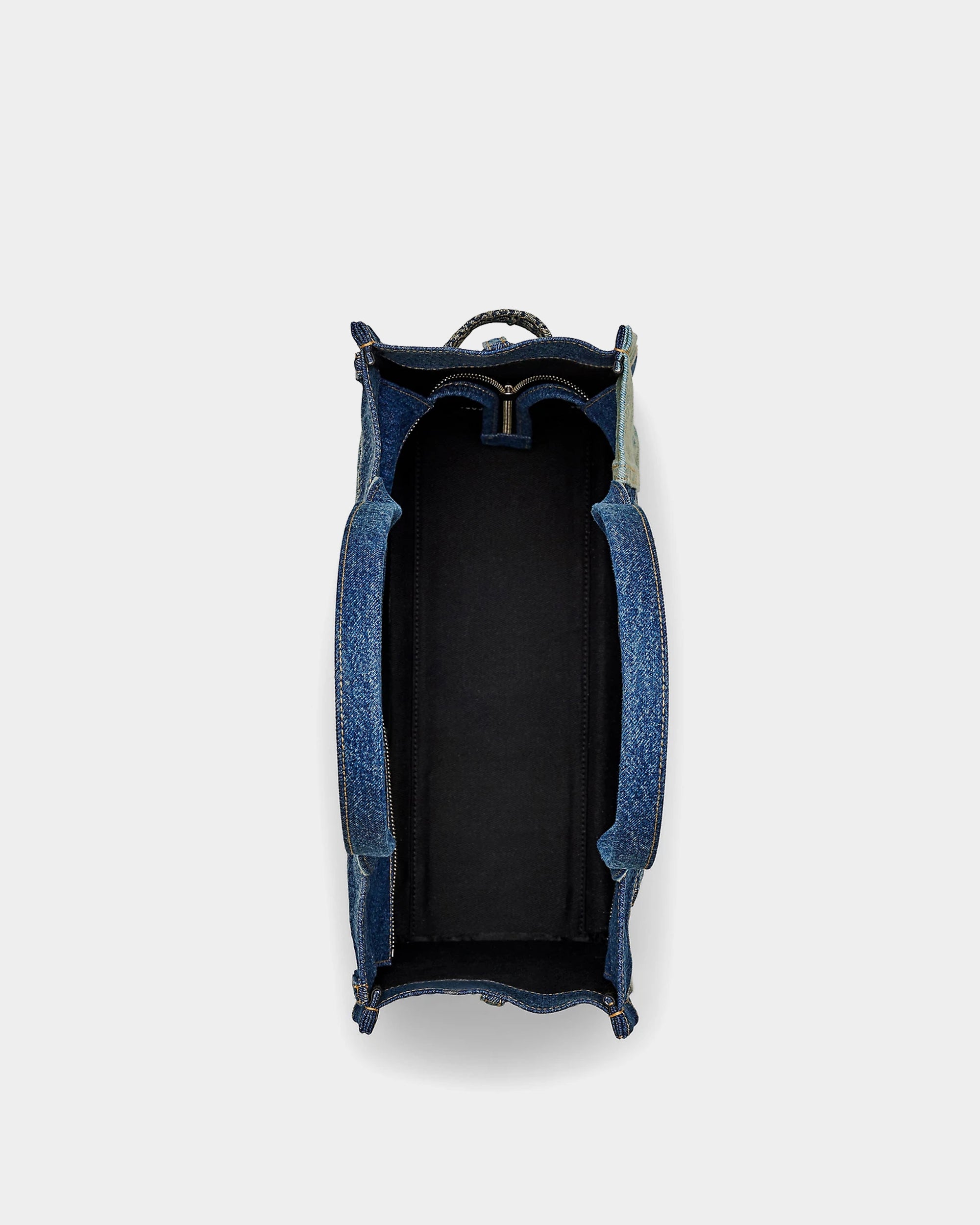 Made of multiple washed denim stitching, it showcases the brand's signature deconstructed style. The bag is made of denim fabrics of different shades, with a stiff structure that showcases retro and workwear elements. It has a spacious capacity and is suitable for work or short trips.