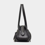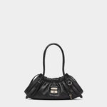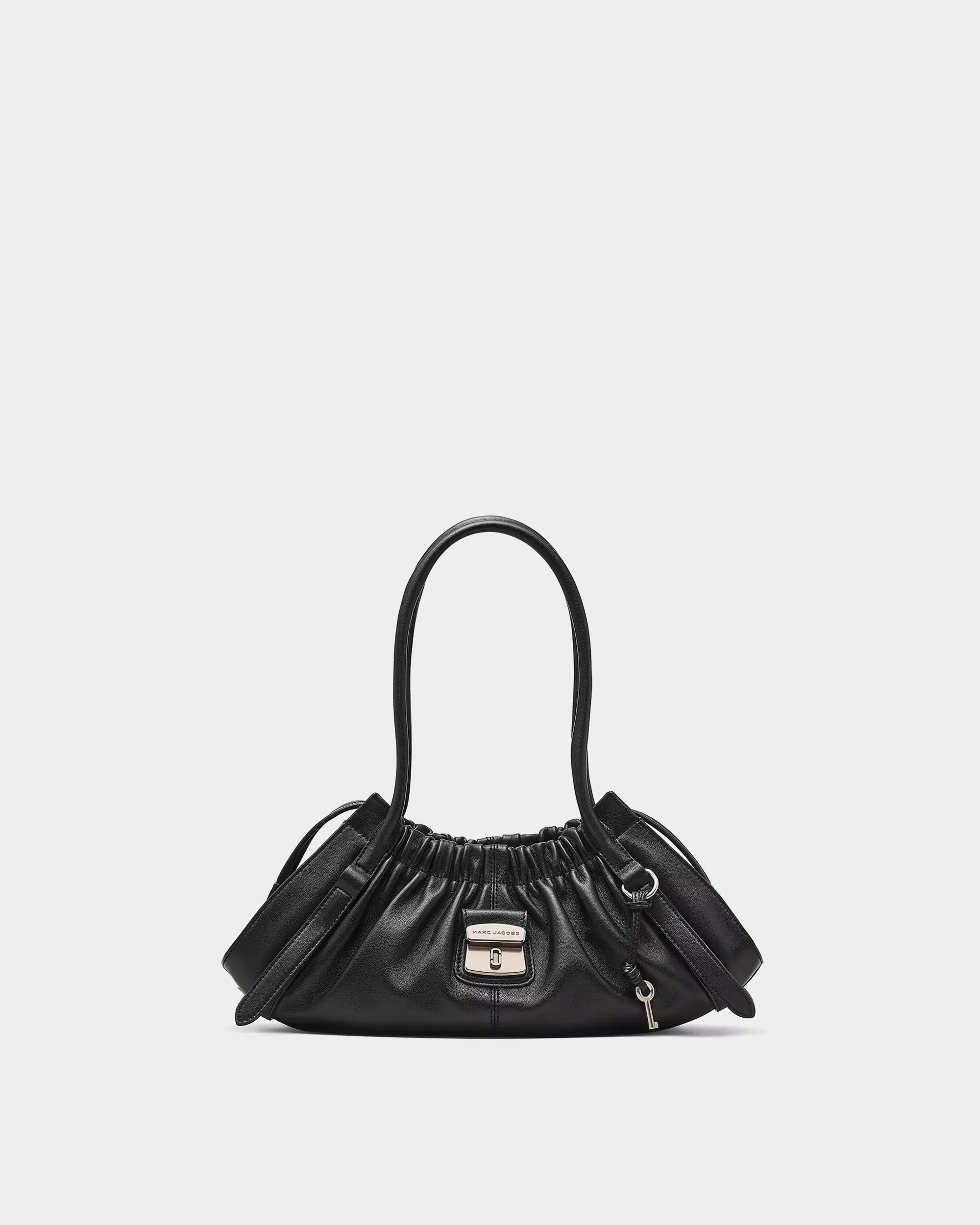 柔軟小羊皮結合抽皺設計,打造自然弧形輪廓與女性化線條。包身搭配金屬鎖扣與長提把,可肩背或手提,兼具優雅與實用。低調黑色皮革展現現代都會魅力,是日常穿搭的百搭包款。