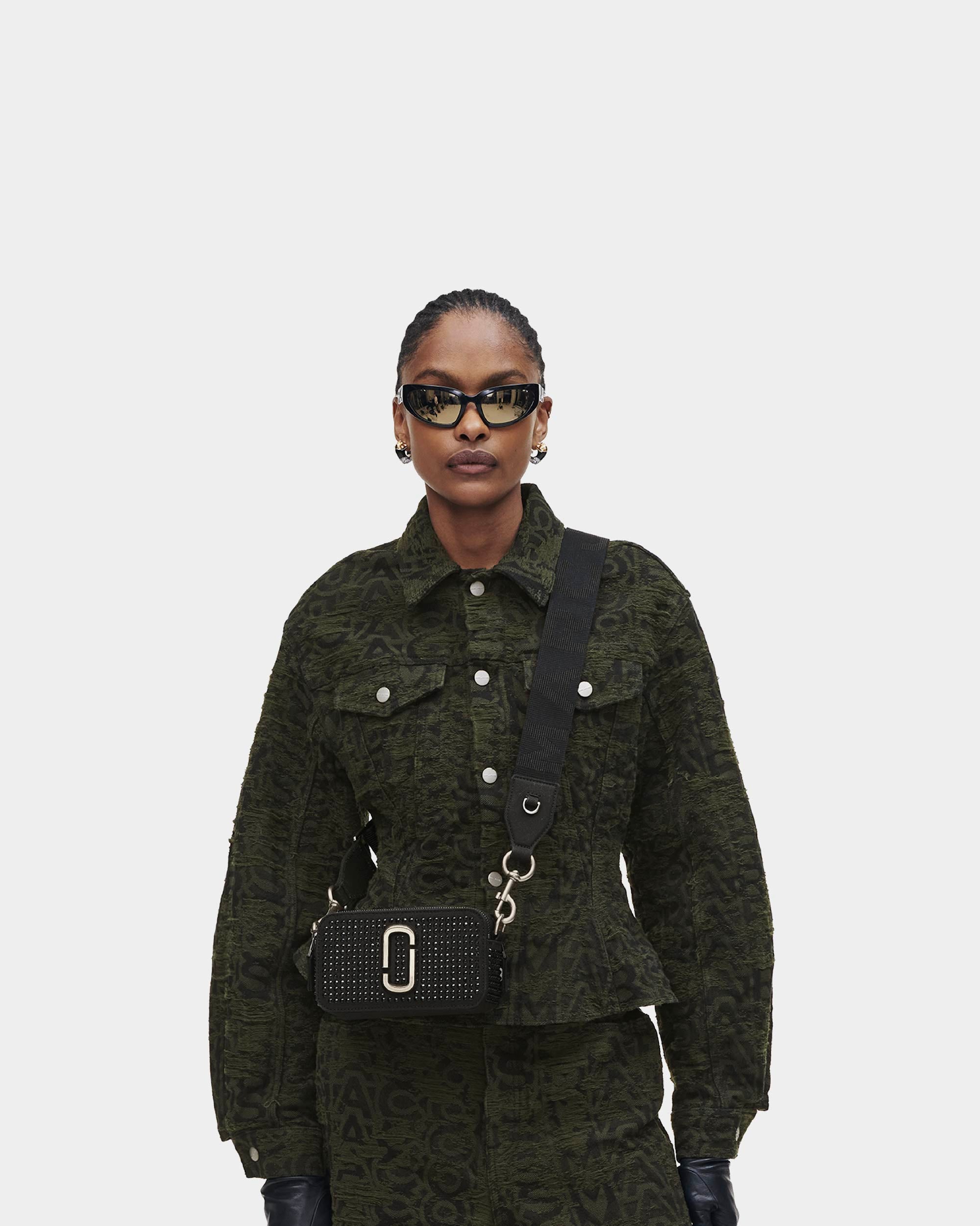 Straight from the Spring 2016 runway, this is our timeless classic. Made from cotton canvas, this Snapshot bag is embellished with clear crystals for a three-dimensional look. Featuring the classic J Marc hardware, a double zippered compartment, and a removable, adjustable webbing shoulder strap, this crossbody bag is just the right size for everyday needs, yet lightweight and portable for on-the-go glamour.