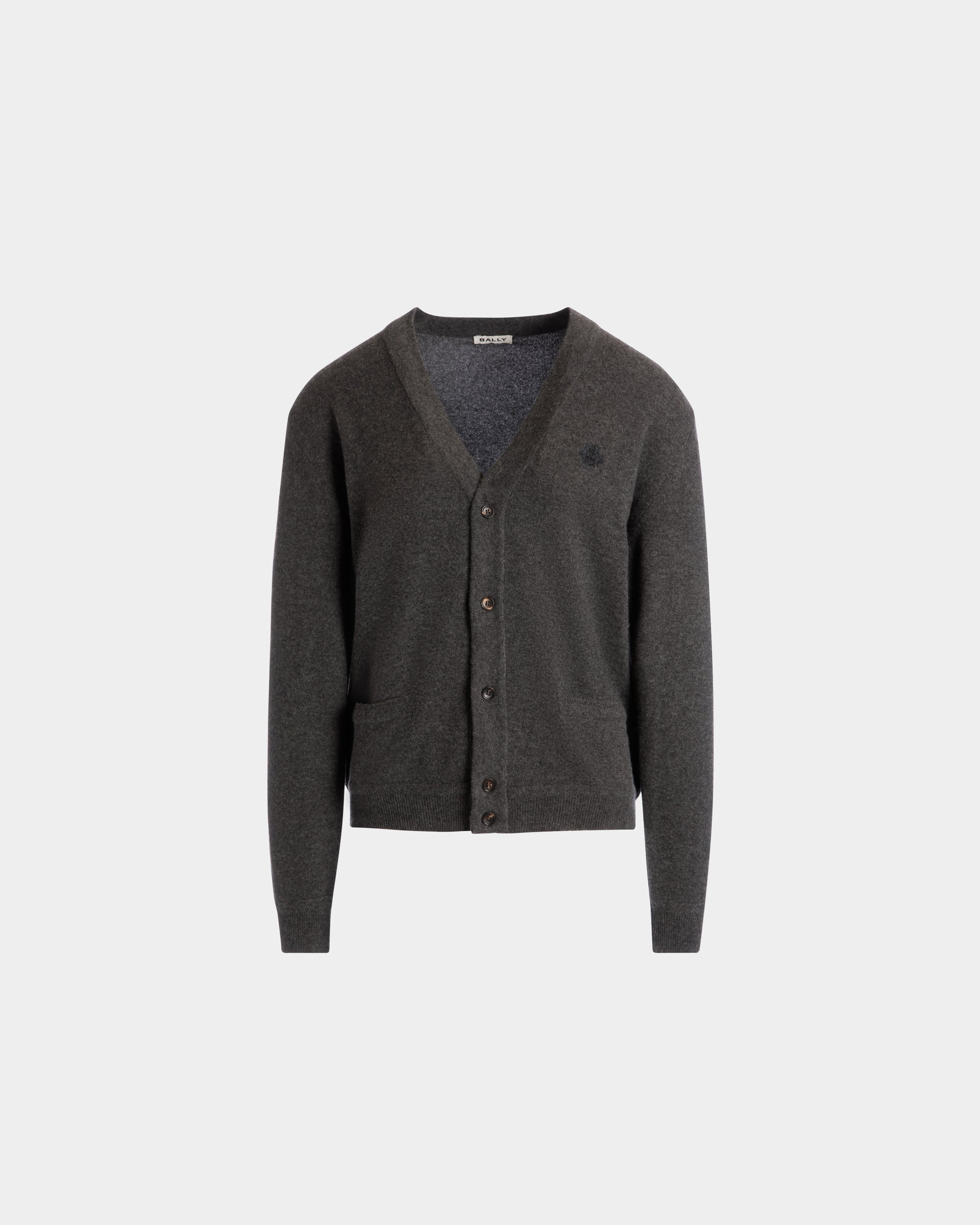This dark grey cashmere cardigan is woven from fine cashmere and detailed with Bally Crest embroidery. It features horn-effect resin buttons and two pockets at the front.