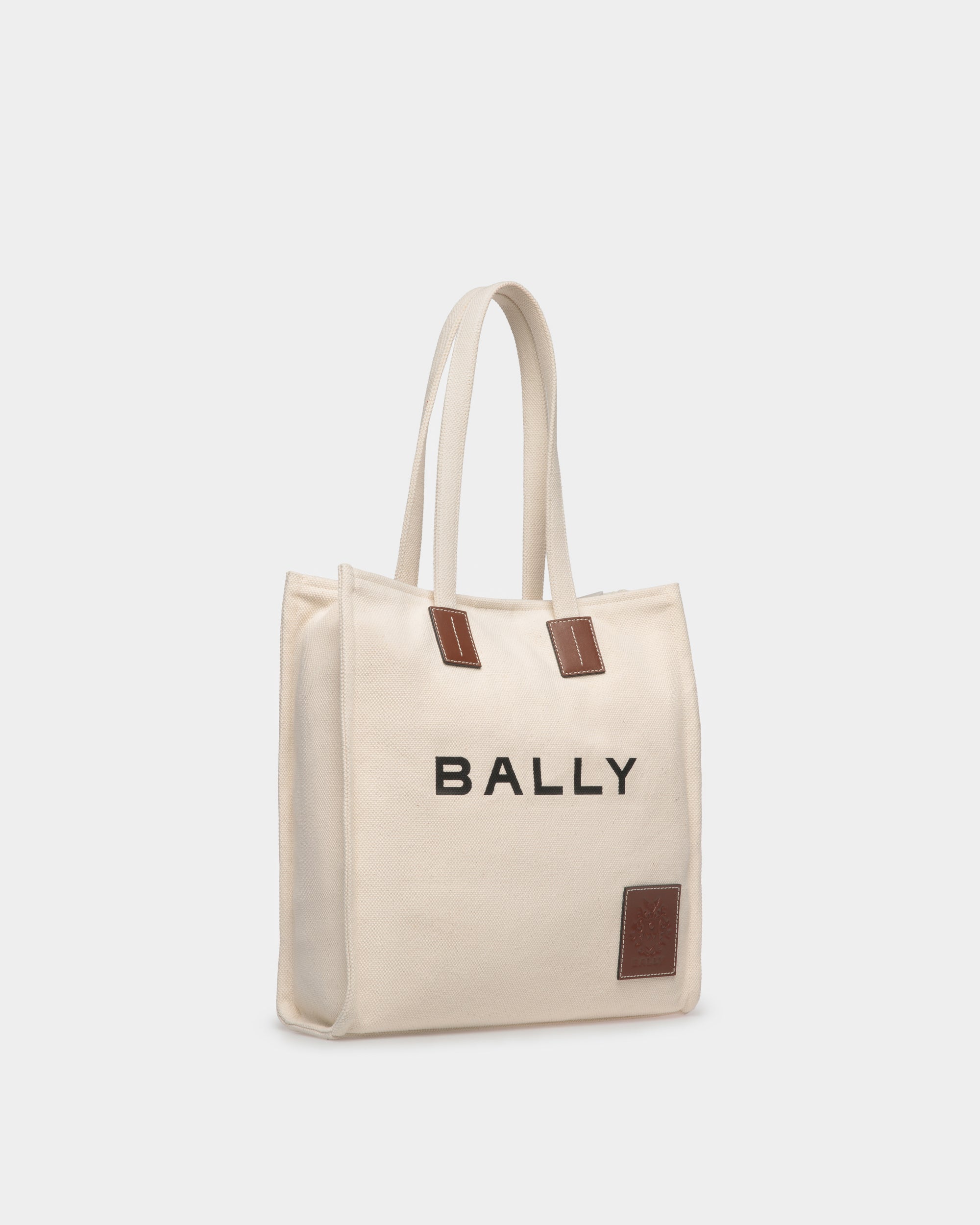 The Akelei tote is crafted from durable canvas with leather details. The front features a printed Bally logo and leather patch with a debossed Crest logo. The magnetic closure keeps your belongings secure, while the wide handles make it easy to carry over the shoulder. Its structure allows it to be easily folded and carried as a second bag when traveling.