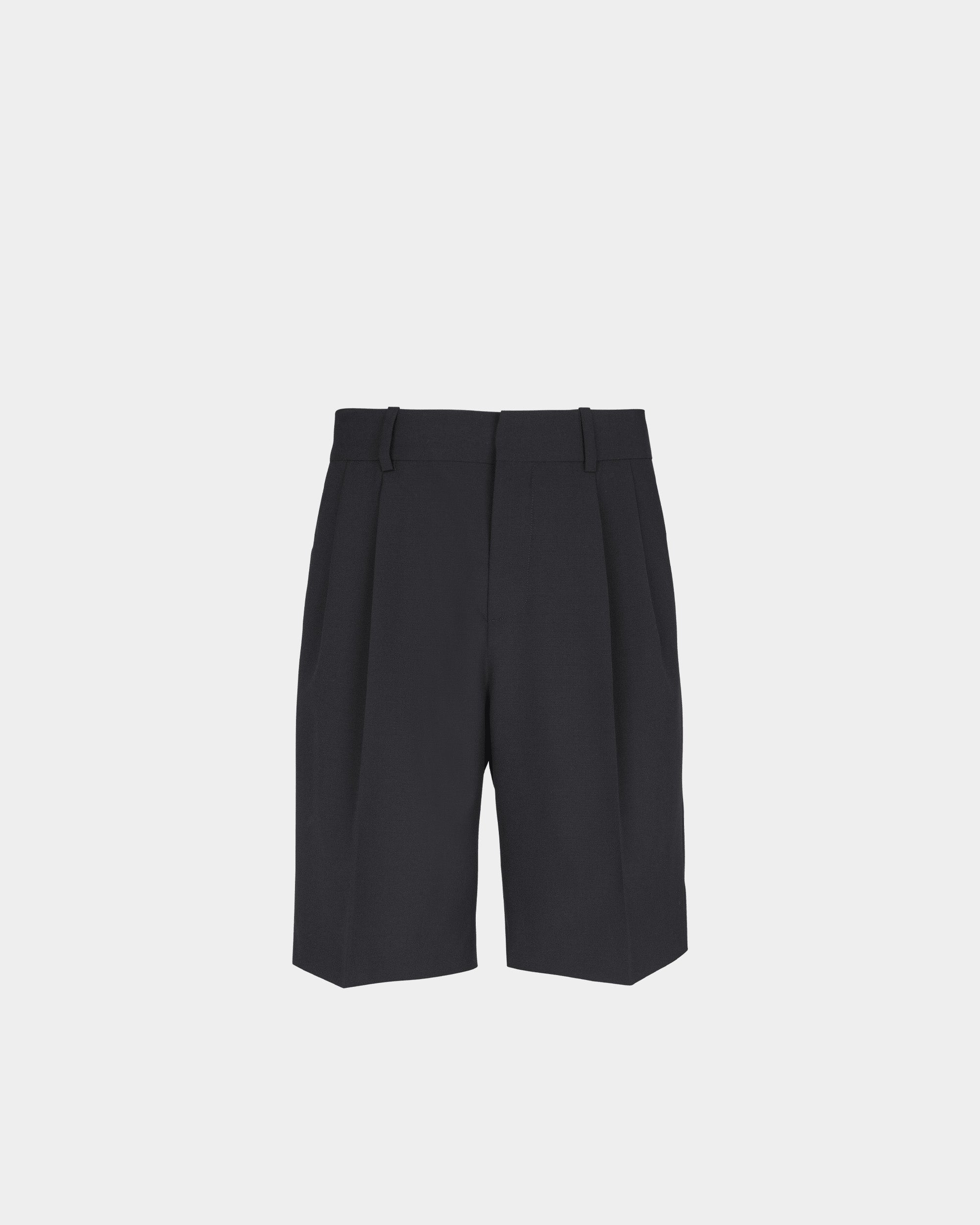 此款羊毛百慕達短褲以俐落打摺設計呈現清爽比例,結合直筒剪裁,展現簡潔而有結構感的輪廓。側邊義大利口袋與腰頭皮帶環設計兼具實用性與造型感,背面刺繡標籤低調點綴細節。適合搭配襯衫或西裝外套,打造都會感與夏季正式風格兼具的穿搭。