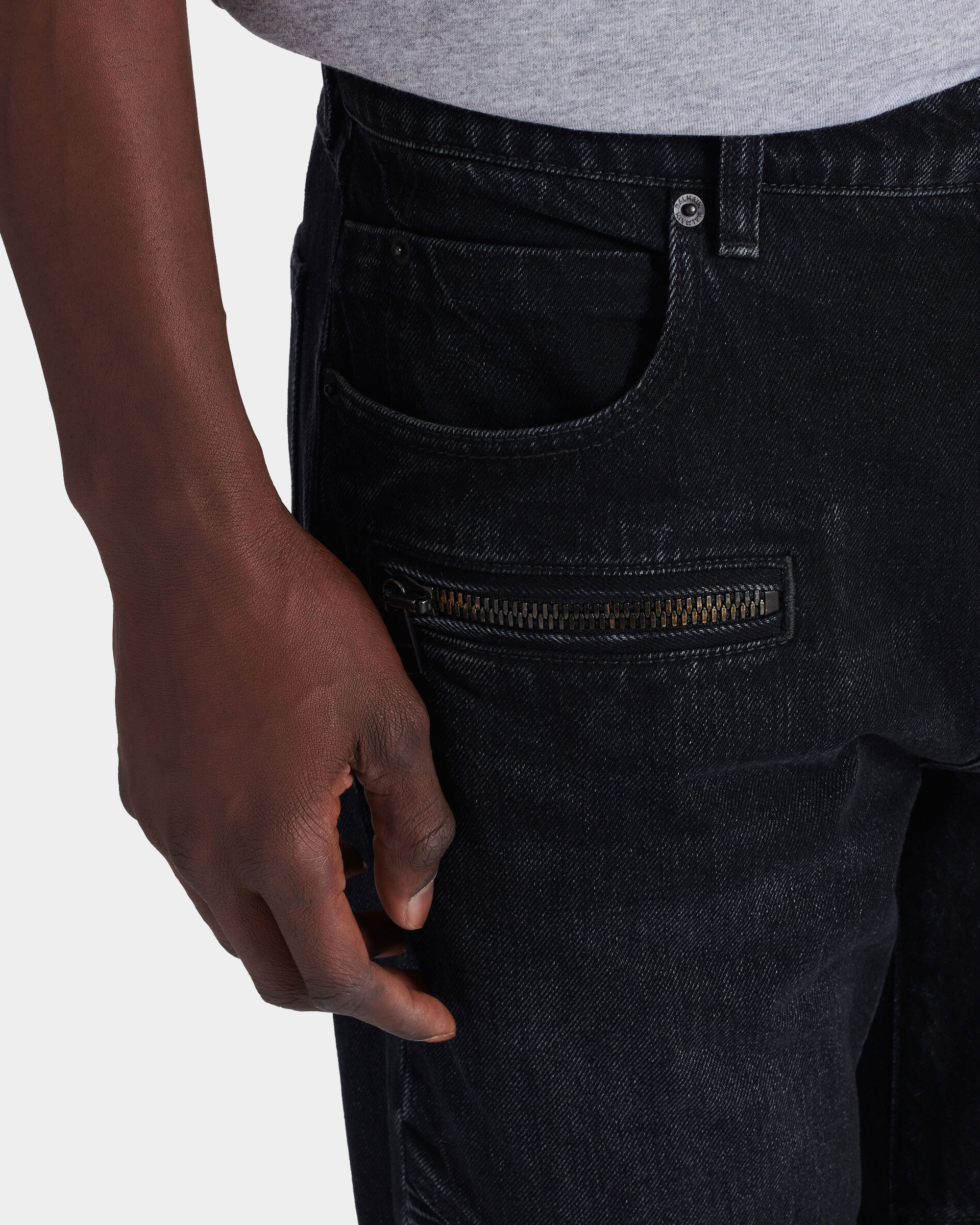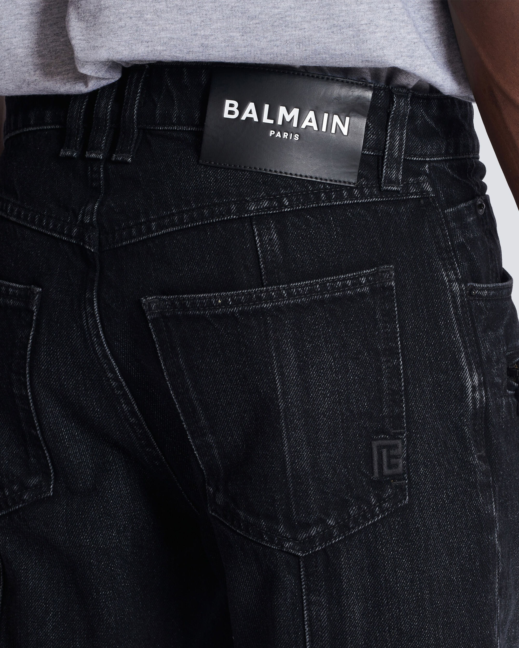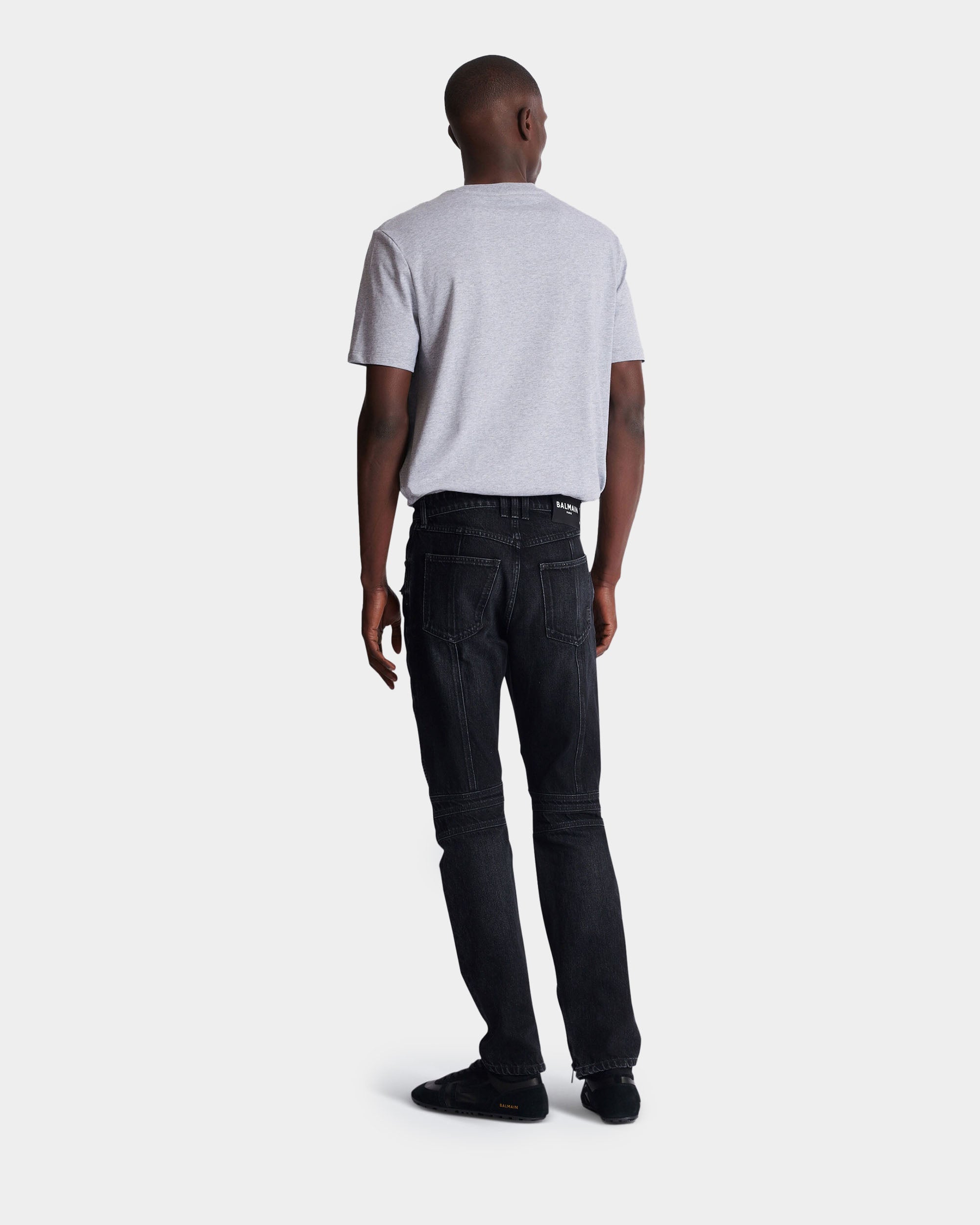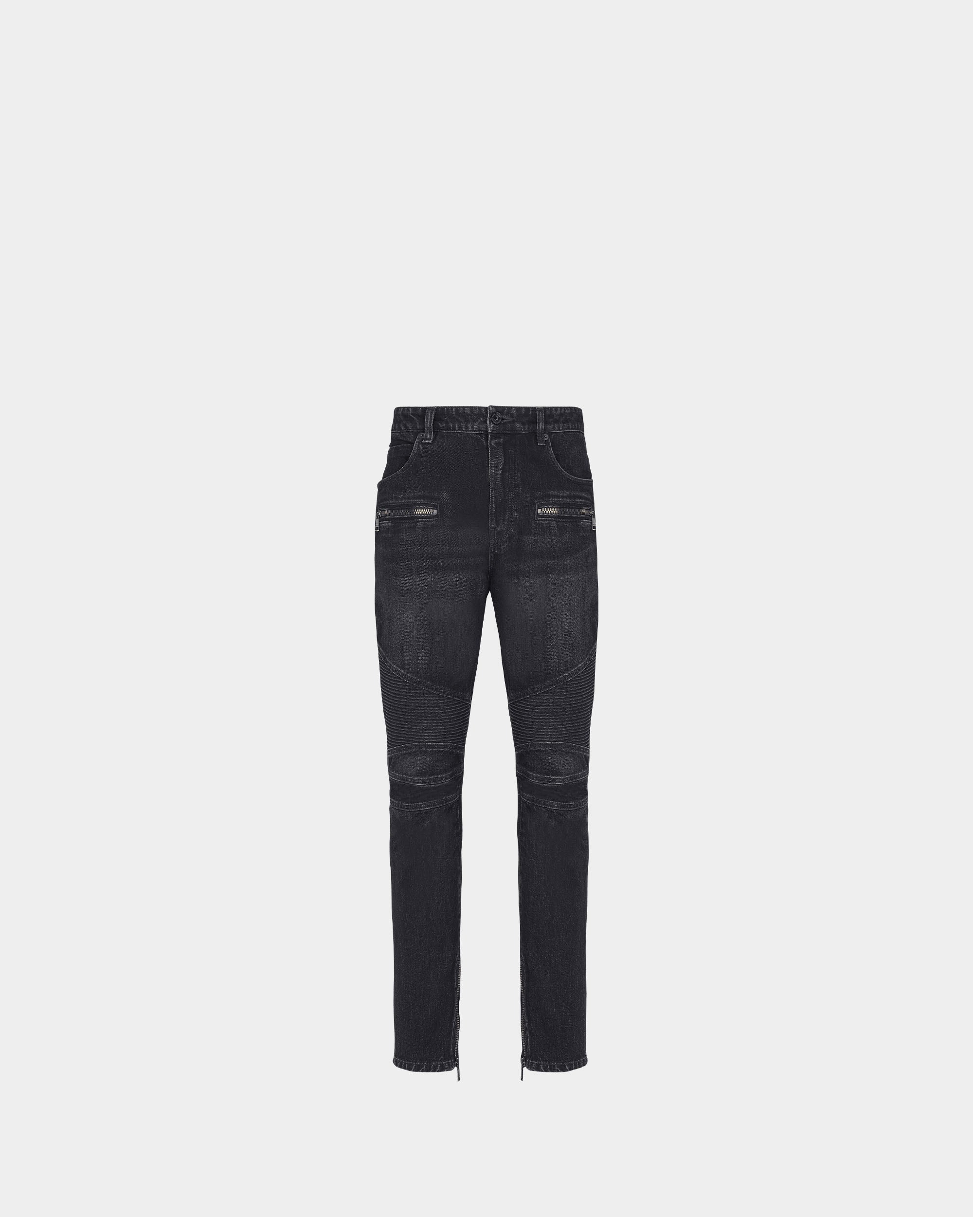 BALMAIN 黑色水洗騎士剪裁丹寧長褲