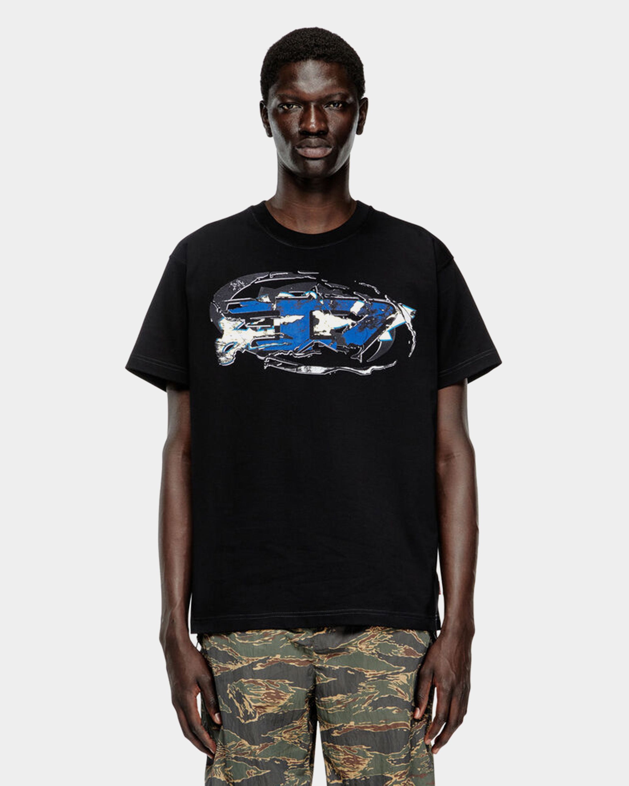 這款 T-NORM-T11 短袖 T-恤以純棉布料製成,觸感柔軟,透氣舒適。正面印有錯位與重疊效果的 Oval D 圖案,營造出帶有實驗感的街頭視覺風格。標準版型搭配經典圓領設計,既百搭又具辨識度,是日常造型中輕鬆展現 Diesel 前衛態度的單品。
