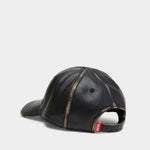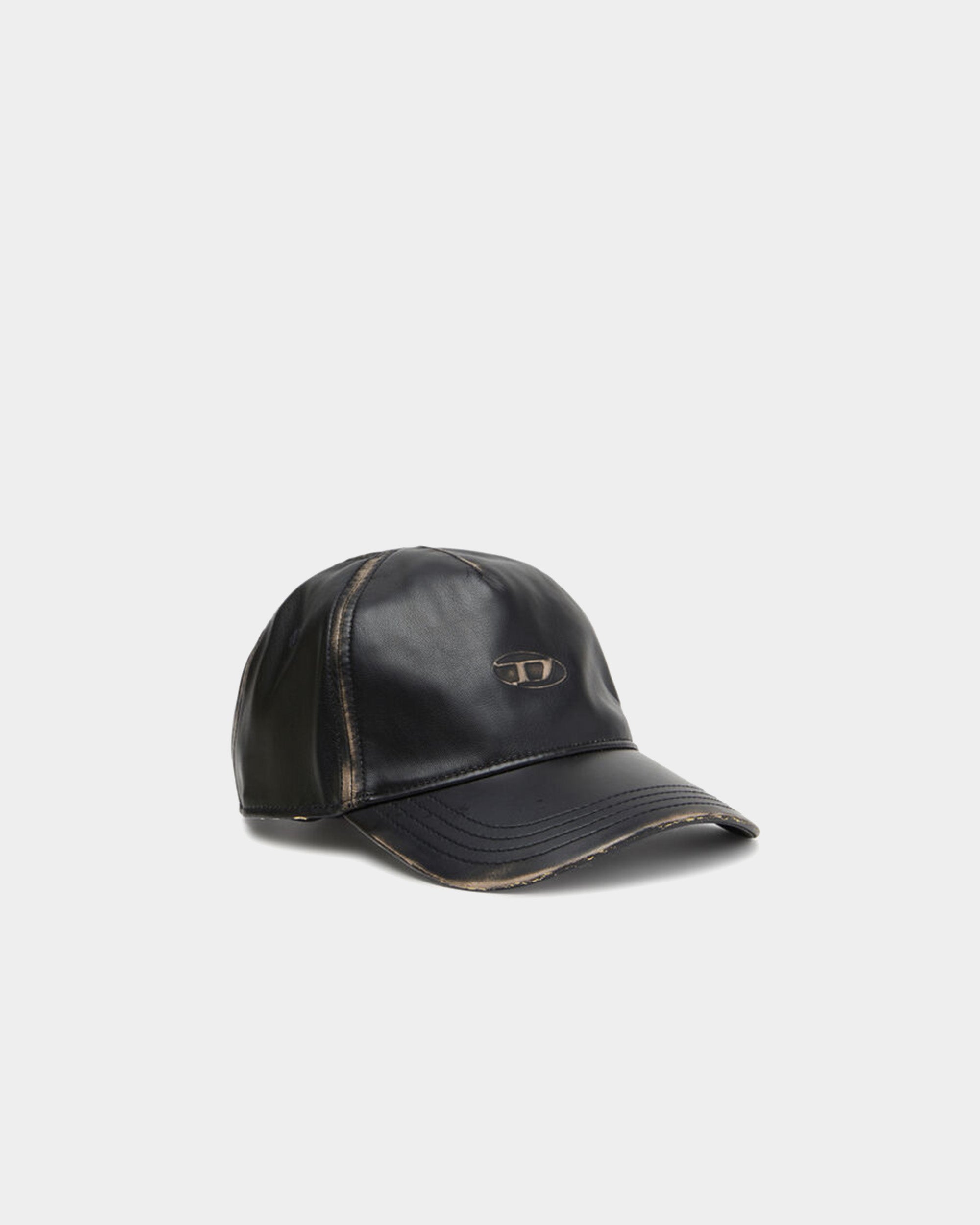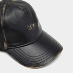這款棒球帽採用 100% 聚氨酯人造皮革製成,整體做洗舊風格,正面中央刺繡圓形「D」標誌,展現品牌特色。帽後配有金屬調節扣,方便調整尺寸,適合日常穿搭。