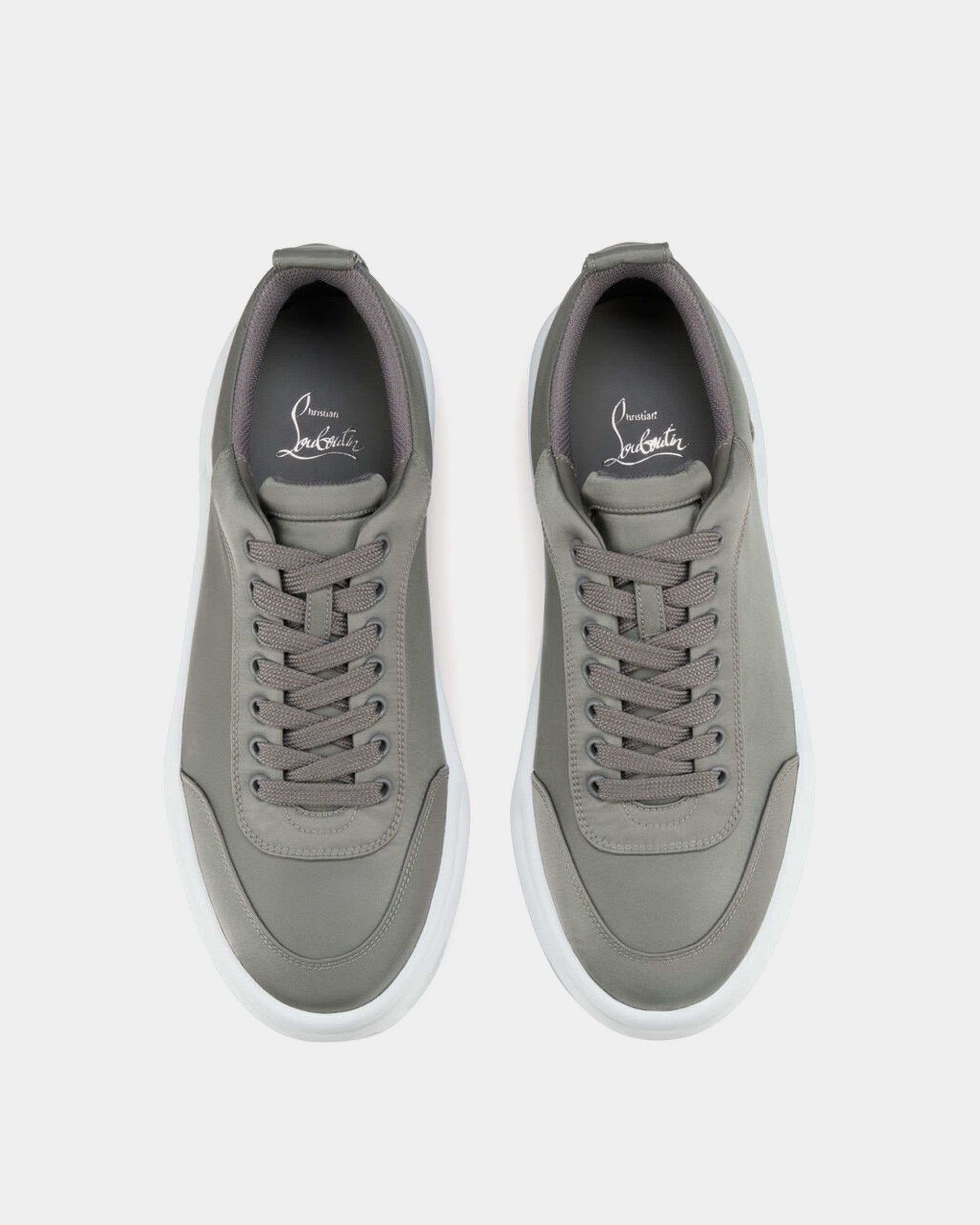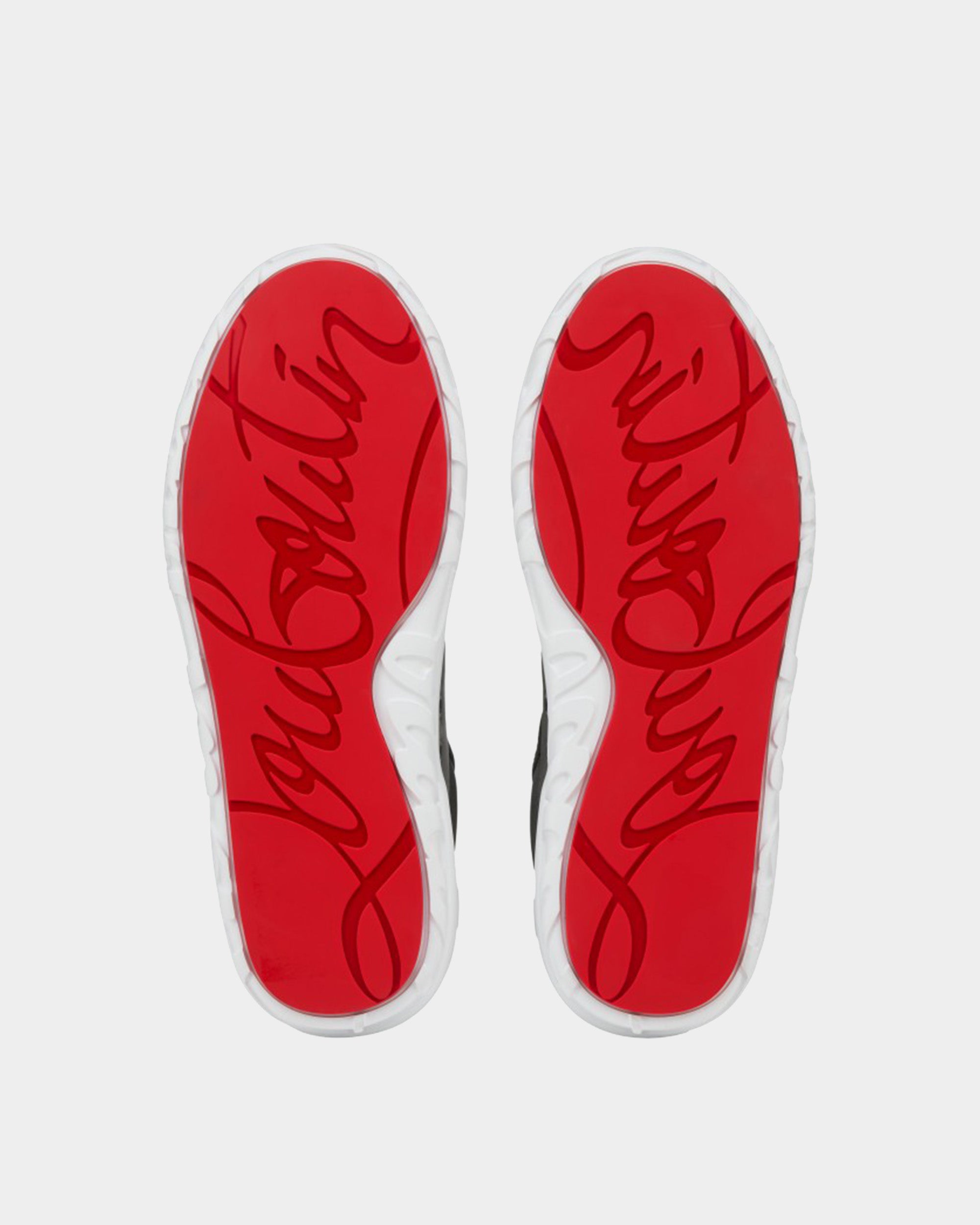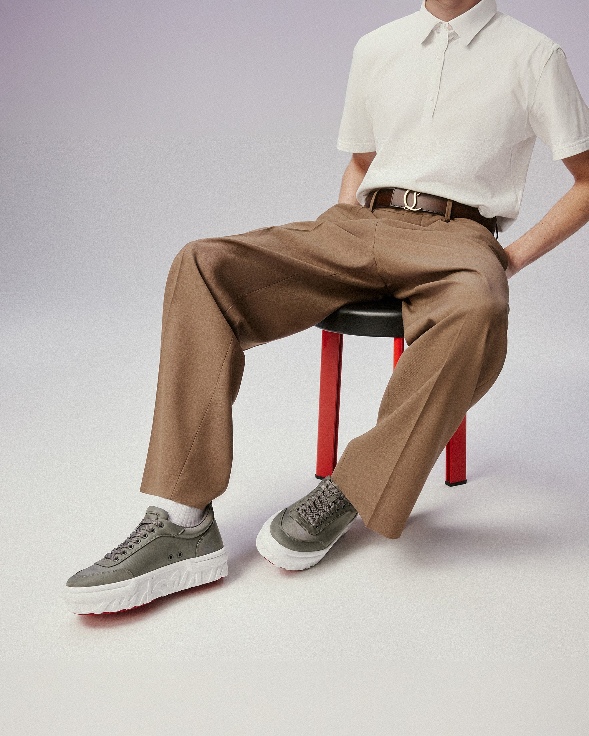 以布料結合橡膠細節,創造俐落且具現代感的外型。厚實的白色雕刻感鞋底不僅增添時尚份量感,亦提供舒適支撐與穩定腳感。鞋底隱藏的紅色細節呼應品牌經典元素,讓每一步都散發低調奢華。這款鞋非常適合日常休閒或潮流造型搭配,無論是簡約牛仔褲或運動風穿搭,都能展現自信與個性,完美詮釋當代時尚與舒適並重的精神。