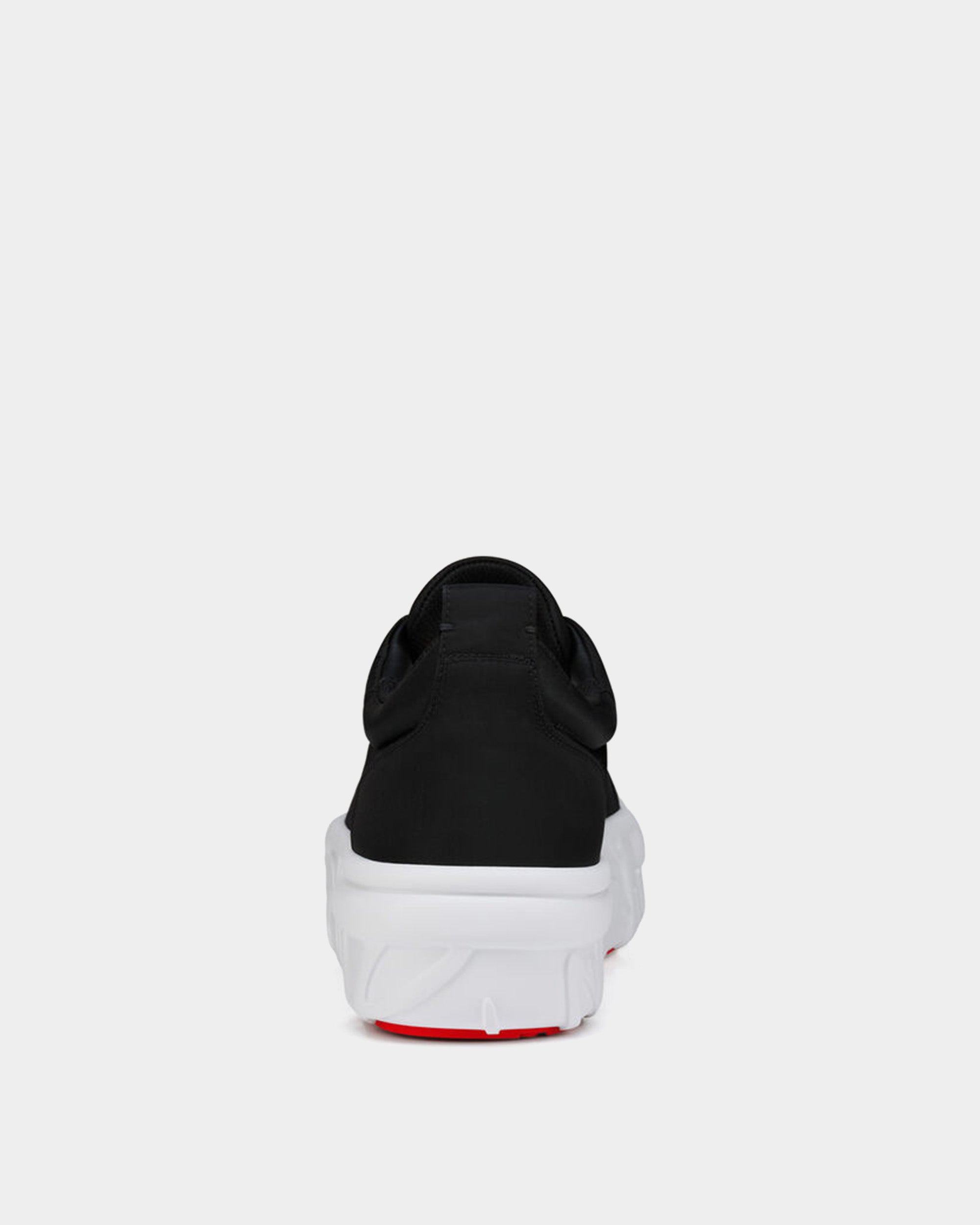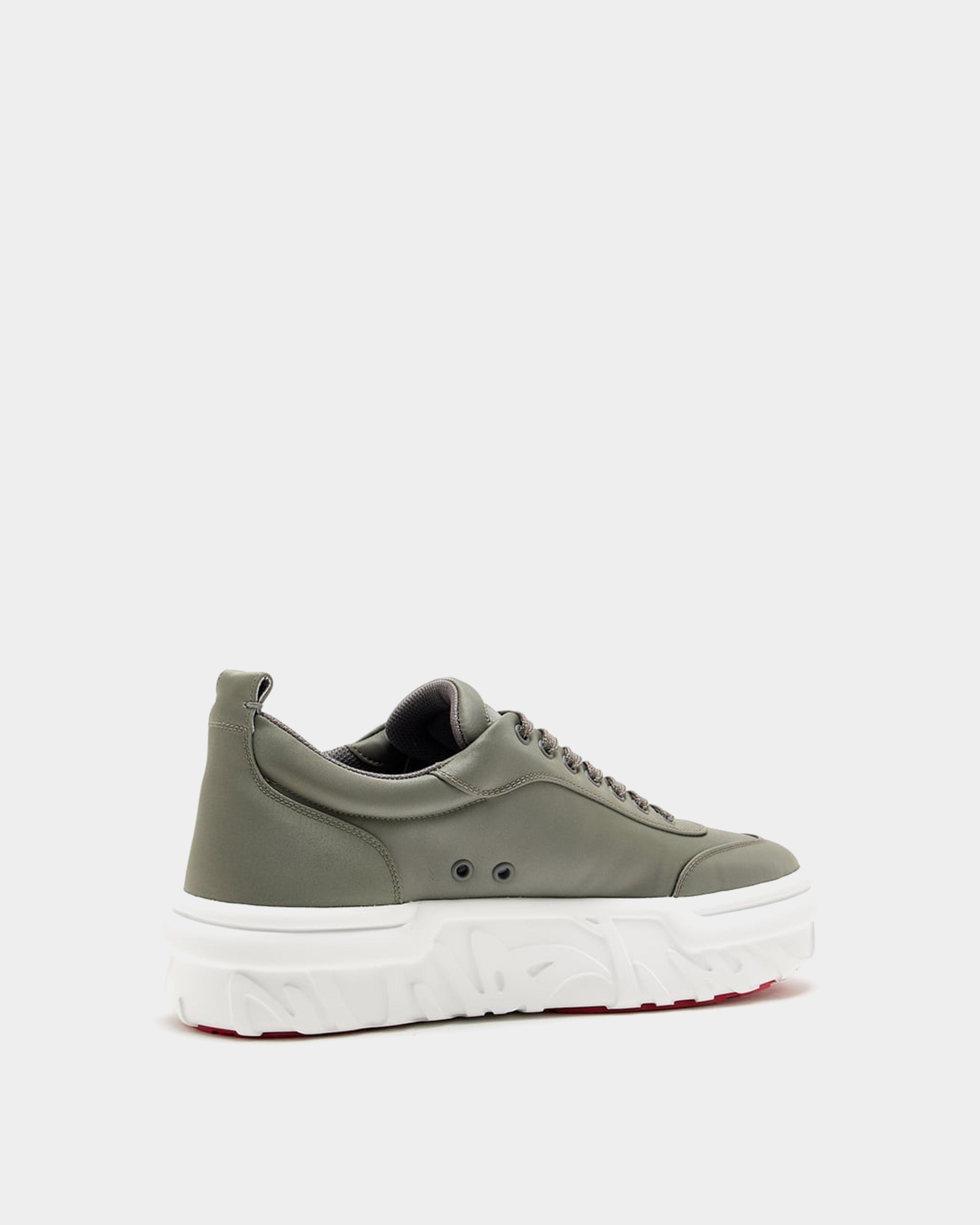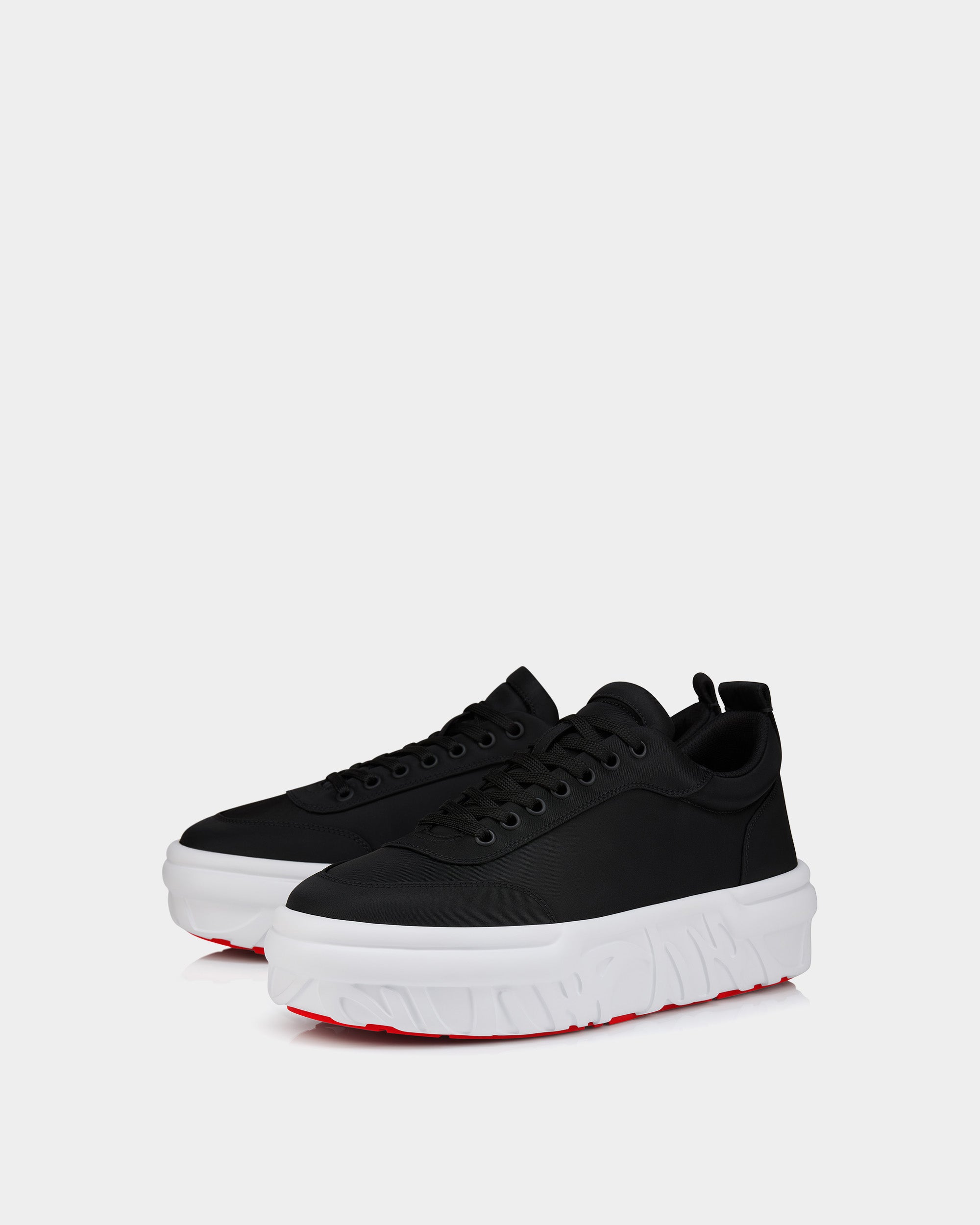 以布料結合橡膠細節,創造俐落且具現代感的外型。厚實的白色雕刻感鞋底不僅增添時尚份量感,亦提供舒適支撐與穩定腳感。鞋底隱藏的紅色細節呼應品牌經典元素,讓每一步都散發低調奢華。這款鞋非常適合日常休閒或潮流造型搭配,無論是簡約牛仔褲或運動風穿搭,都能展現自信與個性,完美詮釋當代時尚與舒適並重的精神。