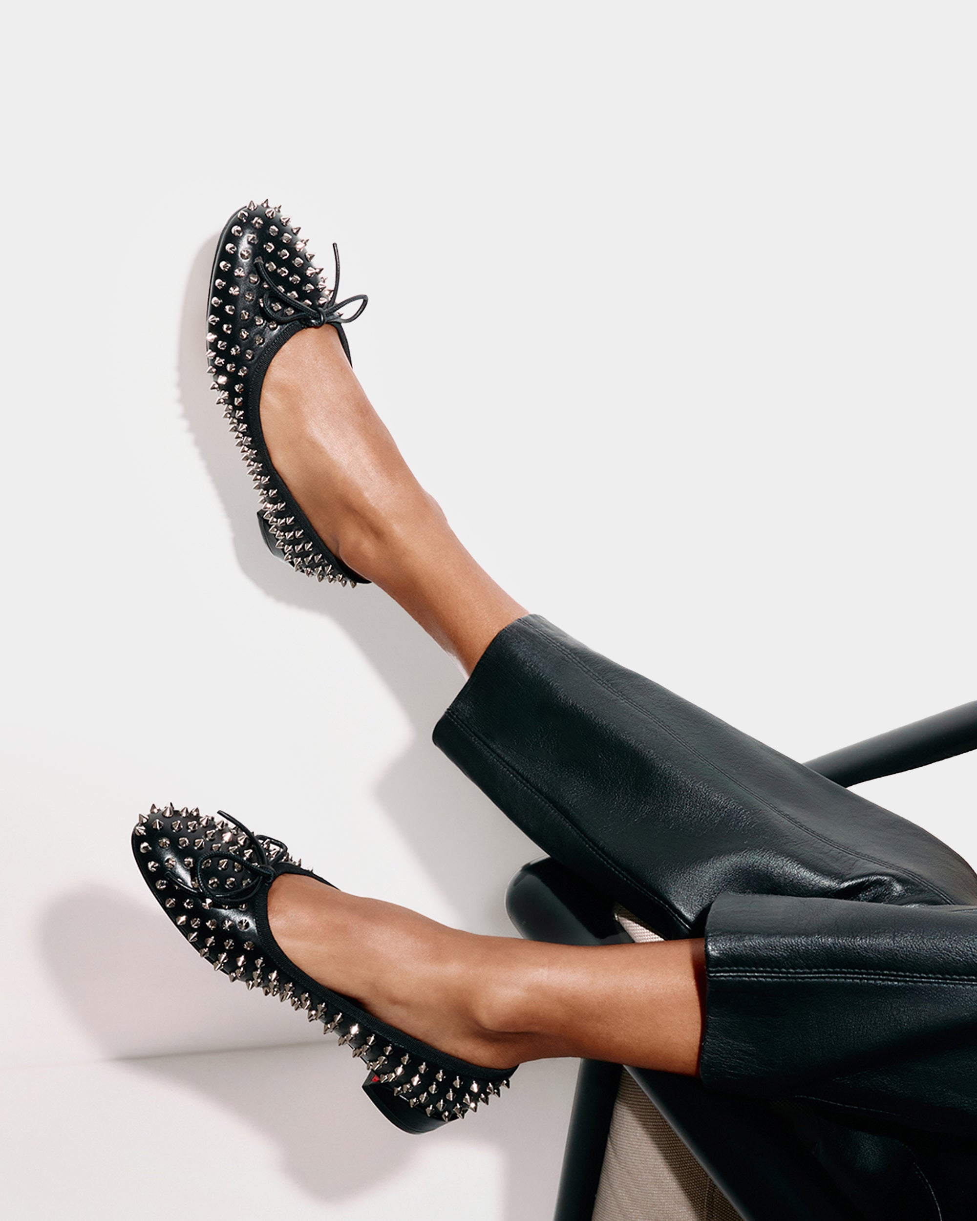 Sweetie Jane ballet flats perfectly combine soft lambskin with classic rivets, outlining a neat and individual feminine style. The elegant bow embellishes the upper, and the details show exquisite craftsmanship. With the iconic red sole, it easily shows the tension charm in a low-key way, which is just right for daily life or travel.
