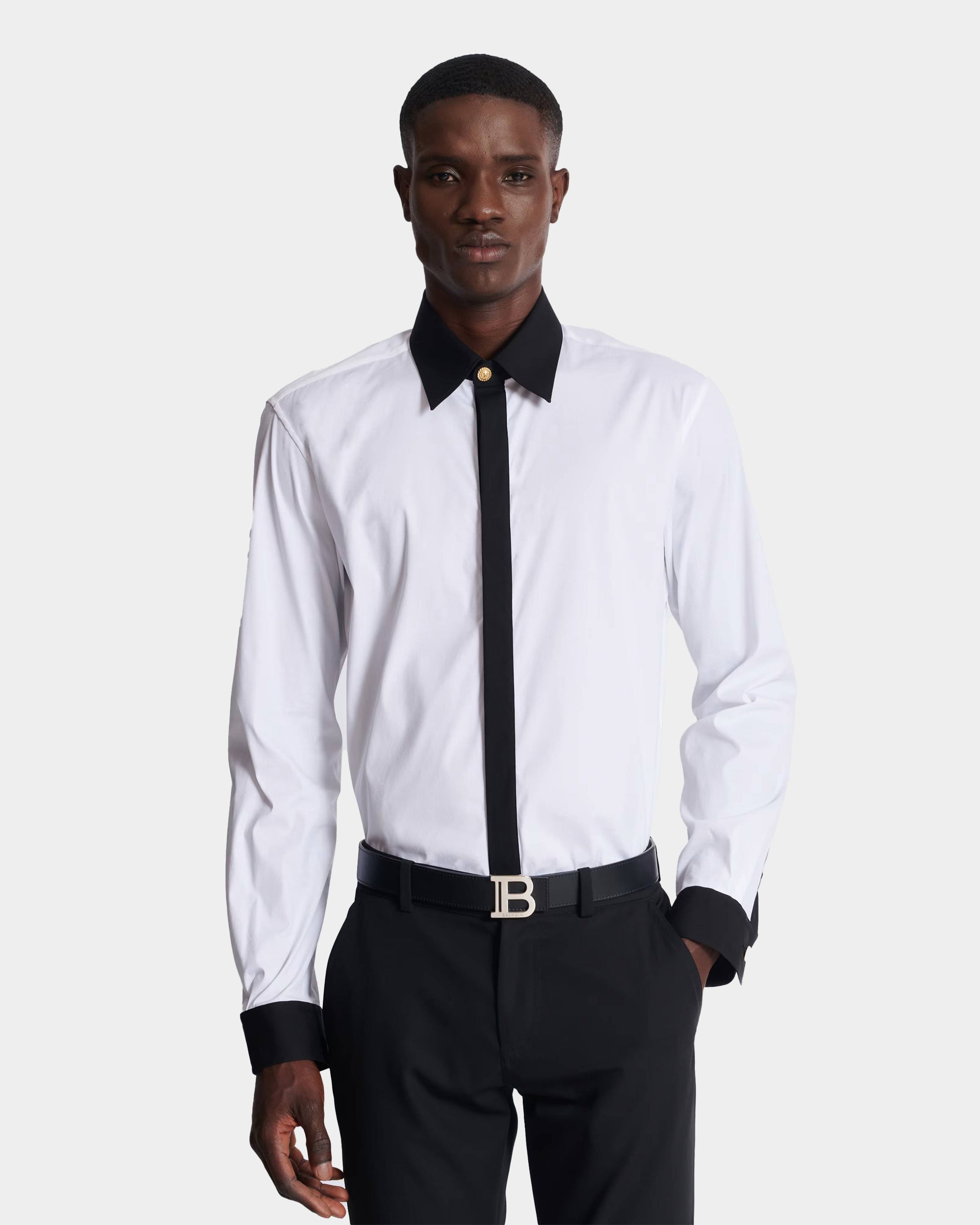 BALMAIN Black B-shaped buckle belt 35MM