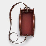 俐落結構線條結合法式極簡與美式街頭風格,選用光滑棕色皮革,正面壓印聯名標誌。內部配置實用收納口袋,搭配手提把與可調式肩背帶,兼具實用與高級質感。