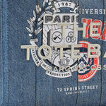 學院風為靈感,結合 A.P.C. 的法式極簡與 Marc Jacobs 的美式大膽;包身為結構感牛仔布,正面刺繡標誌。上方拉鍊開合,內有拉鍊口袋與卡片槽;附可拆、可調節的織帶肩背帶與手提把,日常通勤與旅行都實用。