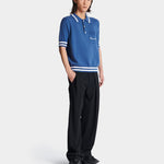 BALMAIN Striped Piping Embroidered Wool Polo Shirt - Blue