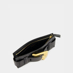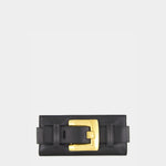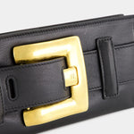 採用柔軟黑色小牛皮製成,正面飾以超大金色金屬方扣,為經典極簡設計增添大膽亮點。俐落的長方輪廓結構,既可手拿也能收納於包中作為晚宴或正式場合的點睛配件。精緻工藝與摩登線條,完美展現 BALMAIN 的前衛時尚精神。