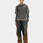 這款 K-PETRO 上衣採用 100% 有機棉編織,帶來柔軟與環保兼具的穿著感。特色為「層次脫落」設計:在接縫處加入不規則的「剝落式」網眼布片,仿若外層服飾被剝落的視覺效果;下擺以拉絲線結構處理,營造自然磨損與復古破損感。袖子採用羅紋針織設計,版型偏寬鬆,胸前繡有低調的 Oval D 標誌,整體風格融合街頭與藝術感。
