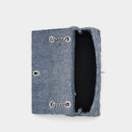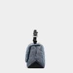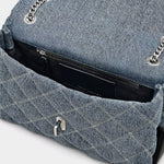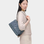 雙鏈包結合丹寧布與菱格縫線設計,呈現獨特休閒氛圍,兼具功能性與時尚感。