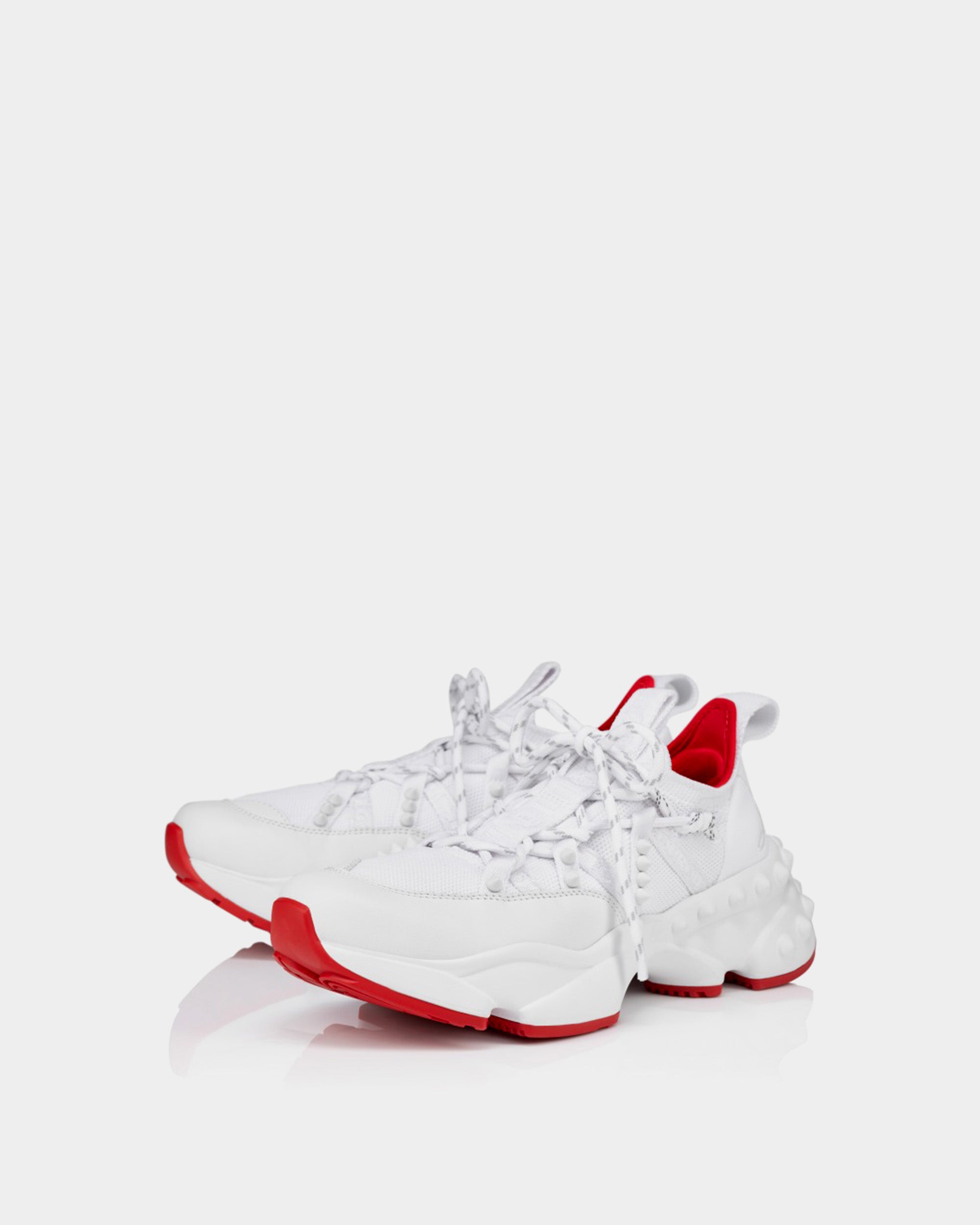 CHRISTIAN LOUBOUTIN Fun Vieira Metallic Stitching White Sneakers - Red/White