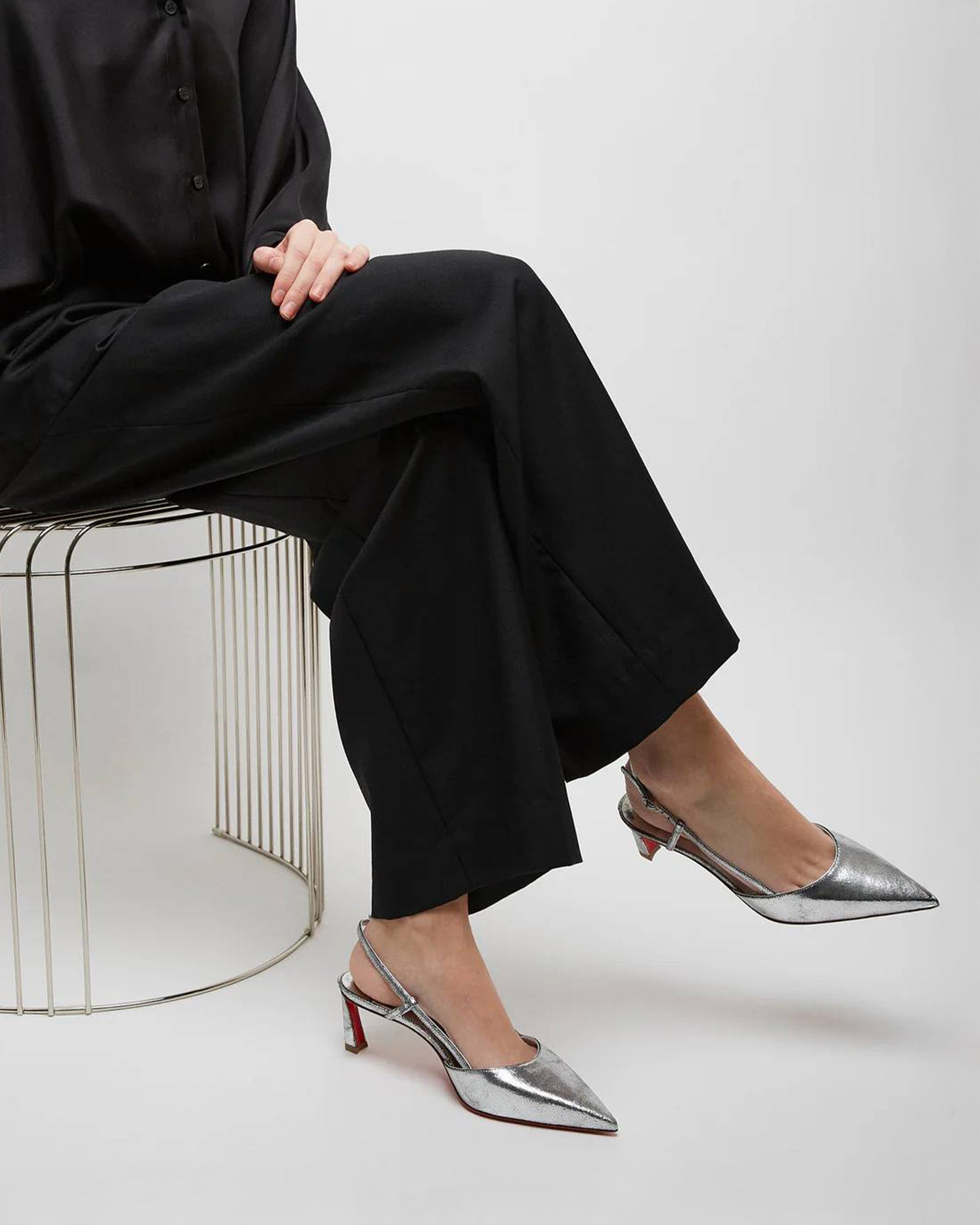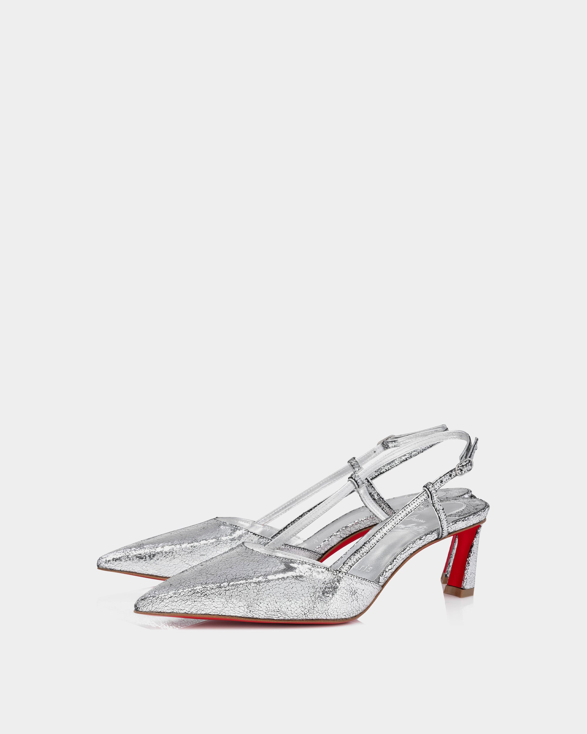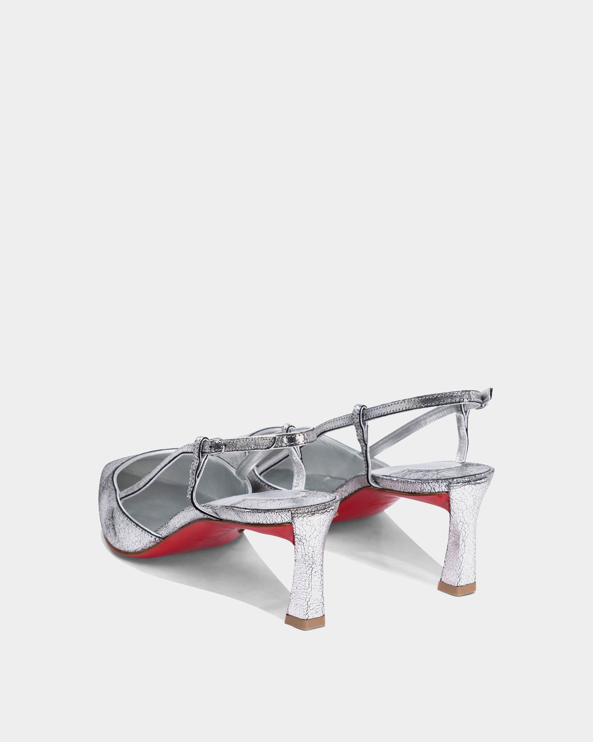 CHRISTIAN LOUBOUTIN 銀色小牛皮後繫帶跟鞋