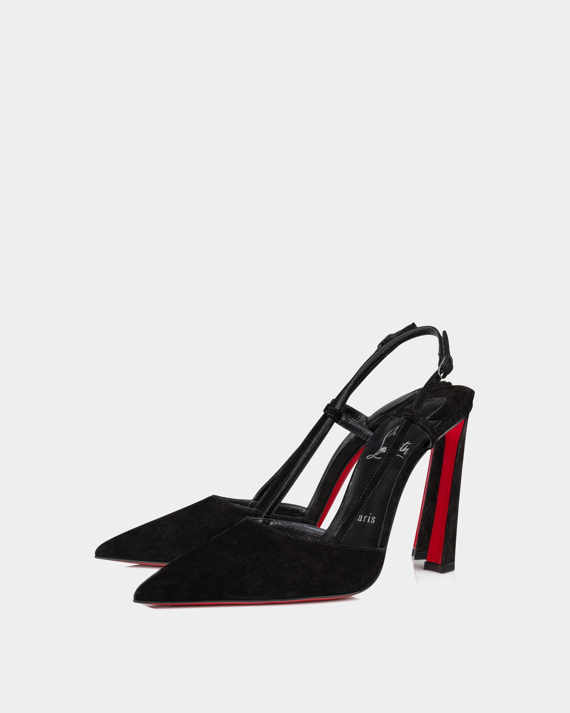 CHRISTIAN LOUBOUTIN 黑色麂皮細帶高跟鞋