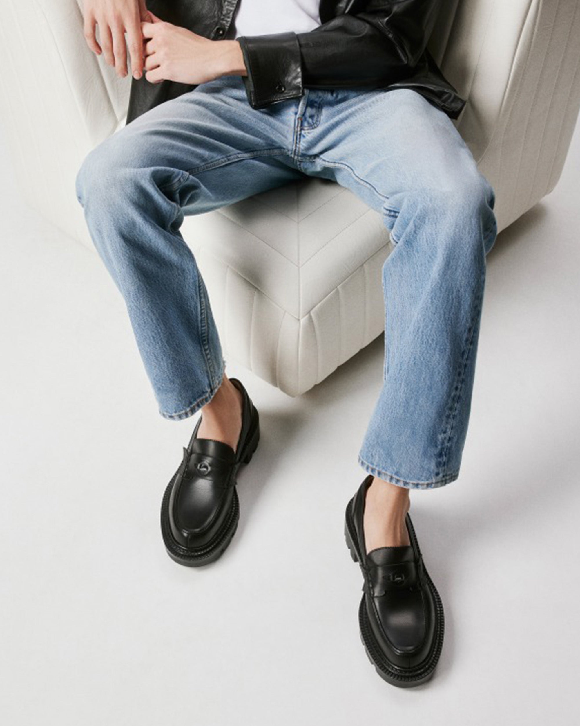 CHRISTIAN LOUBOUTIN 黑色小牛皮厚底樂福鞋