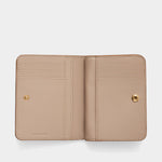 這款迷你雙折短夾採用光滑牛皮材質,搭配低調的皮革包覆式 J Marc 標誌,展現現代時尚感。內部設有 6 個卡位、1 個鈔票夾層、4 個開放式插袋,以及 1 個外部拉鍊零錢袋,提供充足的收納空間,適合日常使用。