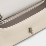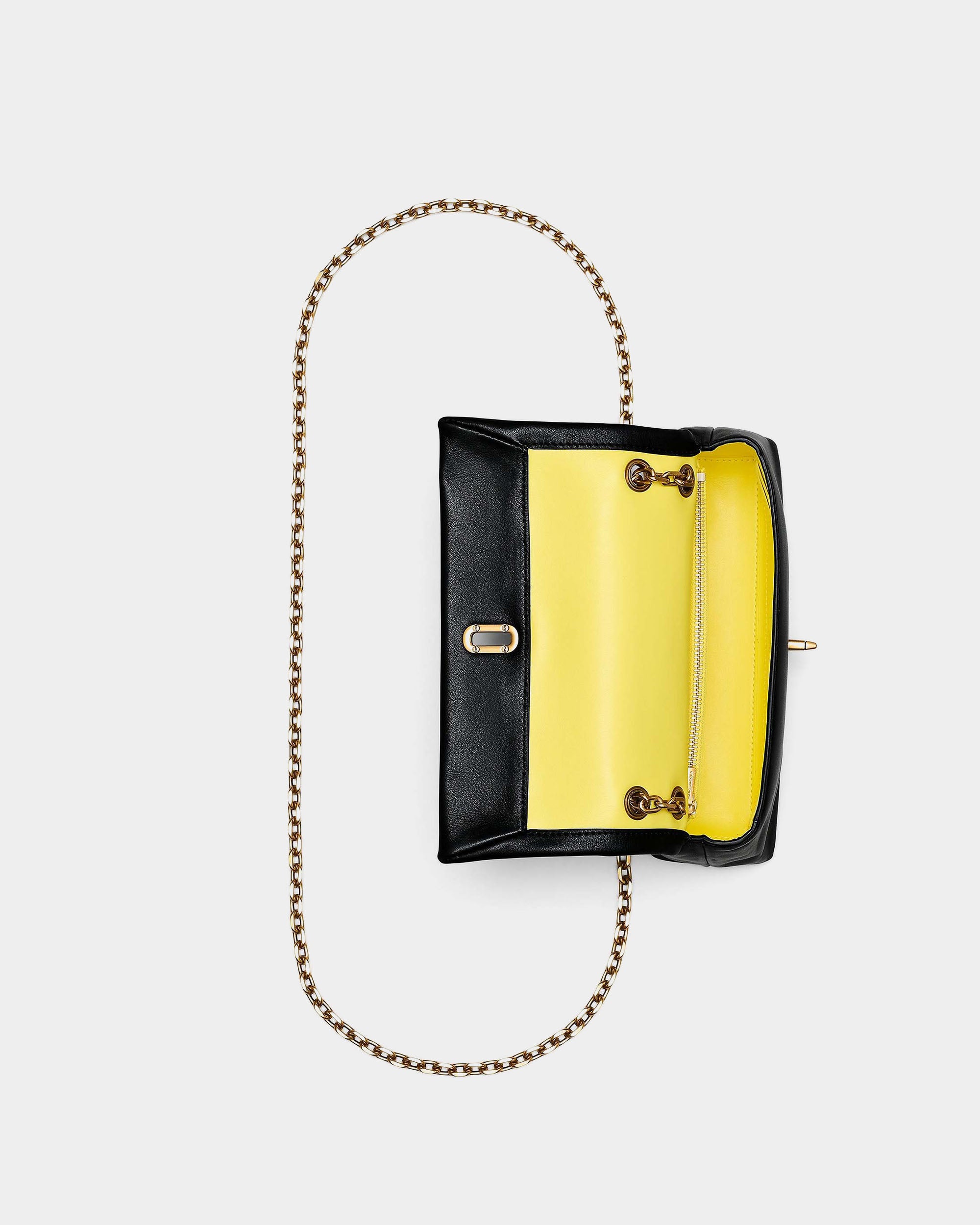 選用光滑小牛皮製作,附 J‑Marc 金屬旋鎖開合、內含 6 卡位+內置拉鍊口袋,配備可跨肩或斜背的雙鍊帶設計,簡約質感與實用兼具。