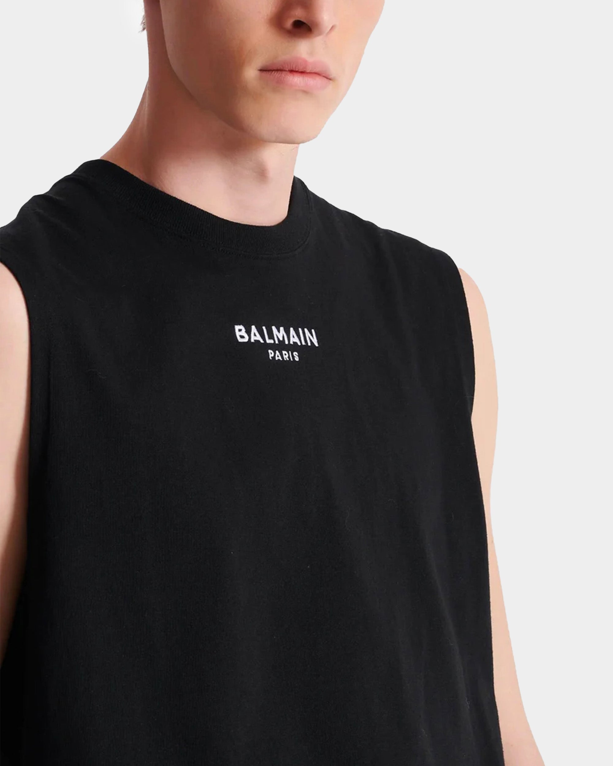 極簡設計搭配胸前 BALMAIN PARIS 白色刺繡字樣,展現低調質感。採用柔軟棉質布料製成,無袖剪裁清爽俐落,適合單穿或內搭,輕鬆打造品牌風格。