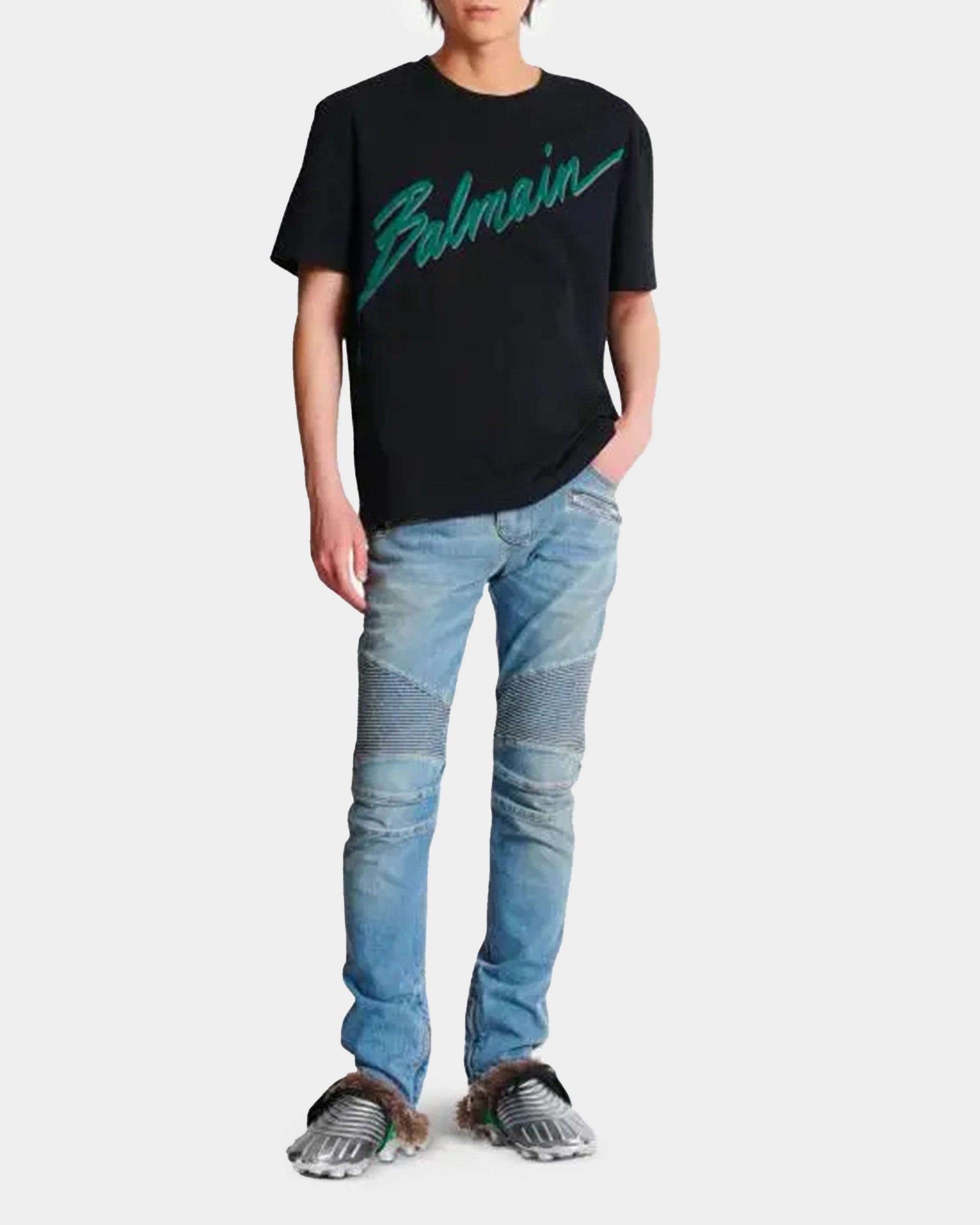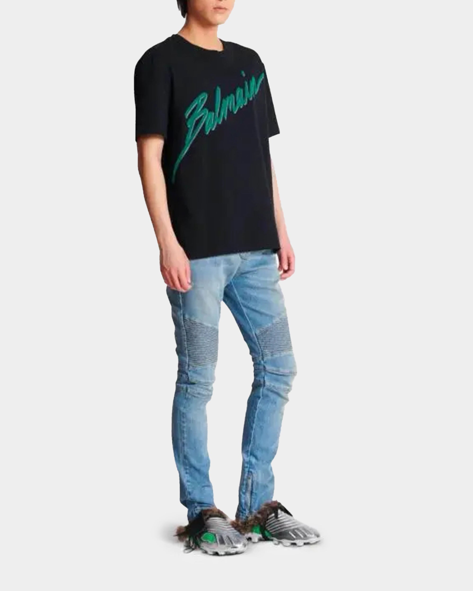 以 100% 純棉製成,搭配搶眼的綠色 Balmain 手寫字母印花,展現年輕活力與街頭感。經典短袖剪裁,舒適好穿,單穿或搭配外套都能凸顯品牌個性。