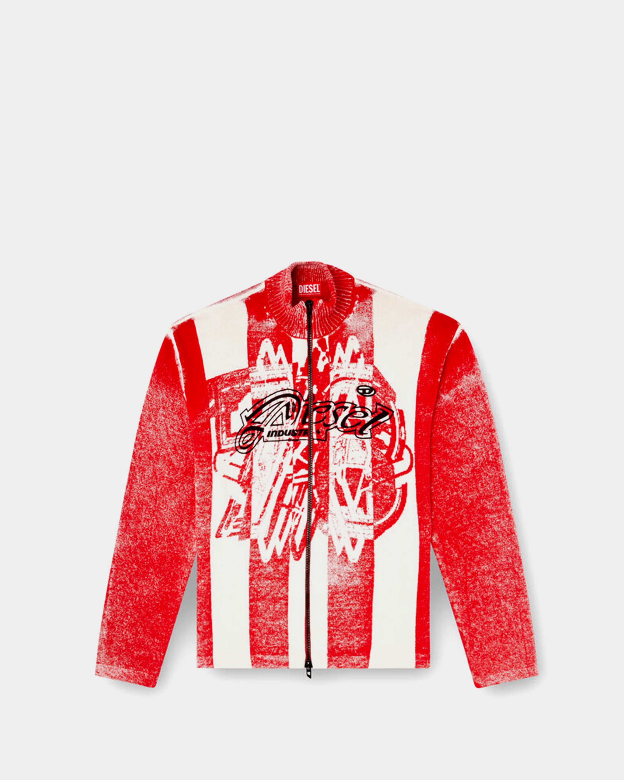 這款 K-OLIBA JKT 的設計靈感源自足球運動藝術風格:內裡與外層都印製有條紋圖案,營造內外反轉視覺效果。立領搭配雙向拉鍊開合,使穿脫更便利,也可調整領口造型。胸前以鏤空與刺繡交錯呈現 Oval “D” 標誌,為整件衣服增添品牌識別細節。版型屬常規剪裁,兼具休閒與造型感。