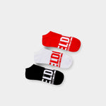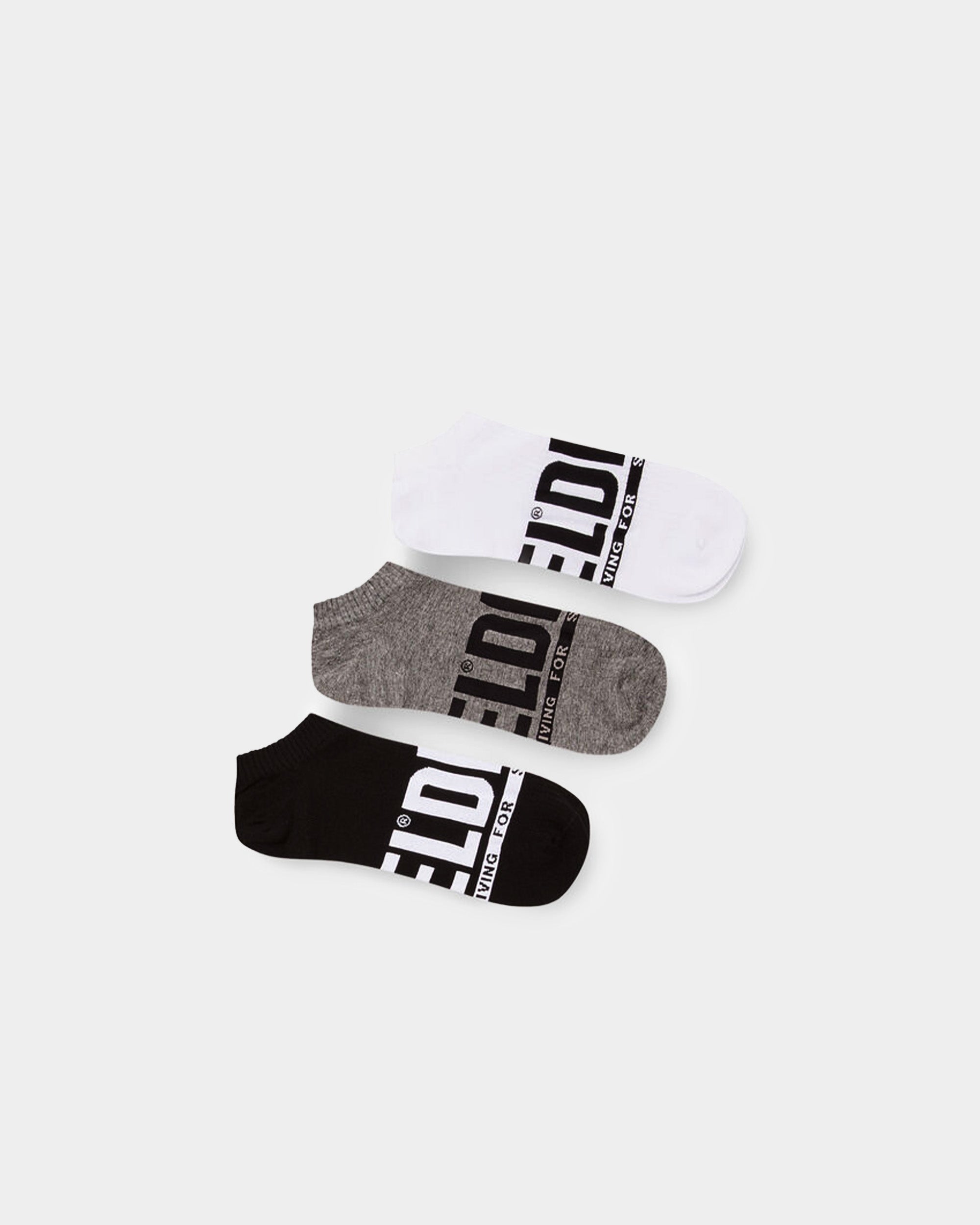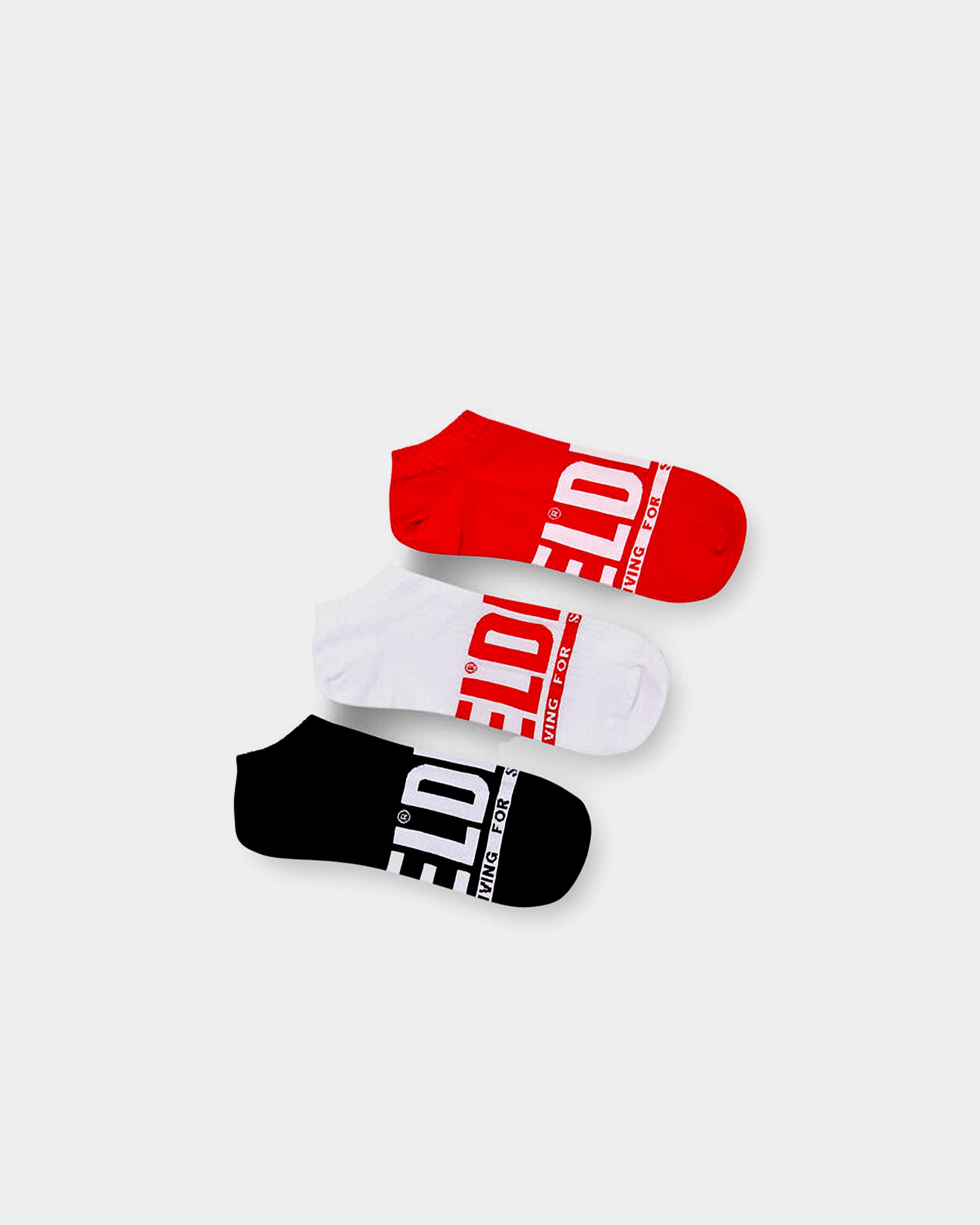 這款三件組低筒襪子採用彈性有機棉混紡材質,提供舒適的穿著體驗。每雙襪子均在襪口處織有「Diesel For Successful Living」的 jacquard 字樣,展現品牌獨特的設計風格。顏色搭配多樣,易於與其他服裝搭配,適合日常穿著。
