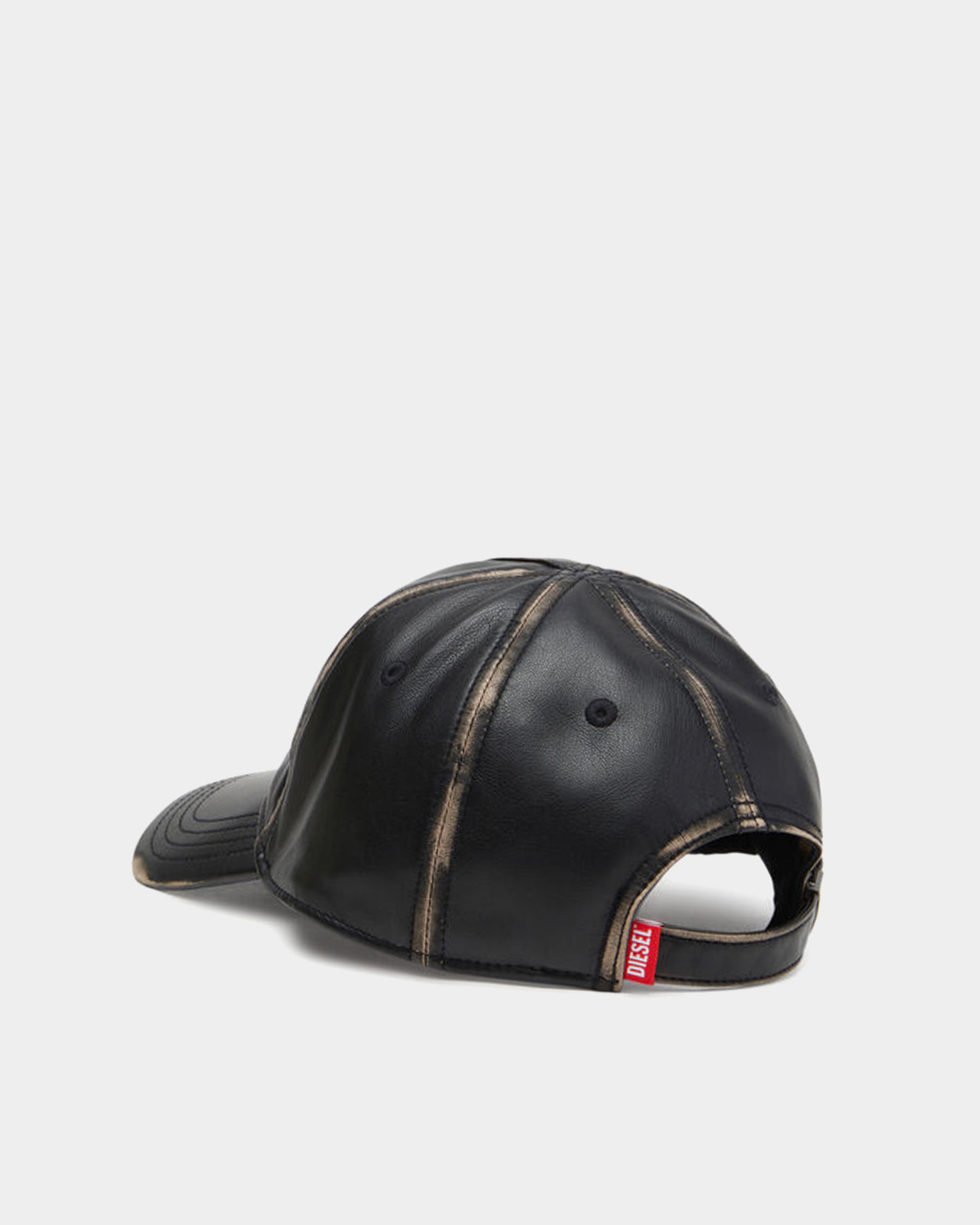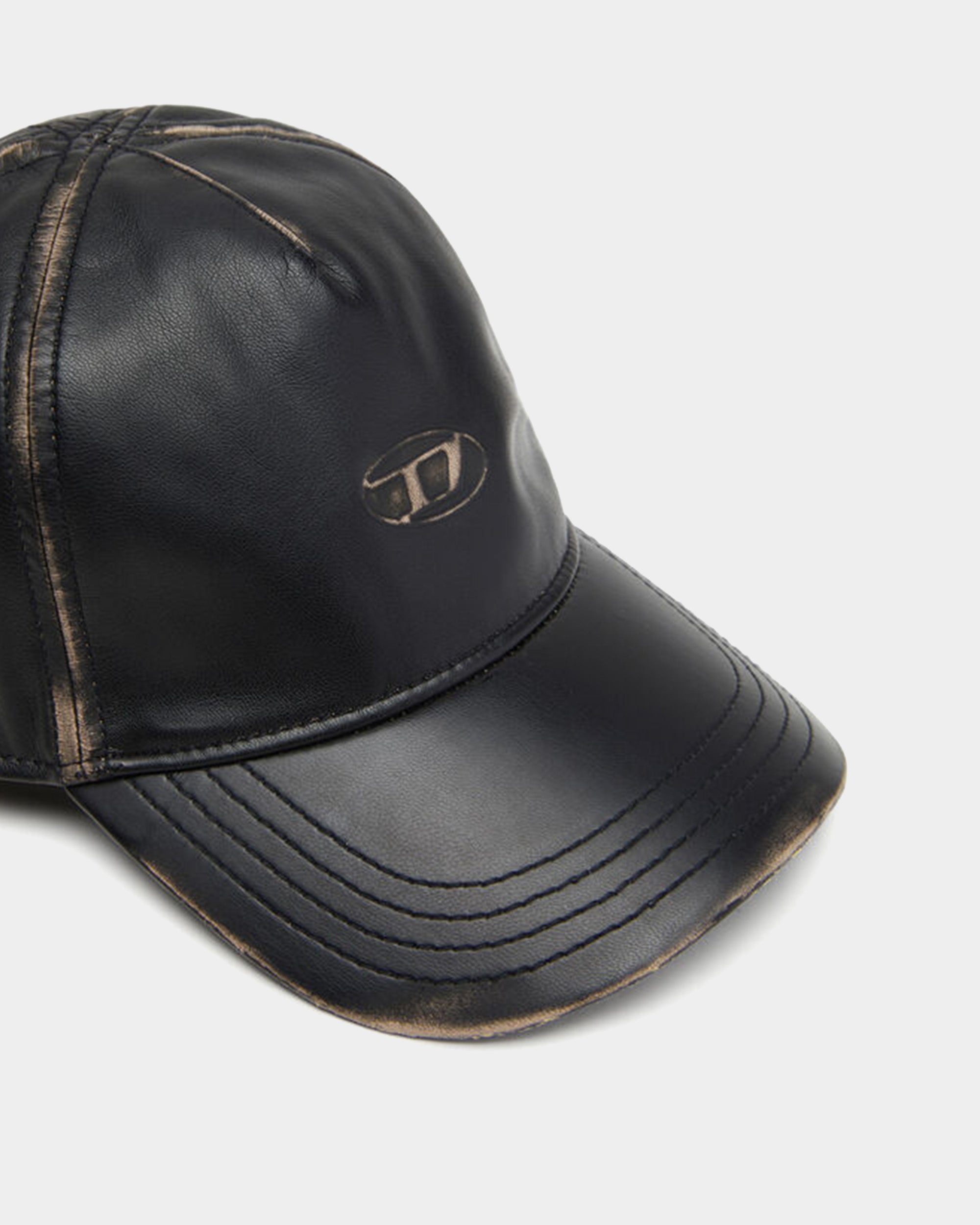 這款棒球帽採用 100% 聚氨酯人造皮革製成,整體做洗舊風格,正面中央刺繡圓形「D」標誌,展現品牌特色。帽後配有金屬調節扣,方便調整尺寸,適合日常穿搭。