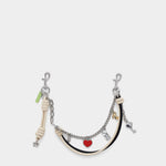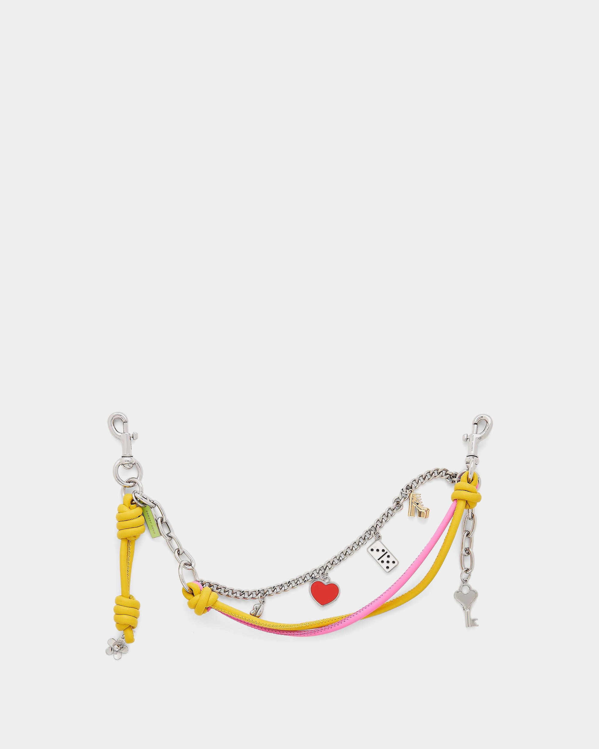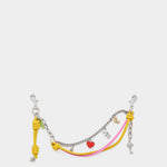 這款吊飾採金屬鍍層與多彩織繩結合設計,搭配流蘇金屬鏈及手繪琺瑯與金屬吊飾徽章,自包款 D-環兩側夾掛,瞬間提升整體造型辨識與玩味風格。