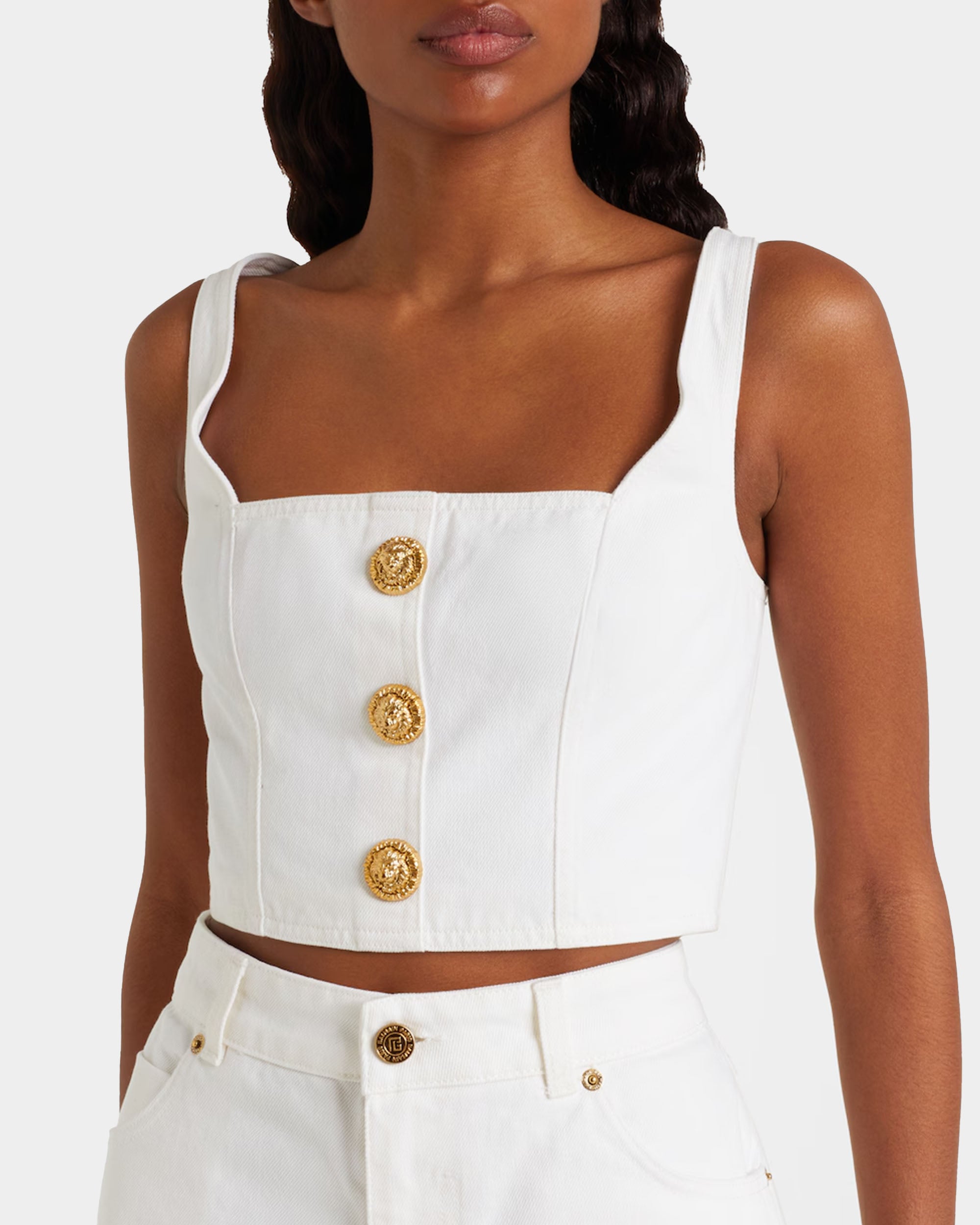 BALMAIN 亮蔥花呢鈕扣迷你裙