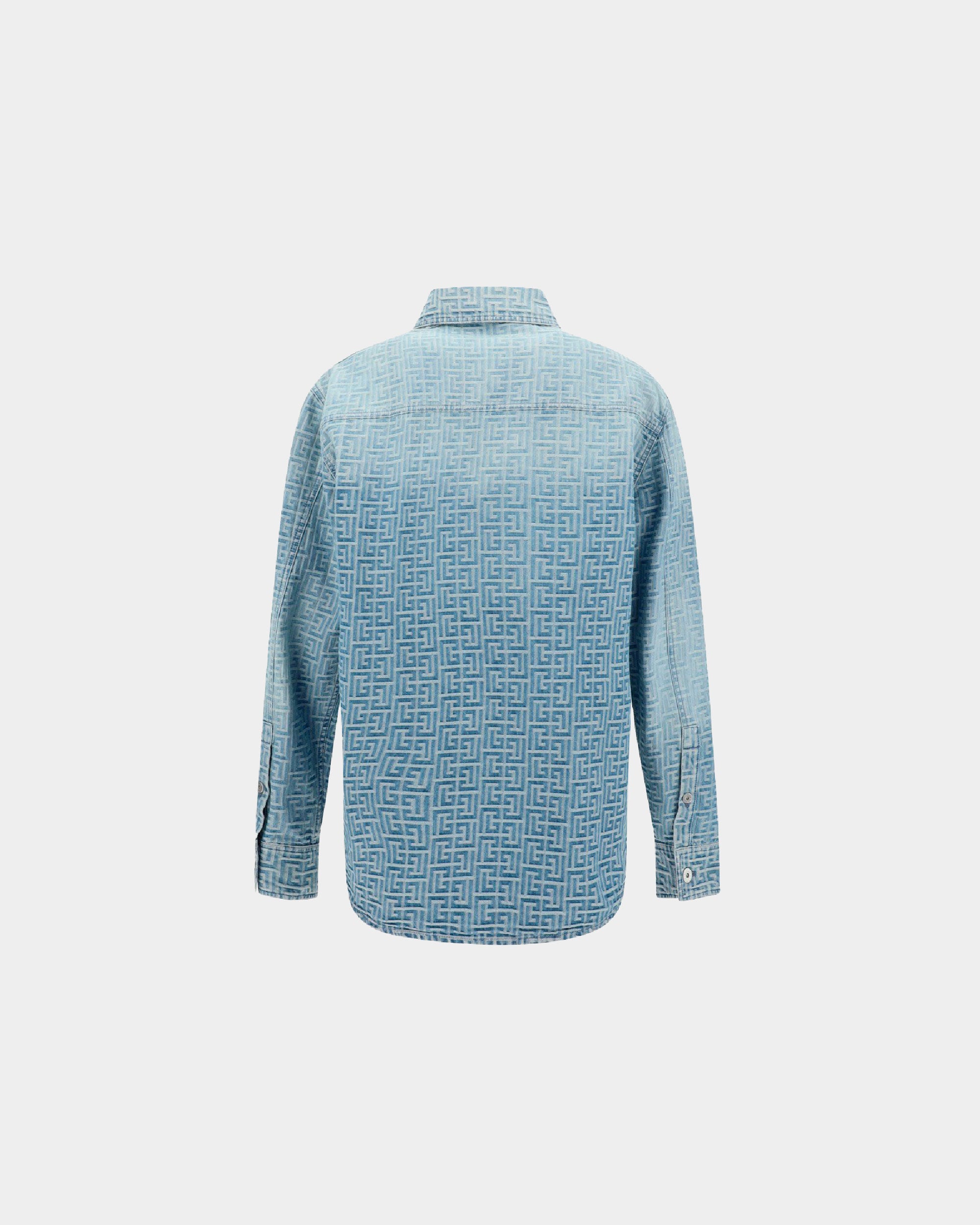 BALMAIN Jacquard Classic Embossed White Denim Shirt / Men