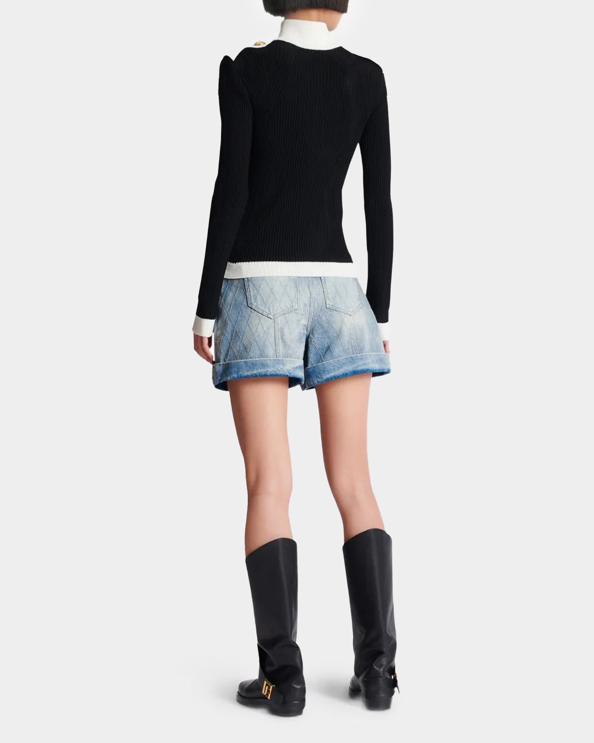 BALMAIN 黑白拼接羅紋衫