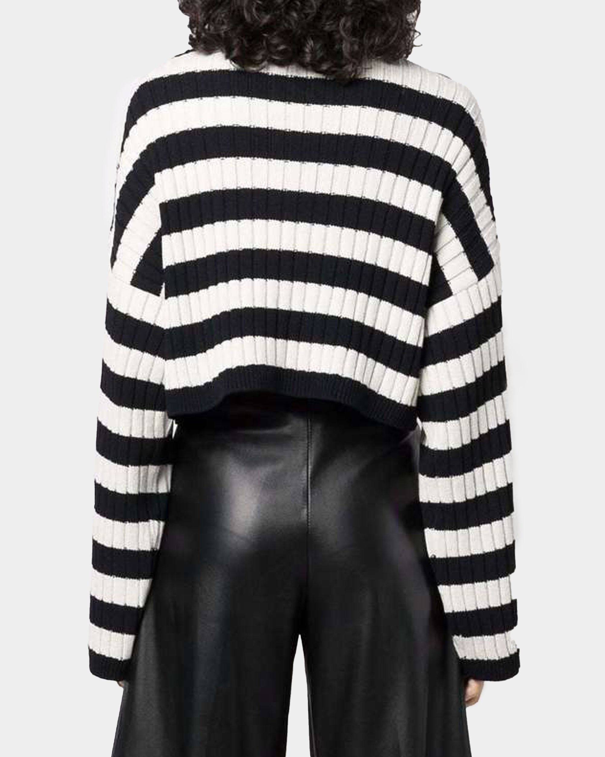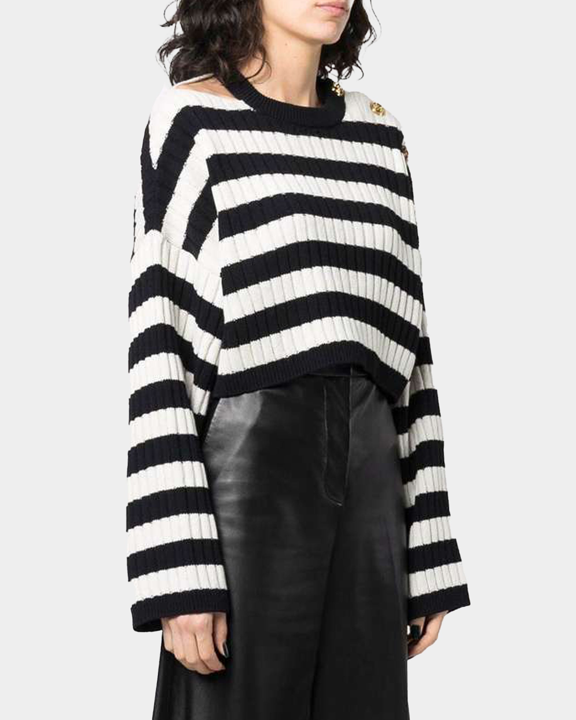 BALMAIN OVERSIZED SHOULDERS STRIPED CROP SWEATER