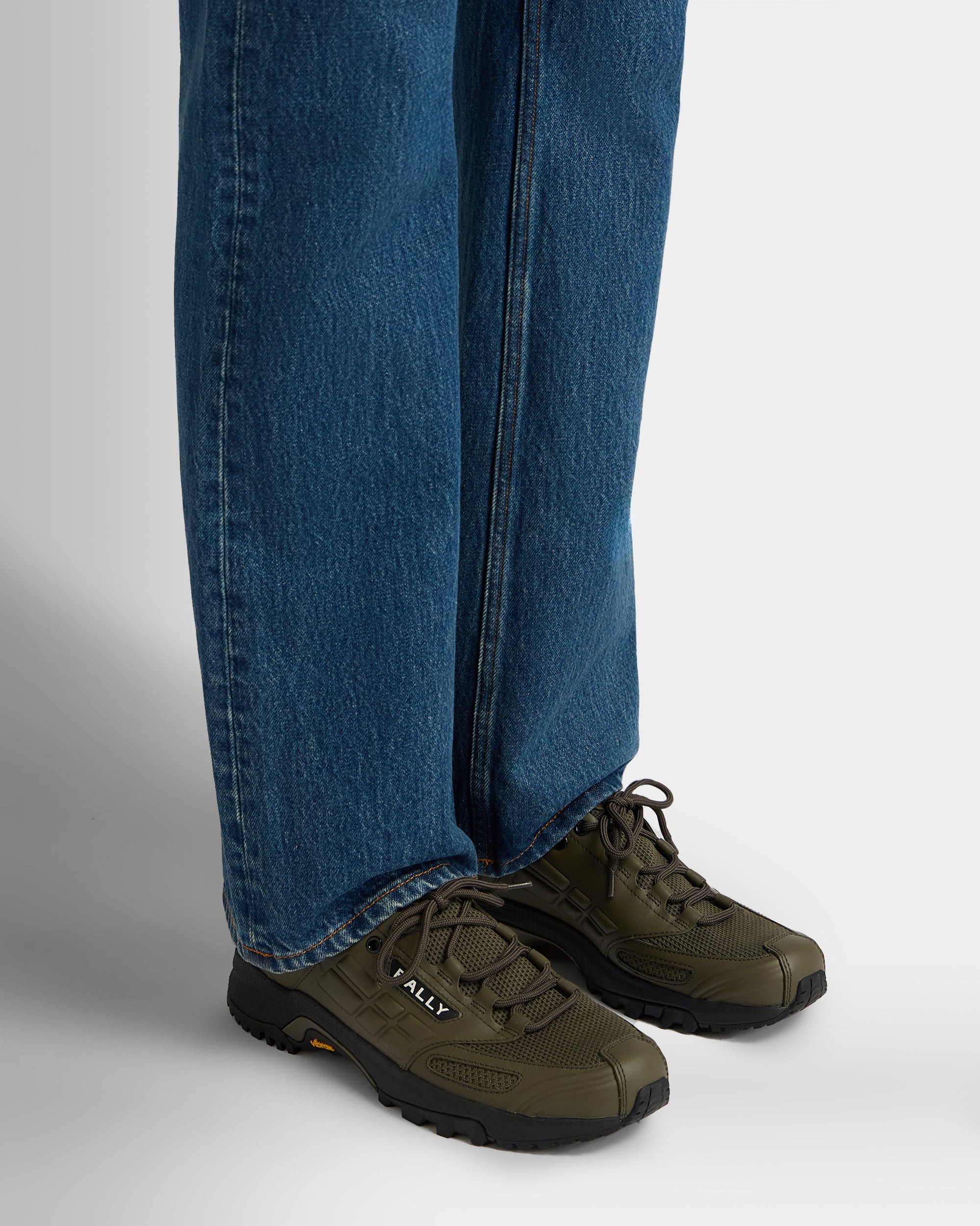 以跑鞋風格為靈感,這款 Faster 一腳蹬運動鞋採用流線型深橄欖綠針織鞋面,搭配皮革細節與厚實的同色系橡膠鞋底。鞋身前後的拉環設計,讓穿脫更加便利。