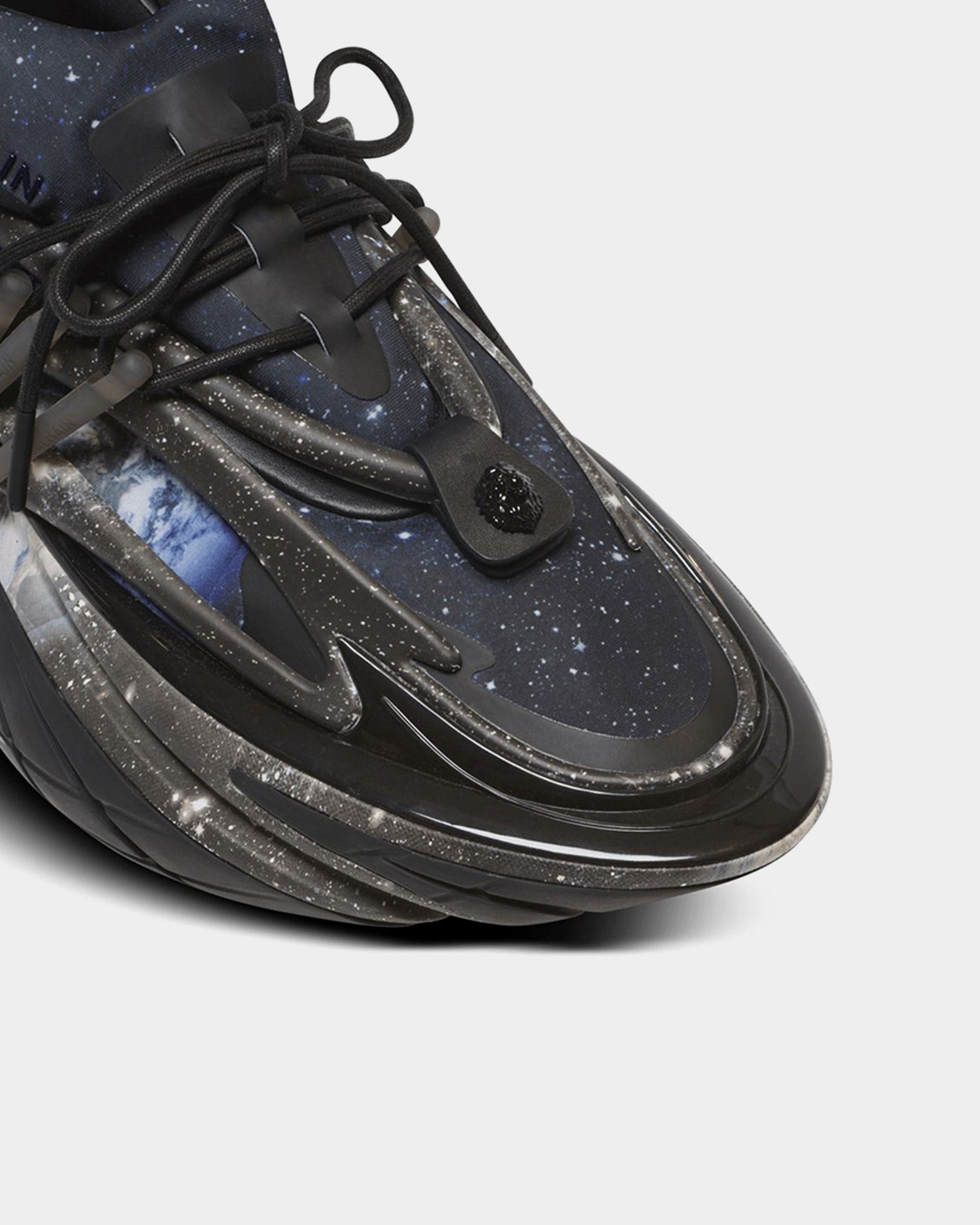 Balmain combines space elements with fashion craftsmanship to launch this "Earth and Stars" colorway of the Unicorn Low. The star-like print design on the shoe body, paired with a black layered sole and the iconic "Lion Head" details, highlights a futuristic and luxurious fashion attitude.