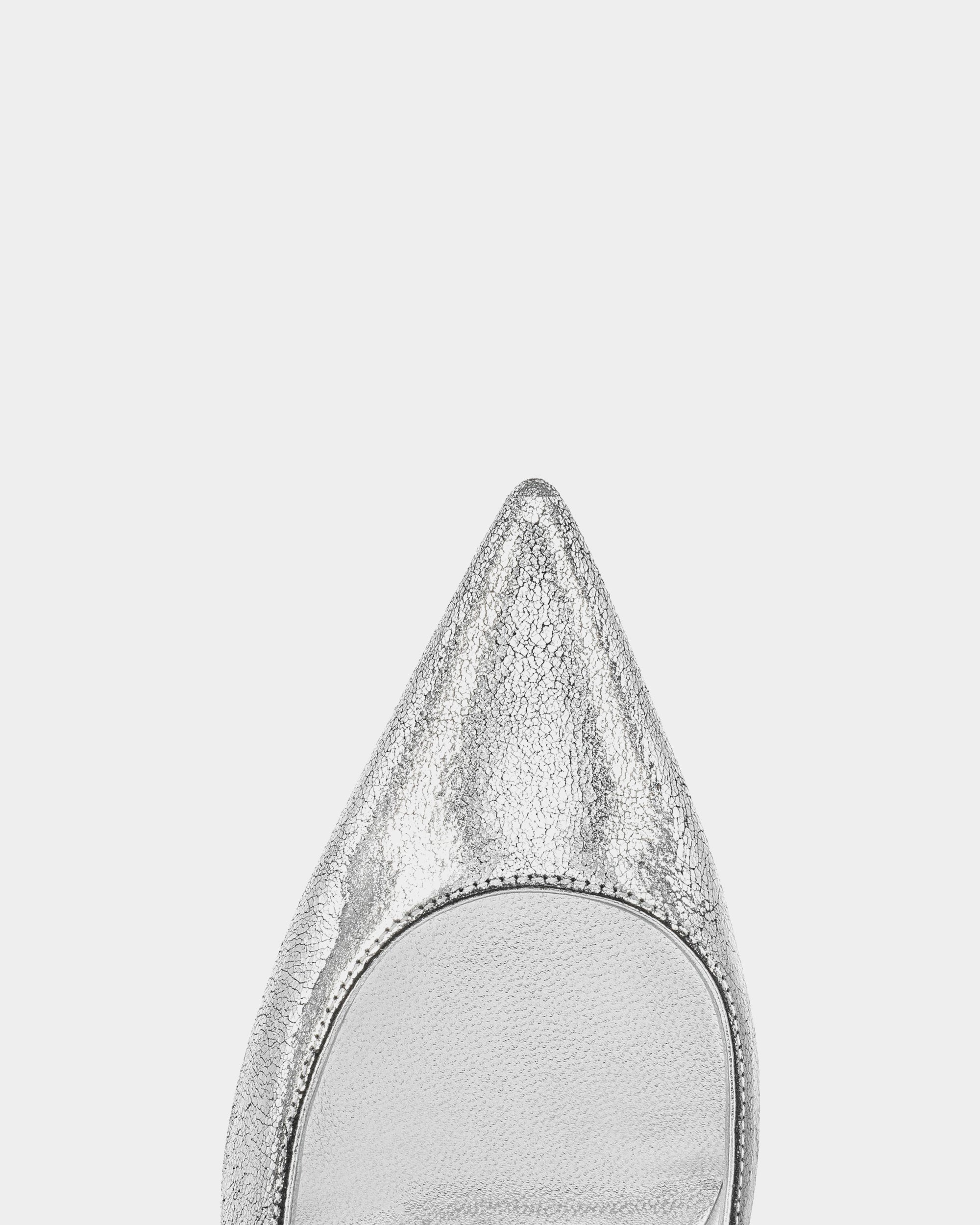 The classic Kate 85mm style combines elegant lines with a practical height, perfect for long days at formal events or daily commuting. The stylish and elegant Kate pumps are transformed into shiny silver leather, which makes people shine. With a classic pointed toe and a thin 85mm heel, this fashionable and evergreen pump elegantly sets off the foot. The shiny laminated leather upper forms a charming contrast with the classic Loubi red sole, making every step more extraordinary.